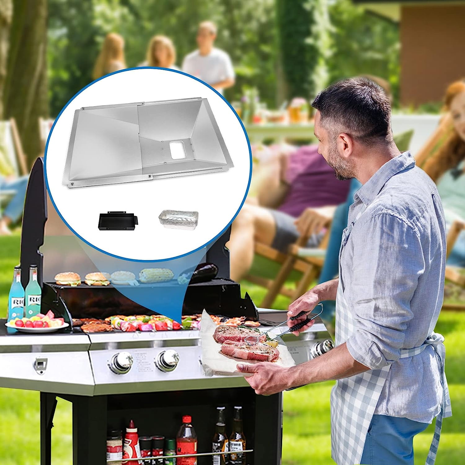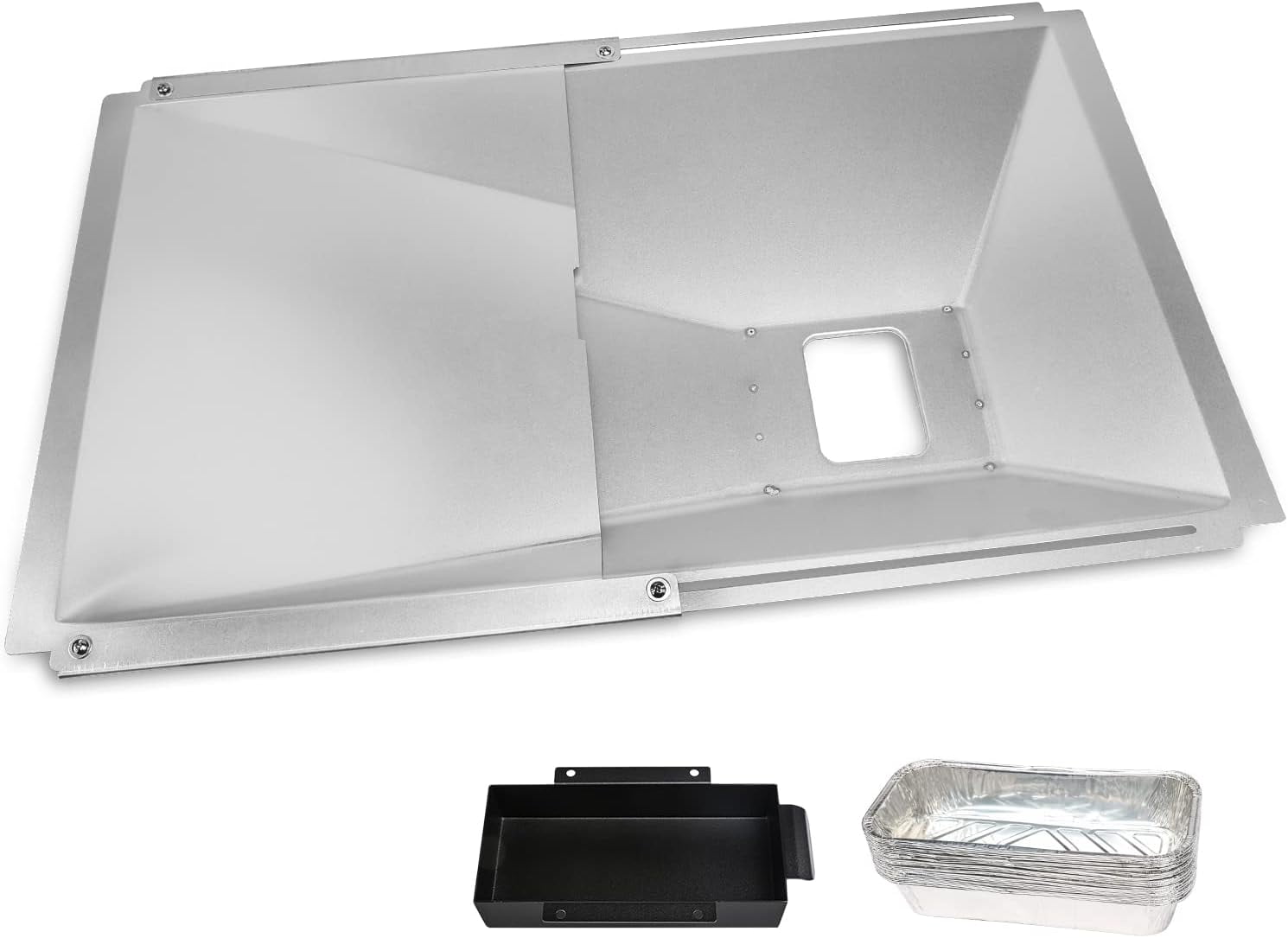 【Dimension】► Adjustable Length Dimension -between 15“ to 25.5″, Width 14.17″–Please check and compare dimensions with your grills drip pan before place order 【Compatibility】Universal Grease tray with catcher pan ►Fit virtually most 2/3/4 Burner Gas Grill ►Fits Nexgrill, Cuisinart Charbroil, Kenmore, Dyna-Glo, Master Forge, Members Mark, BHG, Expert Grill, Jenn Air, Backyard Gas Grill ► Fits Nexgrill 720-0830H 720-0888SA 720-0925 720-0864 720-0697 720-0783 720-0789 720-0925 720-0958 【Great Value Package you get】-1x Grease Tray, 1x Catch Pan, 10x Aluminum Foil Liner【Premium Material】- Made of Heavy Duty Metal Material to ensure long-lasting, no deform, heat resistant【Easy to Install】Effortlessly assemble according to the instructions, Adjust the length according to the needs of your grill, then fix the screw holes on both sides 【Ideal Choice】►Inclined channel in the drip pan, let the grease flow to the hole on the bottom, then grease could be collected by the below catcher pan, no leak►Use with extra foil liner, when the foil liner is full, just throw it away and replace it with a new liner for easy cleaning, no more need to clean dirty catch pan just Simply clean the grease tray, always keep your grill clean► Fits Dyna-Glo most Gas Grill►Fits Dyna-Glo DGP321SNN-D DGP321CNP-D DGF350CSP-D DGH353CRP DGB390BNP-D DGB390CNP 【Fit Perfectly】► Fits Cuisinart CGG-8500 CGG-7400 ►- for Charbroil 463673519 463375919 463377319 463673517 463673619 463673019 463673517 463625219 463347518 463342119 463347017 463366022 -for Monument /Master Cook Napoleon Royal Gourmet 3/4 Burner ►Fits BHG 720-0783H 720-0783E 720-0882R BH13-101-099-01 BH14-101-099-01 BH15-101-099-02 etc 【Better than others】The drip tray joint is on the sloped side(not like others they on the bottom), So there will be no leakage of grease from the joint when extended to the maximum ►Replacements for original part number–for Nexgrill NEX20003122A0 NEX20002858A0 20001343A0, for Dyna-Glo 144-04013 70-02-335 70-02-508 104-04013 and more