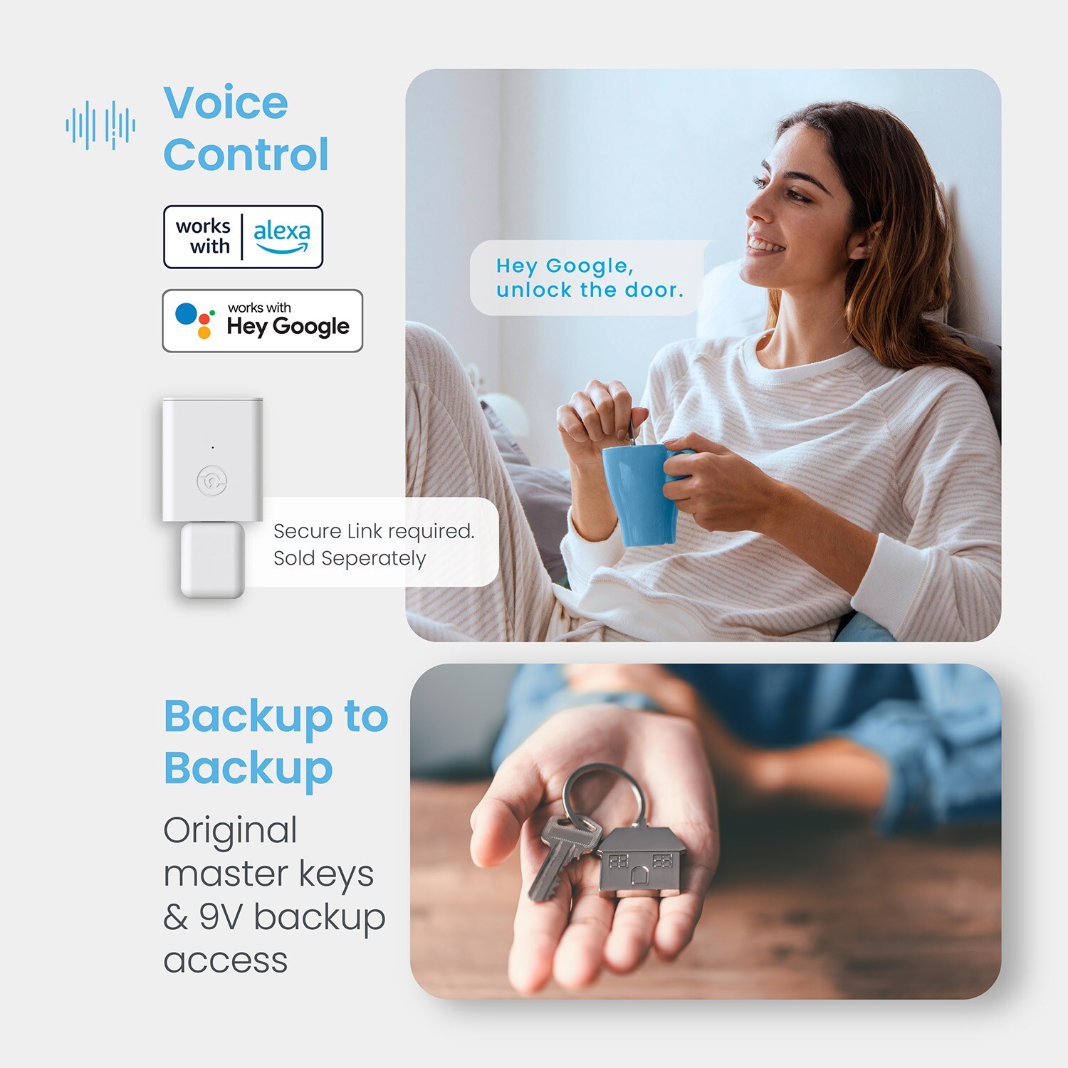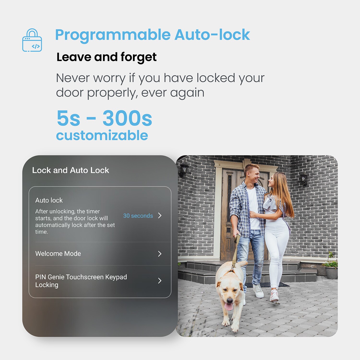 Experience convenience and security with the Lockly Secure Plus. The biometric fingerprint sensor is capable of unlocking your door within half a second. The patented digital keypad, powered by PIN Genie, displays an always shuffling keypad, where the numbers displayed in a series of 4 buttons and is different every time. Stores up to 99 fingerprint data on-device for privacy and machine learning capability improving fingerprint recognition over time.