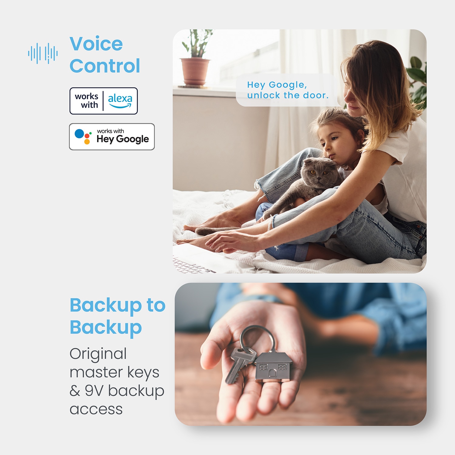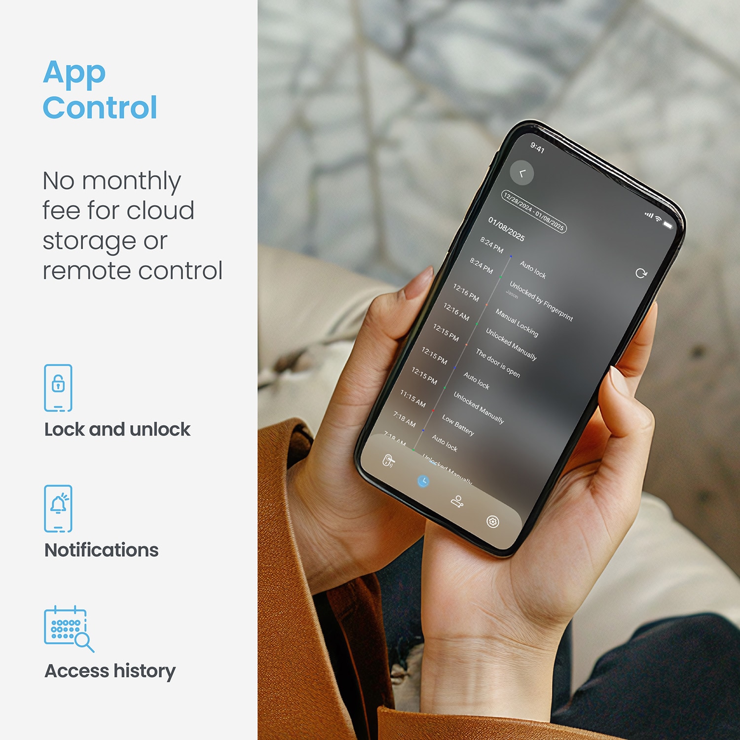 The Lockly Secure Pro boasts a fast, biometric fingeprint sensor, capable of unlocking within half a second, ensuring swift access to your property. Lockly’s patented PIN Genie keypad features an innovative reshuffling technology that enhances security by automatically shuffling numbers after each use, preventing unauthorized access. With the Lockly App, users can remotely monitor and manage access without any monthly fees, offering unparalleled convenience all from your smartphone.