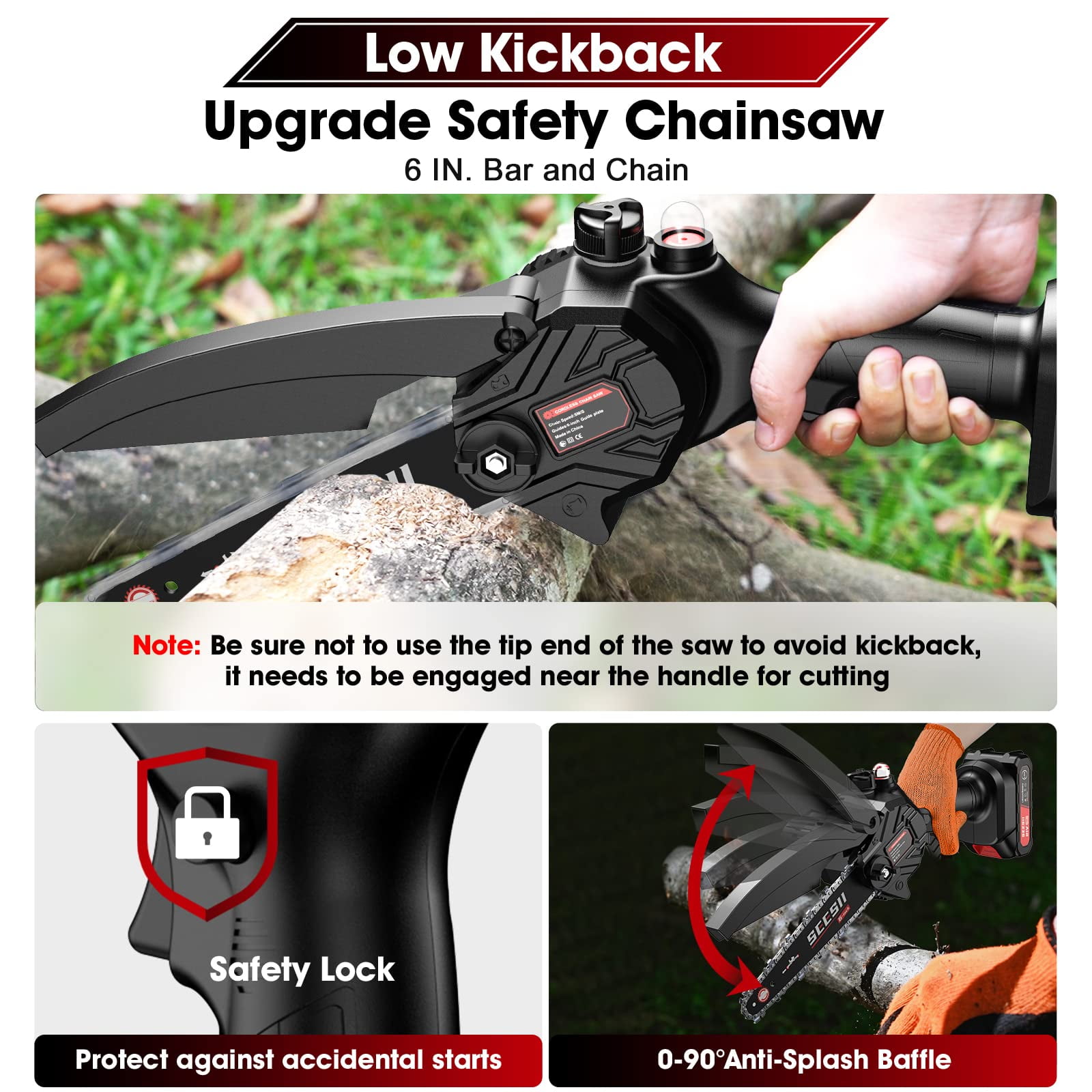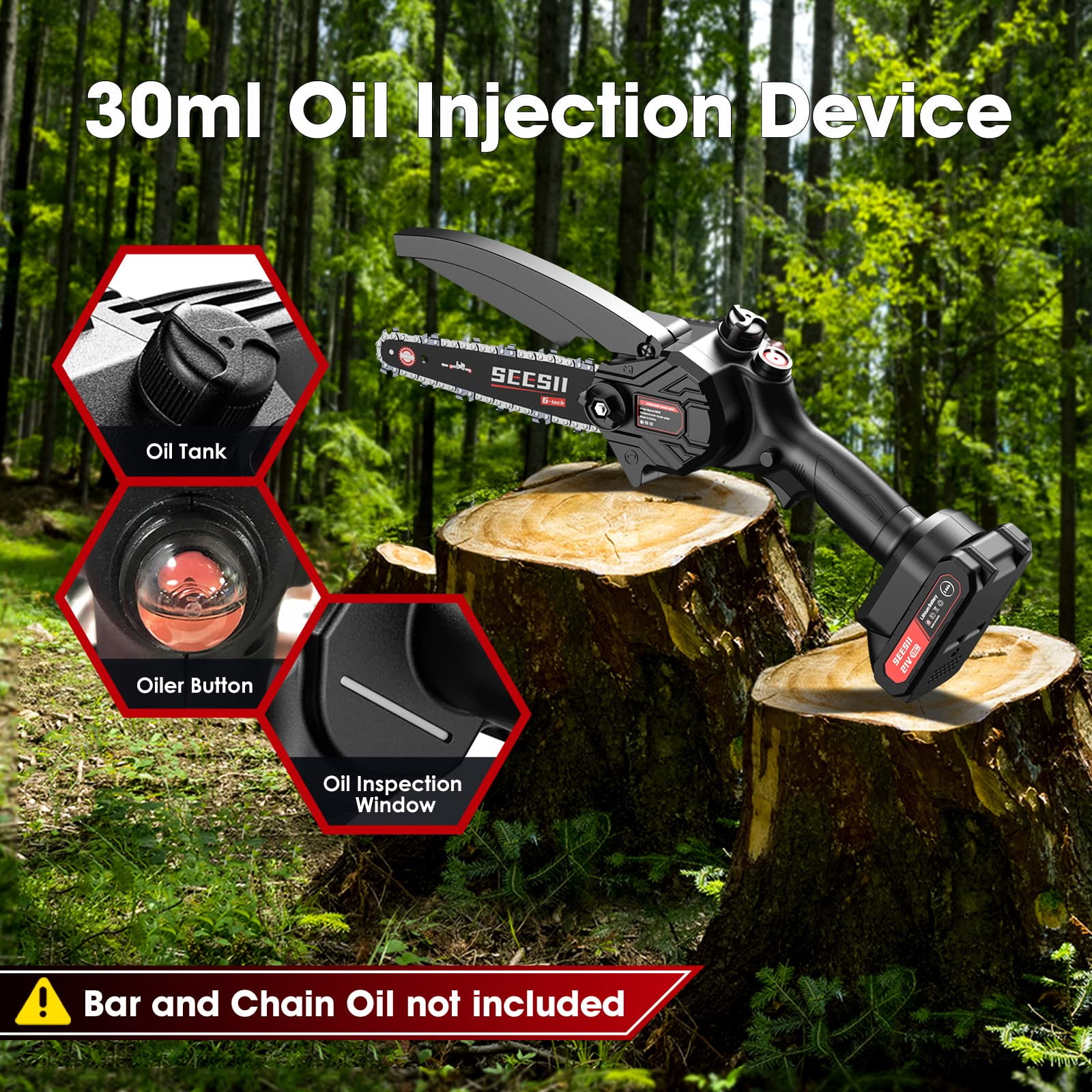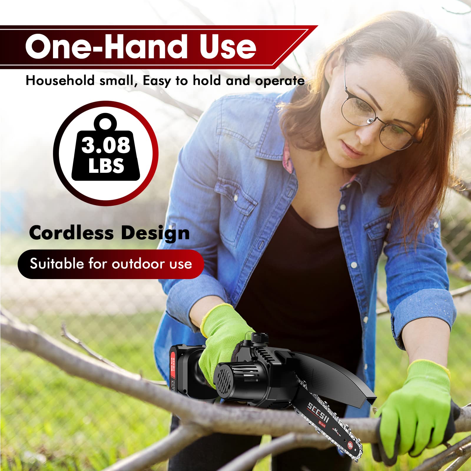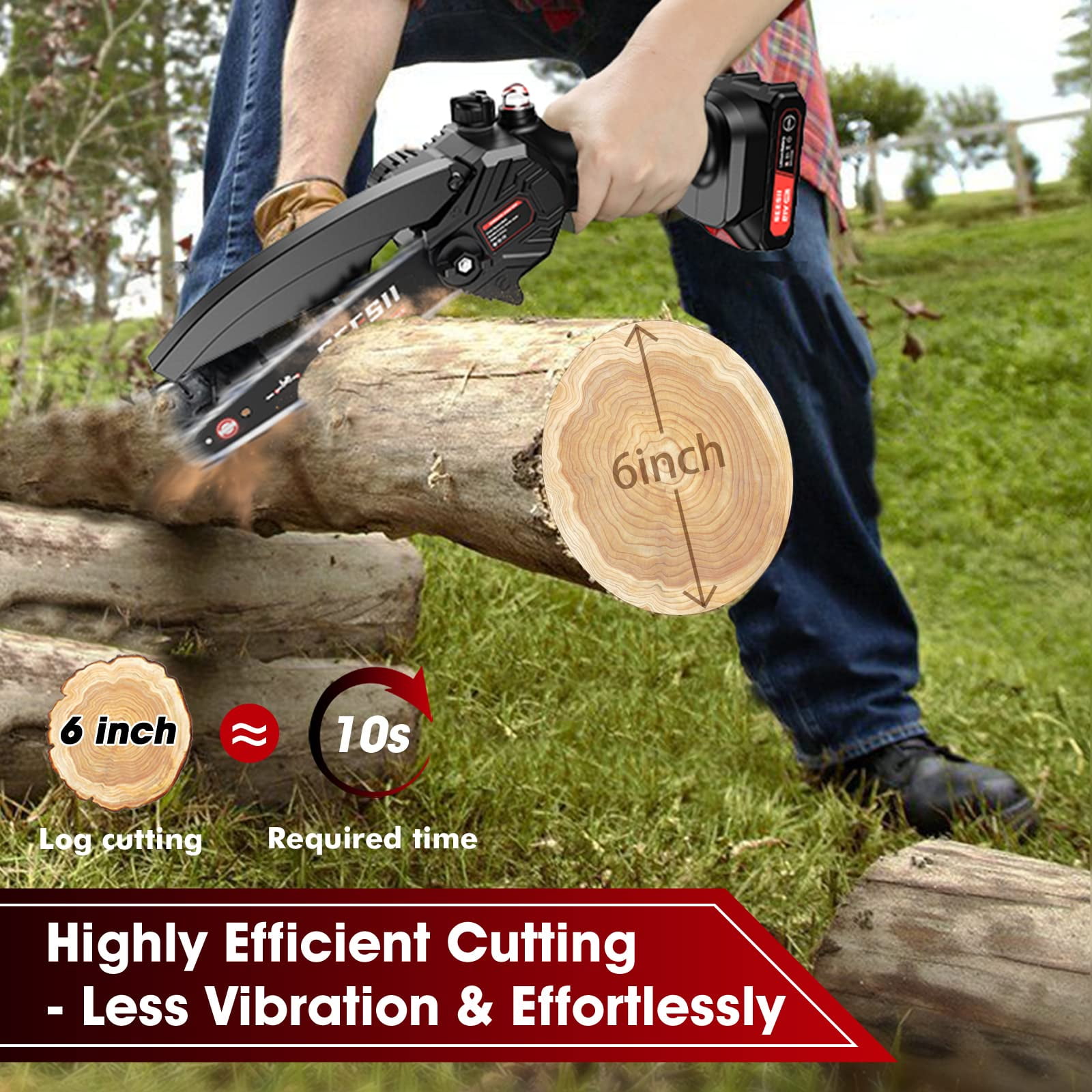 Powerful 6” Mini Chainsaw: With a deeply quenched guide chain and an 880W motor, this small chainsaw effortlessly cuts through wood with just light pressure, making it ideal for everyone. The 21V high-power battery enables quick cutting, taking only about 4 seconds to cut through logs with a diameter of approximately 3.93 to 5.91 inches. Experience increased efficiency in your yard work with this powerful chainsaw, benefiting both you and your family. Auto-Oil System: Our mini electric chainsaw features a chain lubrication system that quickly and easily oils the chain. No need to carry extra oil pots! Simply pour oil into the tank and the chain will be lubricated, reducing wear and ensuring smoother cutting. Minimal Vibration And Safety Lock: This 6-inch mini chainsaw offers low kickback and minimal vibration, ensuring safe usage even for inexperienced woodworkers (avoid using the tip end). It is equipped with a safety lock switch and a splash guard to prevent accidental starting. The safety lock and trigger must be pressed simultaneously to start the saw, while the anti-splash baffle keeps wood chips from splashing during work. Two 21V Batteries Pack: Our rechargeable electric chainsaw comes with 2x 21V 2000mAh Batteries and a fast charger, providing a remarkable battery life that can last. The lithium-ion batteries are equipped with self-overload and temperature protection, ensuring a longer lifespan. This cordless mini chainsaw is designed to tackle all your work, indoors or outdoors. Lightweight and Effortlessly Operate: Weighing only 3.15 lbs and measuring approximately 16 inches in length, the Seesii portable chainsaw is meticulously designed to strike the perfect balance. It is not too heavy to operate and prevents kickback caused by being too light. The reasonable lightweight design prioritizes safety, allowing people to effectively operate and control the small hand chainsaw without feeling tired, even after extended use. All Accessories Included: Our mini chainsaw includes 1x Electric Chainsaw, 2x Batteries with indicator, 1x Charger, 2x Chain(One has been installed), 1x Bar protection cover, 1x Screwdriver, 1pair Gloves, 1x Carrying Case and 1x User Manual. Excellent After-Sales Services: We provide 24×7 friendly customer support to keep you away from after-sales worries. If you are not satisfied with SeeSii Impact Wrench or have any other questions, please feel free to contact us. Our after-sales service experts will reply your information within 12 hours, we will do our best to solve your problems.