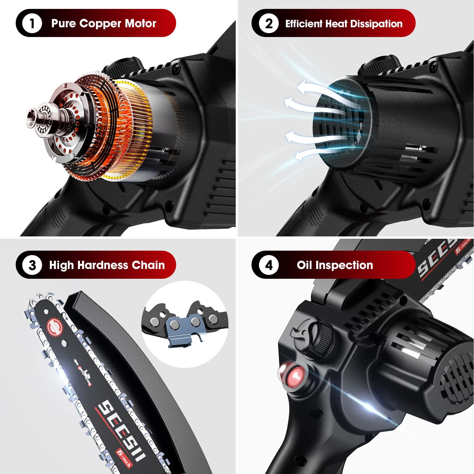Seesii 6 inch Mini Chainsaw with Auto-oil System, Electric Pruning Saw for Garden Outdoor Tree Trimming Wood Cutting, Cordless Power Chainsaw w/ Security Lock, 2x Batteries & Chains, Clearance Sales