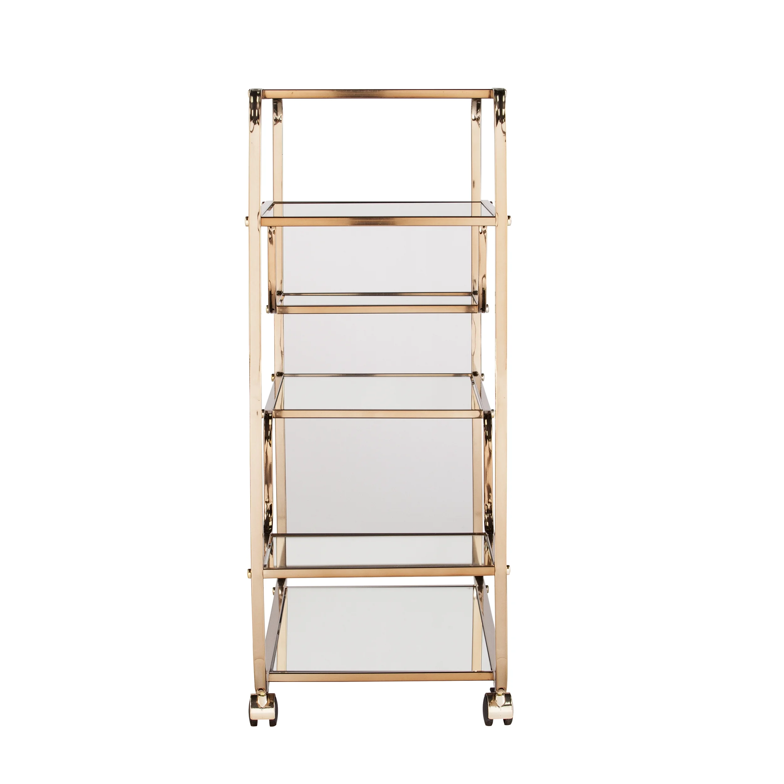 SEI Furniture Maylynn Midcentury Modern indoor Bar Cart in Mirrored Shelves with Champagne Finish 36 x13.25 x 33.75