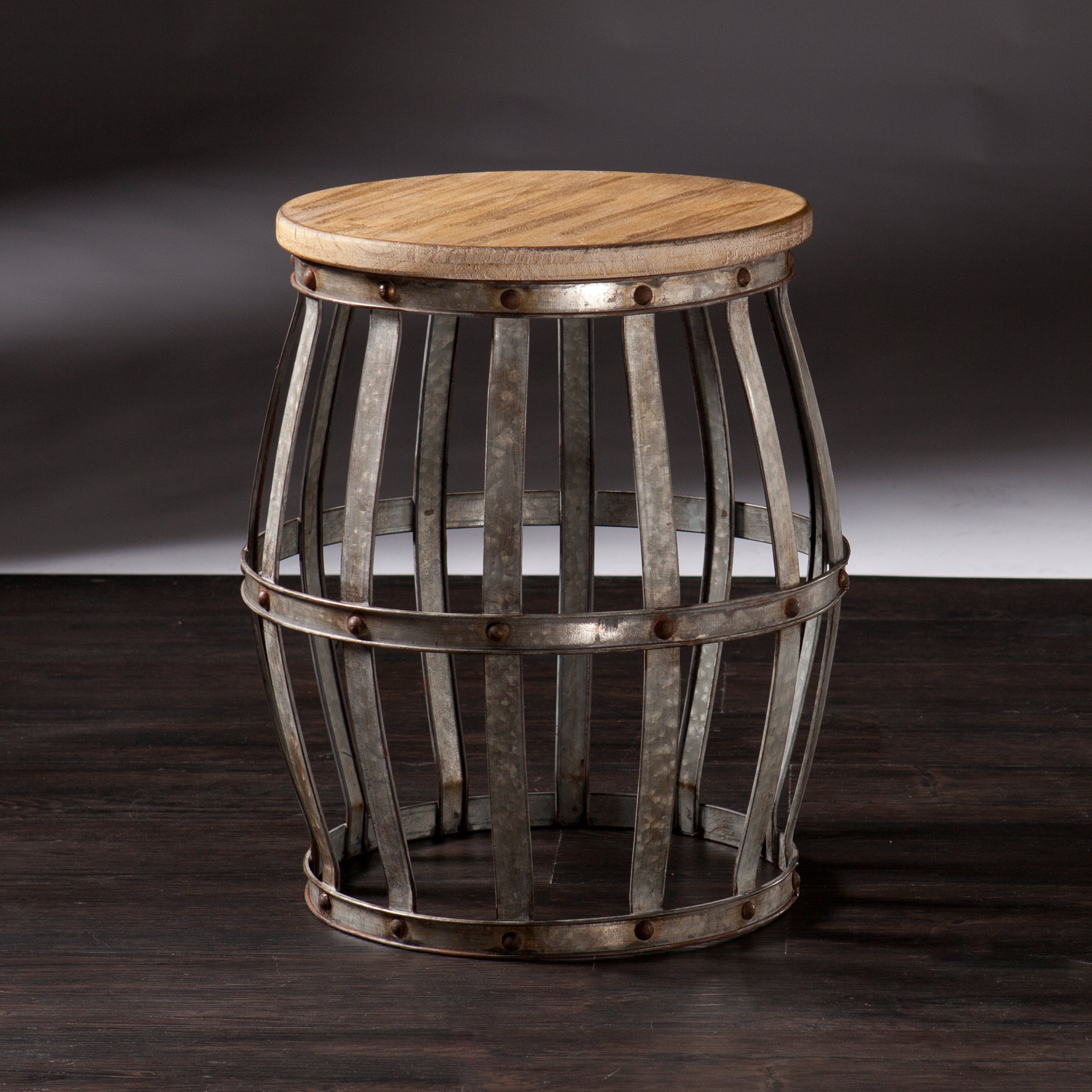 Barrel your way to rustically chic design with this ruggedly cool, industrial accent table. Hollow, bow-legged design allows for peek-a-boo storage of everyday clutter and the drum-style tabletop happily displays antique books, oversized coffee mugs, or a sleek lamp. Neutral, two tone finish ensures your design stands out while blending in. Forging of weathered fir, antique silver, and riveted trim tops off constructed élan, furnishing this table, and your flat, with an instant style revolution from the living room to the den. From our family-owned company to your unique living space, SEI delivers a wide selection of quality furniture and home décor to complement your one-of-a-kind style. Orders received before 3pm local distribution center time for in stock items ship same business day.