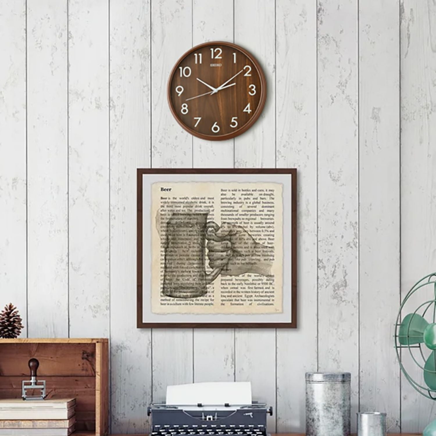 The smooth curves of Seiko Shinrin lend a touch of softness to your room. Easy to read, this faux dark wood creates warmth in its space. Choose from light brown or dark brown and Roman or Arabic numerals. Quiet sweep second hand, no ticking sound heard here. Powered by 1 AA battery (included). Overall dimensions 11.92 x 11.92 x 1.93 inches. Seiko quartz crystal movement for accurate time keeping. This clock would be perfect in any room such as kitchen or office.
