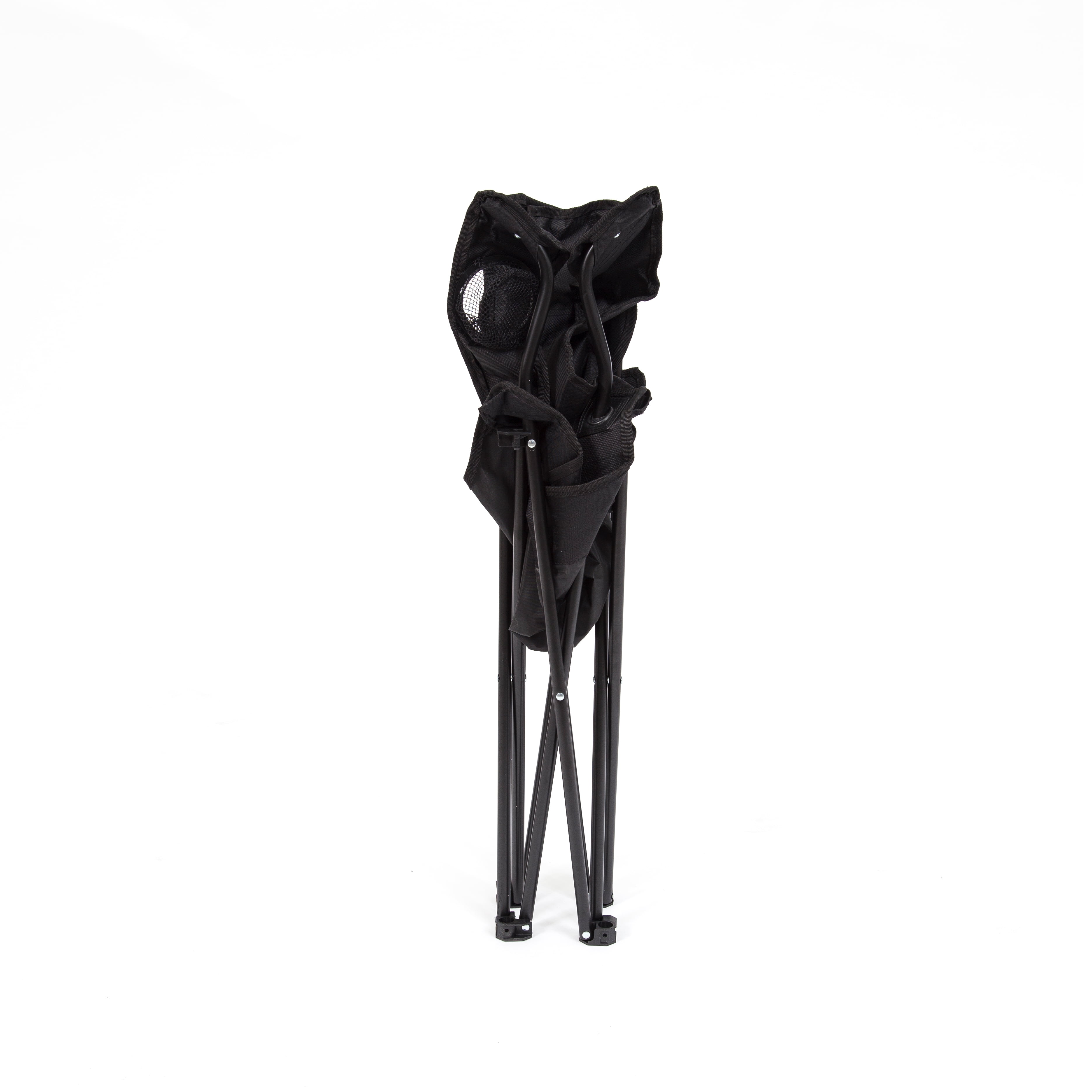 Seina Outdoor Portable Folding Chair with Armrests, Cup Holder and Carrying Bag, Black, Adult. Model# SBA-002. Adjustable armrests Mesh cup holder in the right armrest Folds up for easy, on-the-go portability and storage Includes carrying bag with shoulder strap and drawcord closure Steel and polyester construction Spot clean only No assembly required 19.7″ W x 32.7″ D x 34.6″ H when open