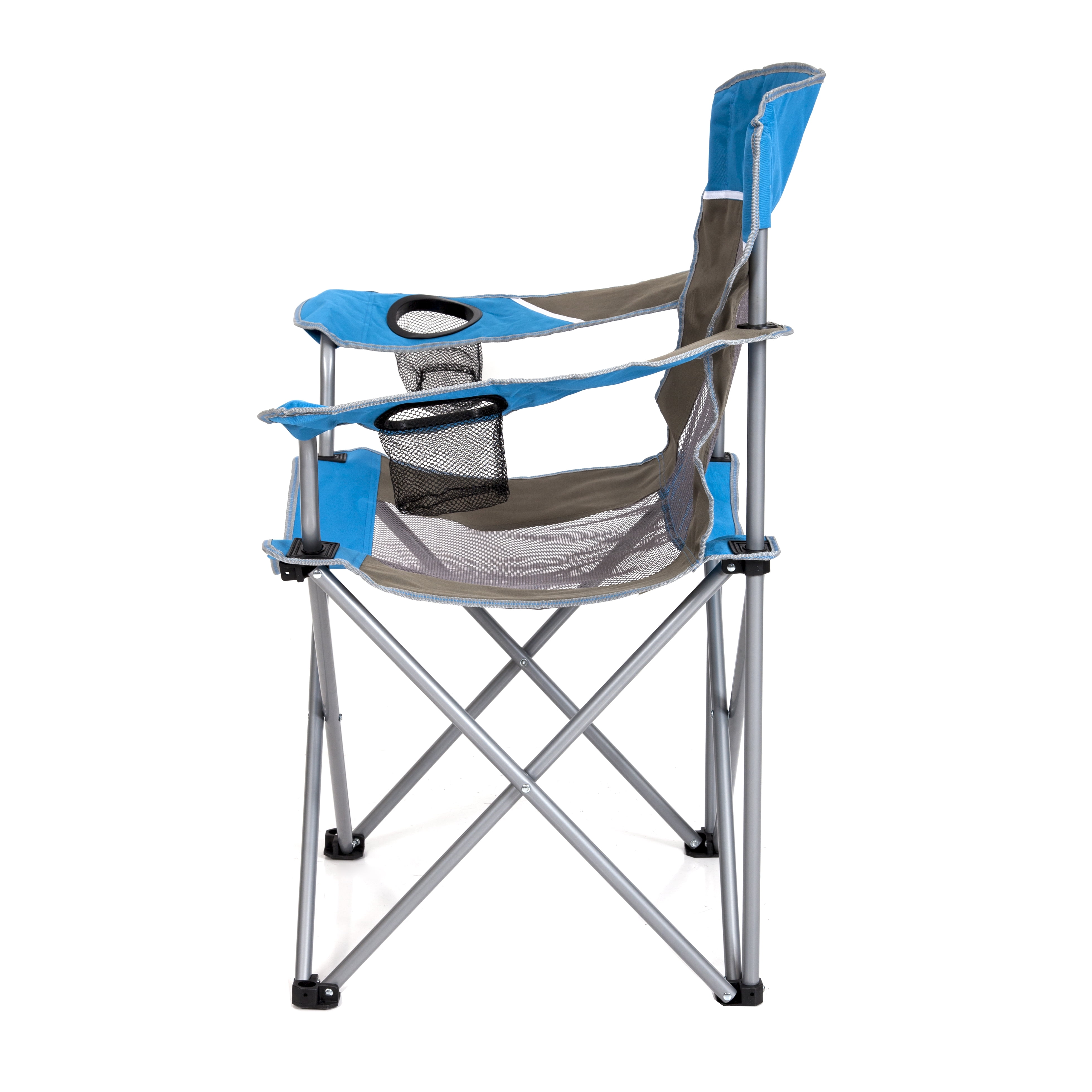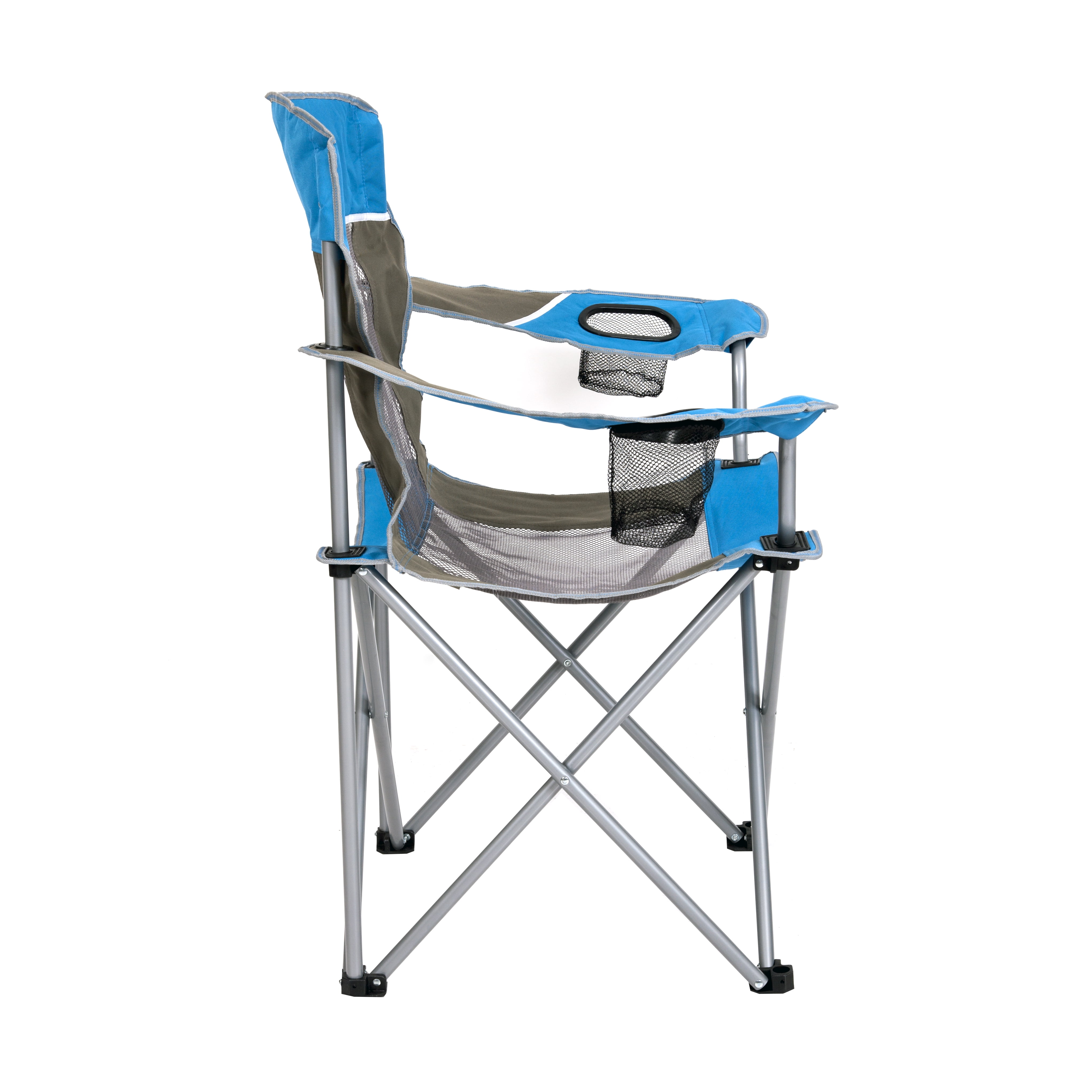 Seina Oversized Folding Mesh Camping Chair with 2 Cup Holders, Blue & Grey