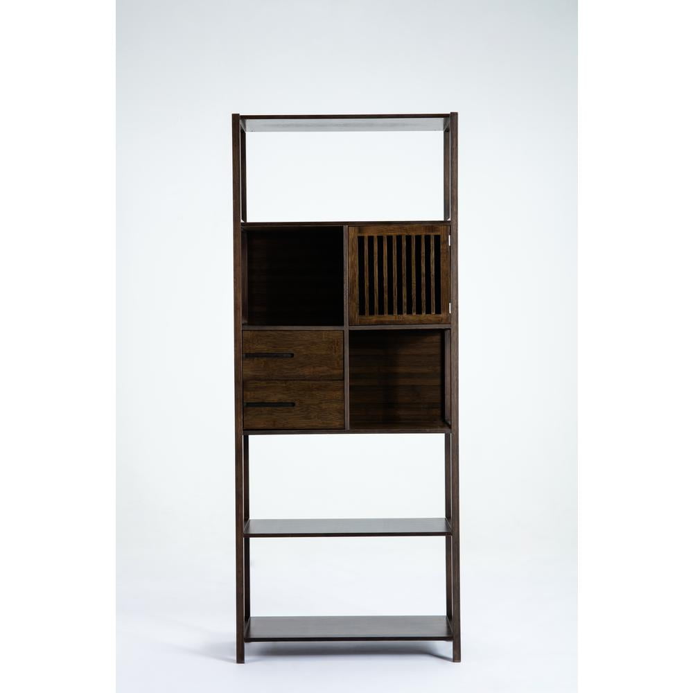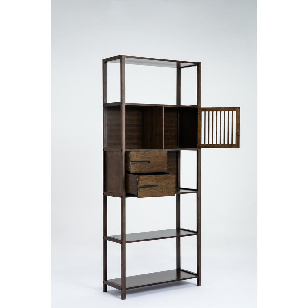 Selma Bamboo Bookcase with Right Facing Spindle Cabinet in Cappuccino Finish