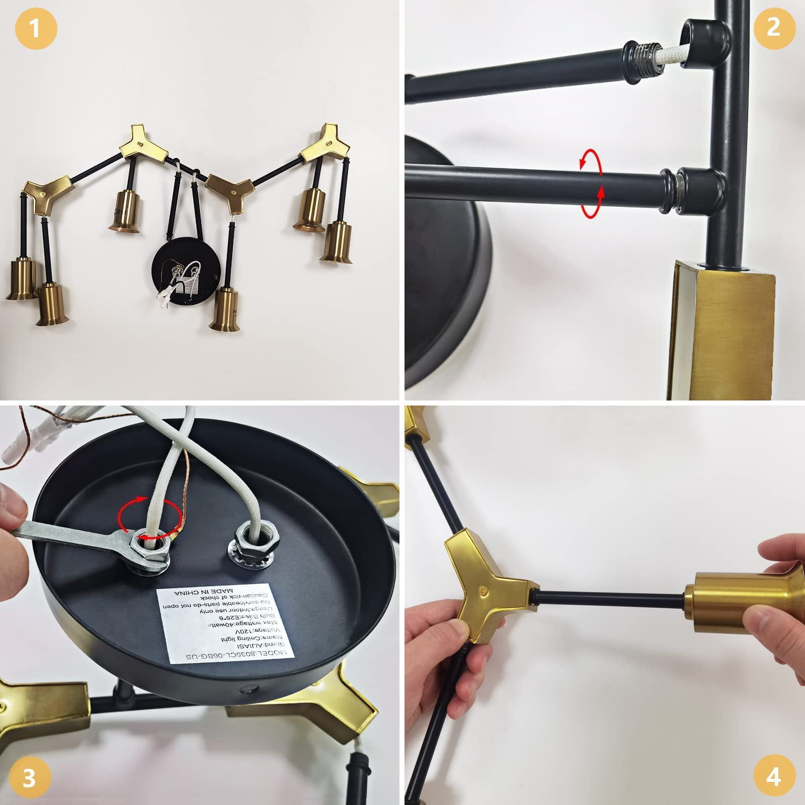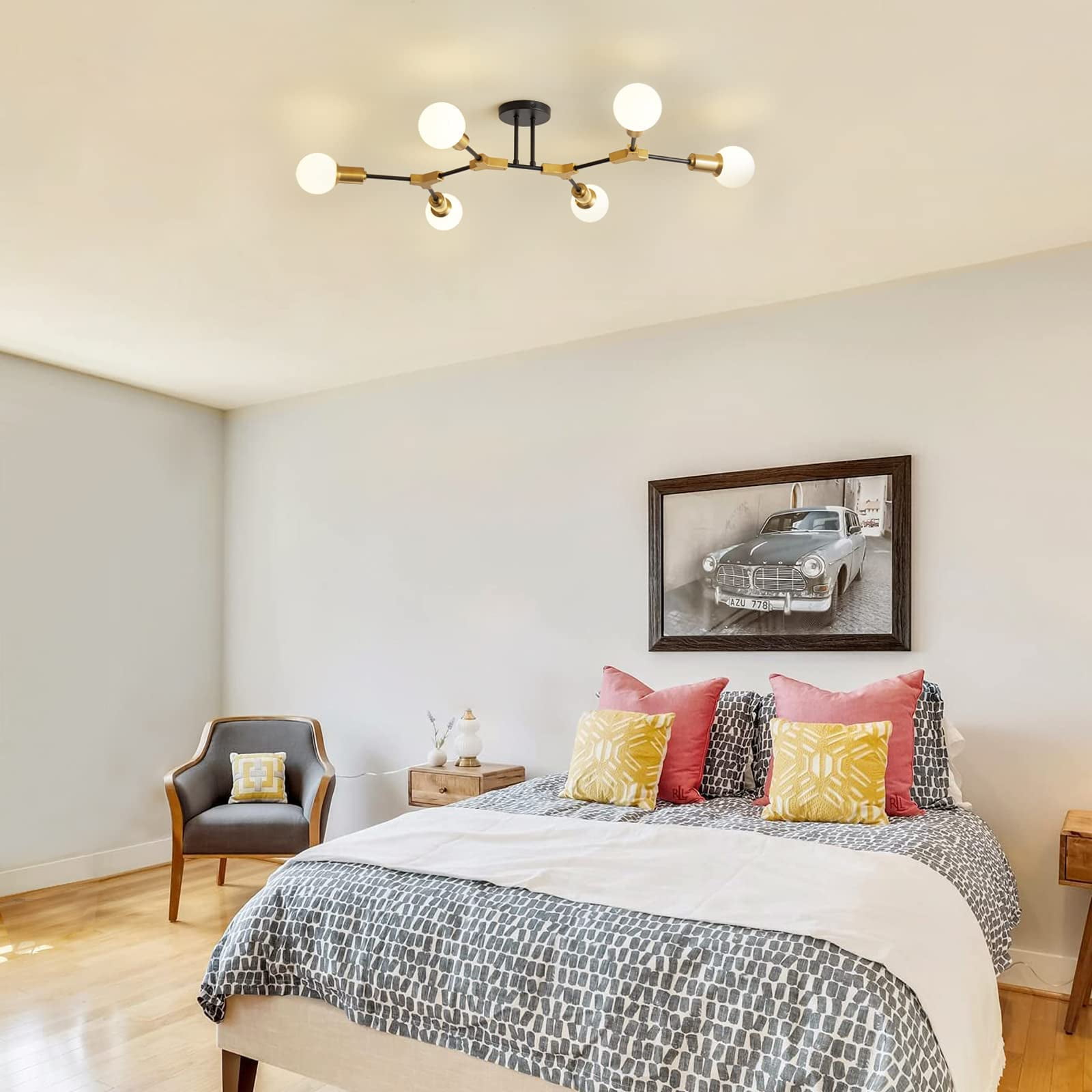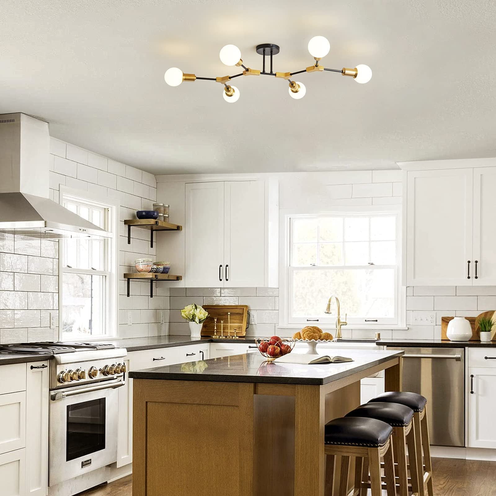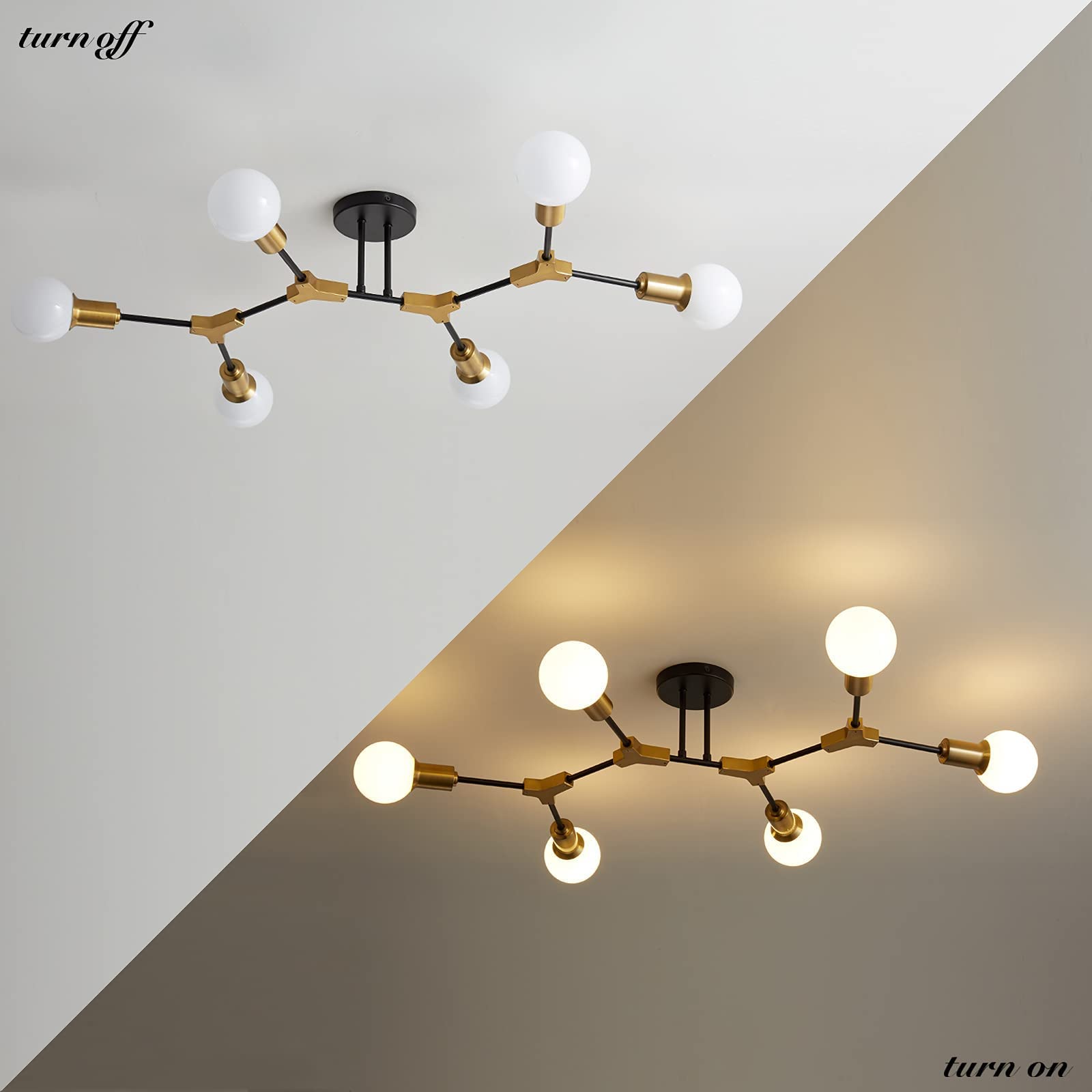 Modern Sputnik Design: Features a sleek black and gold finish with a striking sputnik-style design. Versatile Use: Ideal for bedrooms, living rooms, hallways, and more. Bright, Even Lighting: The multi-arm design ensures even light distribution across the room. Easy Installation: Includes all necessary hardware for a hassle-free setup. Durable Construction: Crafted from premium materials for long-lasting performance.