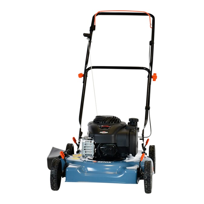 Beautify your lawn with the SENIX 20-inch 125 cc lawn mower. This walk-behind lawn mower features a 20-inch steel deck and is powered by a reliable Briggs & Stratton 125 cc gas powered engine that is designed to provide longer engine life, low vibration, and easy maintenance. The 4-stroke engine is eco-friendly offering low emissions, low fuel consumption, no mixing of oil and gas, and low noise. Prime N’ Pull start makes it easy to start the mower every time, and the side discharge chute disperses grass clippings evenly. This compact lawn mower is ideal for small to medium size yards. The durable 7-inch wheels can be adjusted to 5 different positions from 1.25-inches to 3.75-inches to meet the needs and conditions of your lawn. The fold down handle and compact design allows for easy storage. All SENIX lawn mowers are backed by our 2-year limited warranty for your peace of mind.