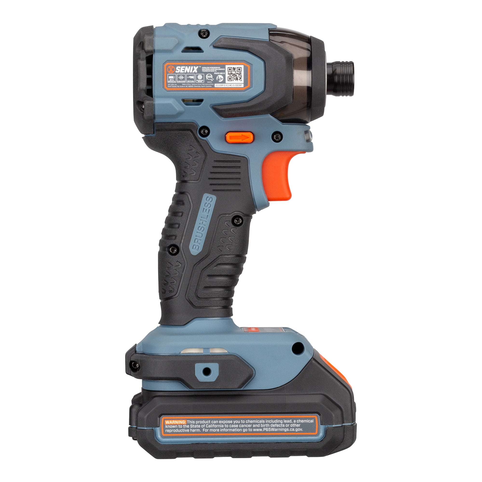 The SENIX S2K2B2-02 20V Max* 2-Tool Combo Kit includes PDHX2-M2 20V Max* cordless 1/2-inch hammer drill/driver and PDIX2-M2 20V Max* cordless 1/4-inch impact driver. Both tools feature a high-performance brushless motor that delivers more efficient performance and longer runtime. The hammer drill/driver has a 1/2-inch keyless, ratcheting chuck designed for increased strength and durability. The 19-position clutch and 2-speed gear box match drilling and driving needs. The impact driver delivers up to 130 foot-pounds of torque and 3000 RPM to drive large-diameter screws. The 4-speed selector switch offers greater control over a wide range of fastening applications. 1/4-inch hex drill bit holder for easy and secure bit connection. Reversal Auto-Stop button stops tool automatically after bolts / nuts get loosened enough to prevent them from falling. The bright LED light with On / Off button provides increased visibility. Ergonomic and compact design for user comfort during prolonged use. Overmold with customized micro texture for optimum grip and user comfort. For use with SENIX 20V Max* batteries and CHX2 2 Amp charger. Batteries and charger are included. All SENIX 20 Volt Max* cordless products are backed by our 5-year limited warranty and all SENIX lithium-ion batteries and chargers are backed by our 3-year limited warranty for your peace of mind. *20 Volt Max* battery, maximum initial battery voltage (measured without a workload) is 20 volts. The nominal voltage is 18.