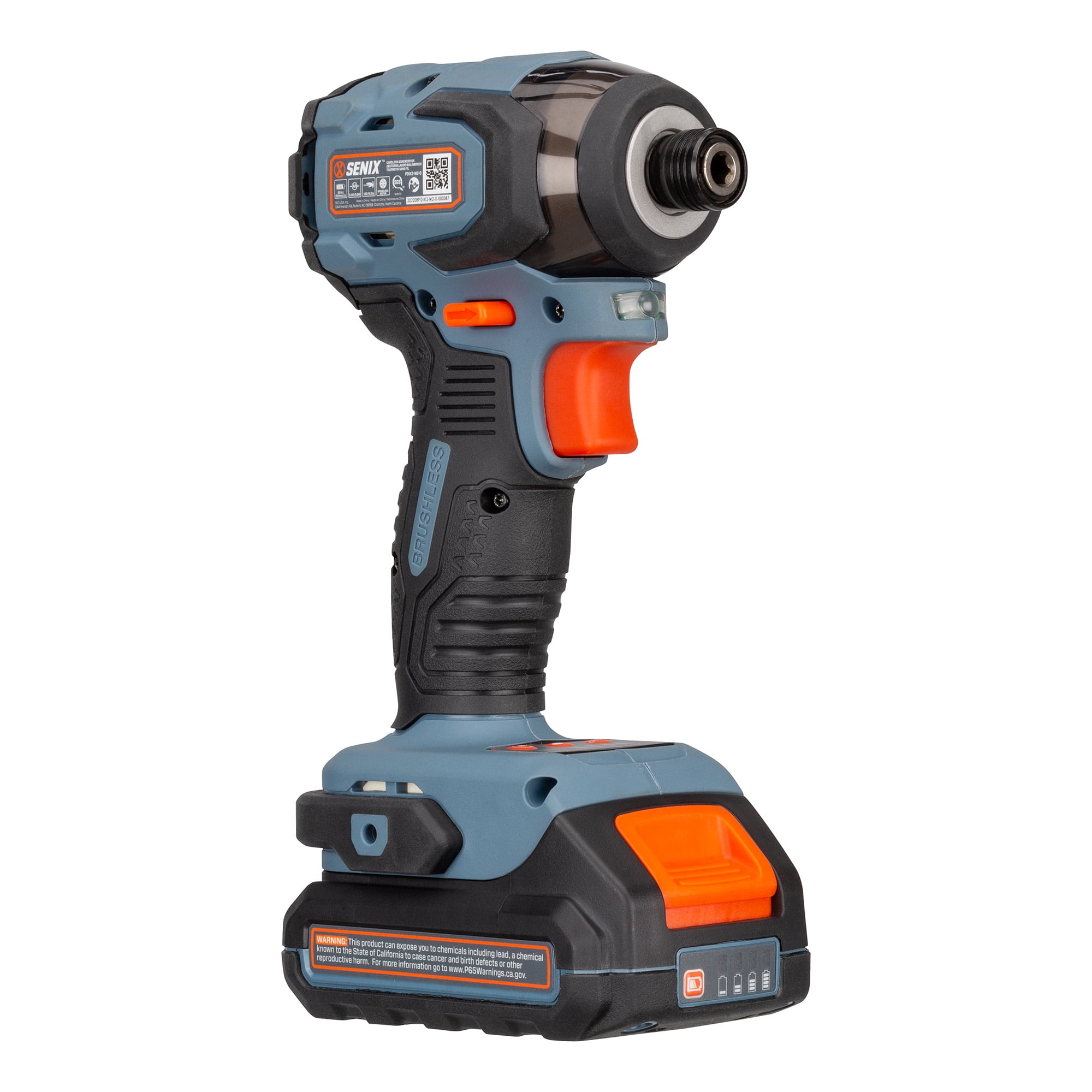 SENIX 20 Volt Max* 2-Piece Cordless Brushless Combo Kit, 1/2-Inch Hammer Drill Driver & 1/4-Inch Impact Driver (2 x Batteries, 1 x Charger and Soft Bag Included) S2K2B2-02