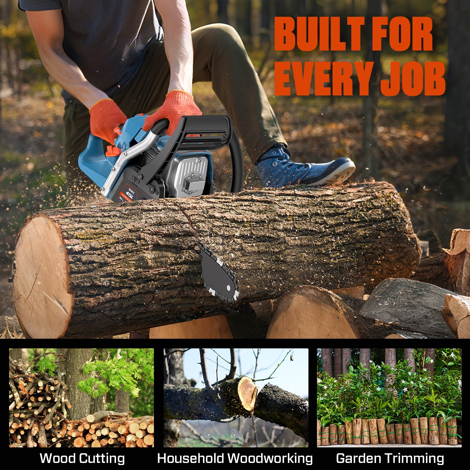 Engine: 46cc 4QL® 4-cycle – no fuel mixing, all-directional use 4QL Patent Tech: Low emissions, low fuel consumption, low vibration High Performance: 16-inch bar and chain, 59.06 ft/s (18 m/s) chain speed Low Maintenance: Automatic lubrication + side-mounted chain tensioner Easy Operation: Automatic choke and compression release for easy starting Ergonomic Control: U-type front handle + rubber grips Includes: Bar/chain cover, torx wrench, spark plug wrench, 2 oz. engine oil Warranty: 3-year limited warranty for peace of mind