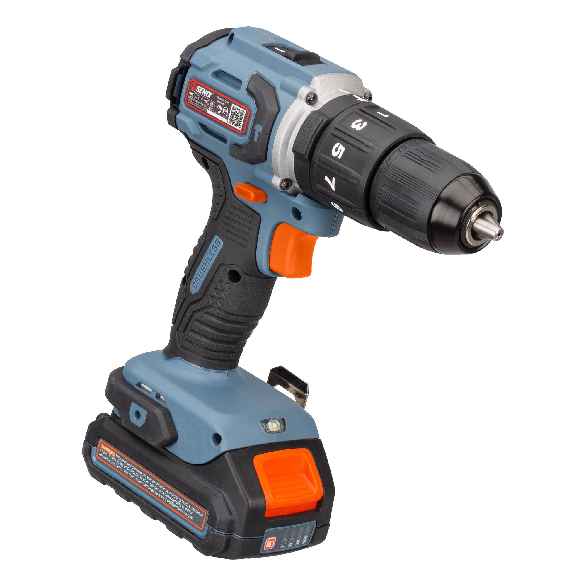 Senix PDHX2-M2 20V Max Brushless Drill Driver, 2.0Ah, 45 ft-lbs, 2200 RPM
