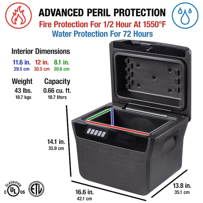 - ETL Verified for a minimum of 72 hours of water submersion to protect valuable items and documents from flood