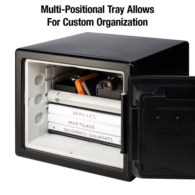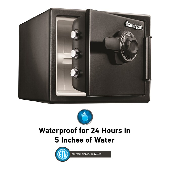 The SentrySafe SFW082CTB fireproof safe and waterproof safe with dial combination provides powerful protection in a size convenient for any home or small business office. The SFW082CTB is designed with your security needs in mind. Complete with one inch bolts, a pry resistant hinge bar and ETL Verified water protection and UL Classified fire protection to ensure of security for your valuables.