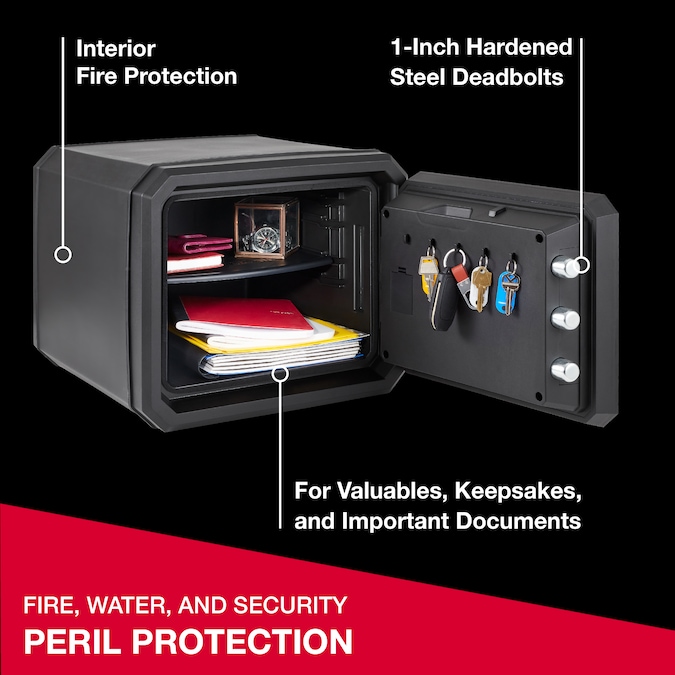 This home safe, fireproof and waterproof, protects what matters even while critical time passes, the temperature climbs and emergency crews make their way to the scene. It doesn’t take much time to learn the value of rigorous fire testing; a house fire can reach more than 1,100 °F in just 3.5 minutes. This home safe is UL Classified to protect valuables for 1 hour at 1700° and ETL verified to protect digital media for 1 hour. Additional water protection (ETL verified for 5 inches for 24 hours) means the safe can withstand not only flames and extreme heat, but also the water or fire retardant that will extinguish it. It also means the fireproof safe can be bolted down in the basement, limiting any water risks. Basement placement is popular because it means the fireproof safe won’t fall from higher levels in the event of structural collapse, and the bolt down kit makes it possible to store a safe almost anywhere. The newly designed bolt down kit maintains the integrity of the safe’s water protection. The metal handles are easy to operate, and the safe door audibly confirms when it’s closed. The adjustable shelf, key hooks and door pocket make it easy to find belongings in an emergency. Lithium batteries are included, giving a 5+ year lifespan.