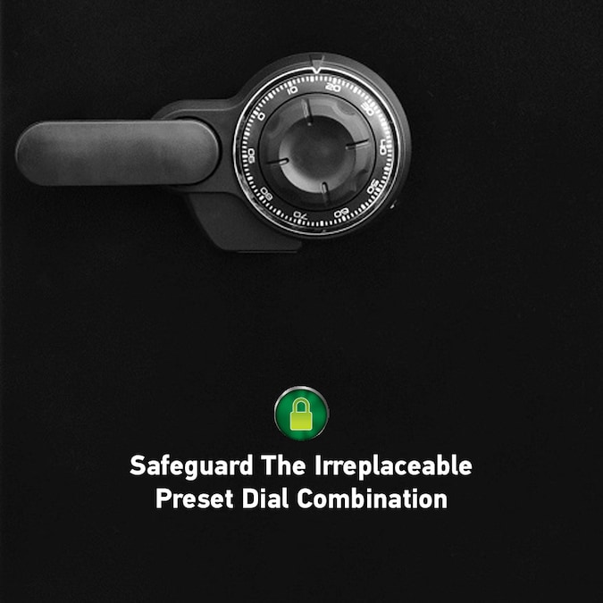 - Preset dial combination fire safe for strong security; combination safe features six live-locking bolts, steel construction, pry-resistant hinge bar, tray, two drawers, and bolt down hardware