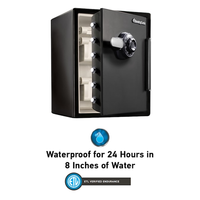 - Waterproof safe is ETL Verified for 8 inches up to 24 hours