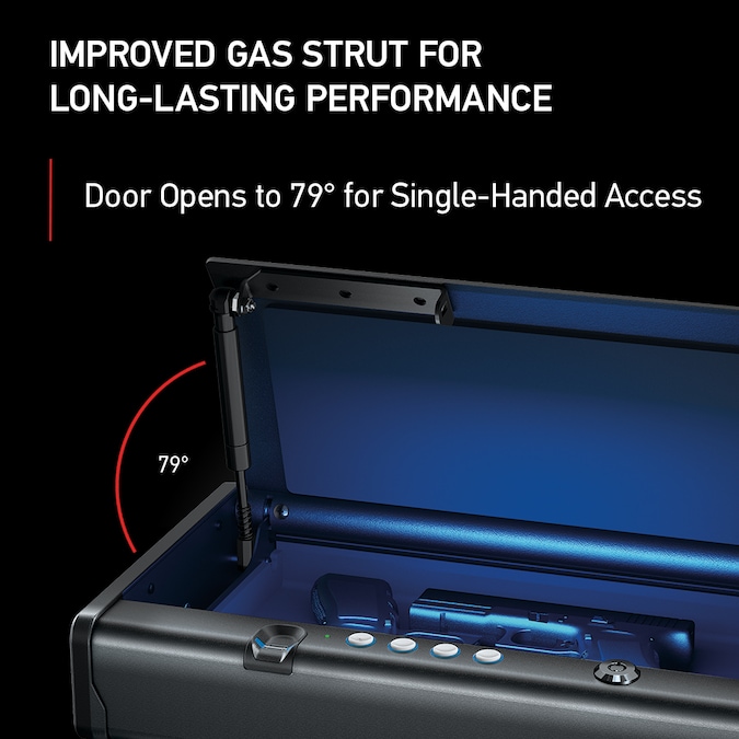 The QAP2BLX gun safe with biometric lock and interior light protects your handguns from unwanted access and theft with reliable security features and advanced locking technology. The QAP2BLX offers storage for two standard handguns or one large pistol and ammunition. This gun safe provides extra security for your handguns with strong solid steel construction, a pry resistant door and bolt-down hardware. This safe also offers quick and reliable access with a digital locking system that allows for single handed entry and a compression gas strut and an interior light for visibility in any situation, no matter the time of day.