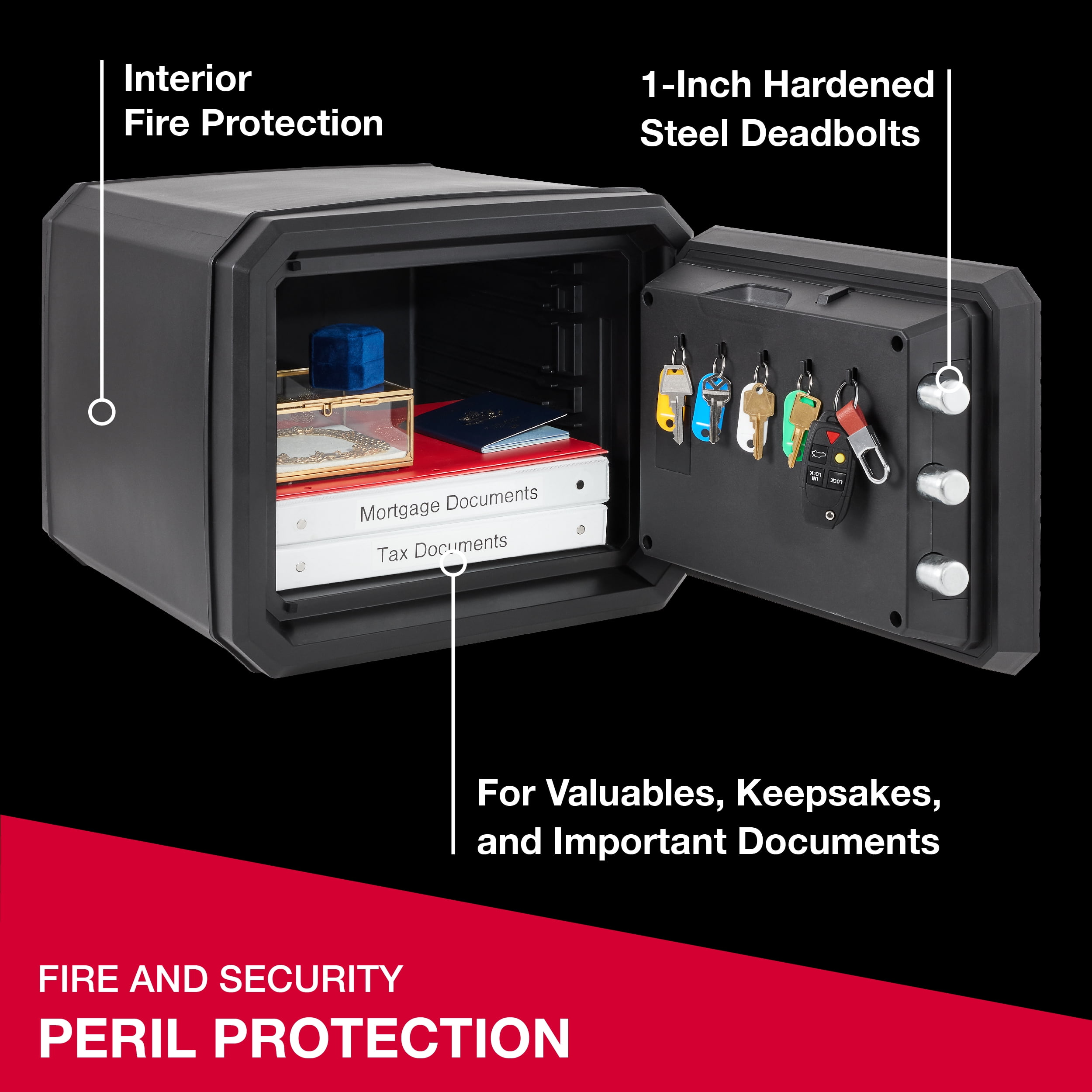 This large fire-resistant safe protects what matters while critical time passes, the temperature climbs and emergency crews make their way to the scene. It doesn’t take much time learn the value of rigorous fire testing; a house fire can reach more than 1,100 °F in just 3.5 minutes. This fire box is UL Classified to protect valuables for 1 hour at 1700° and ETL verified to protect digital media for 1 hour, making it the ideal choice to safeguard what cannot be replaced. The handles are easy to operate, and the safe door audibly confirms when it’s closed. Lithium batteries are included, giving a 5+ year lifespan.