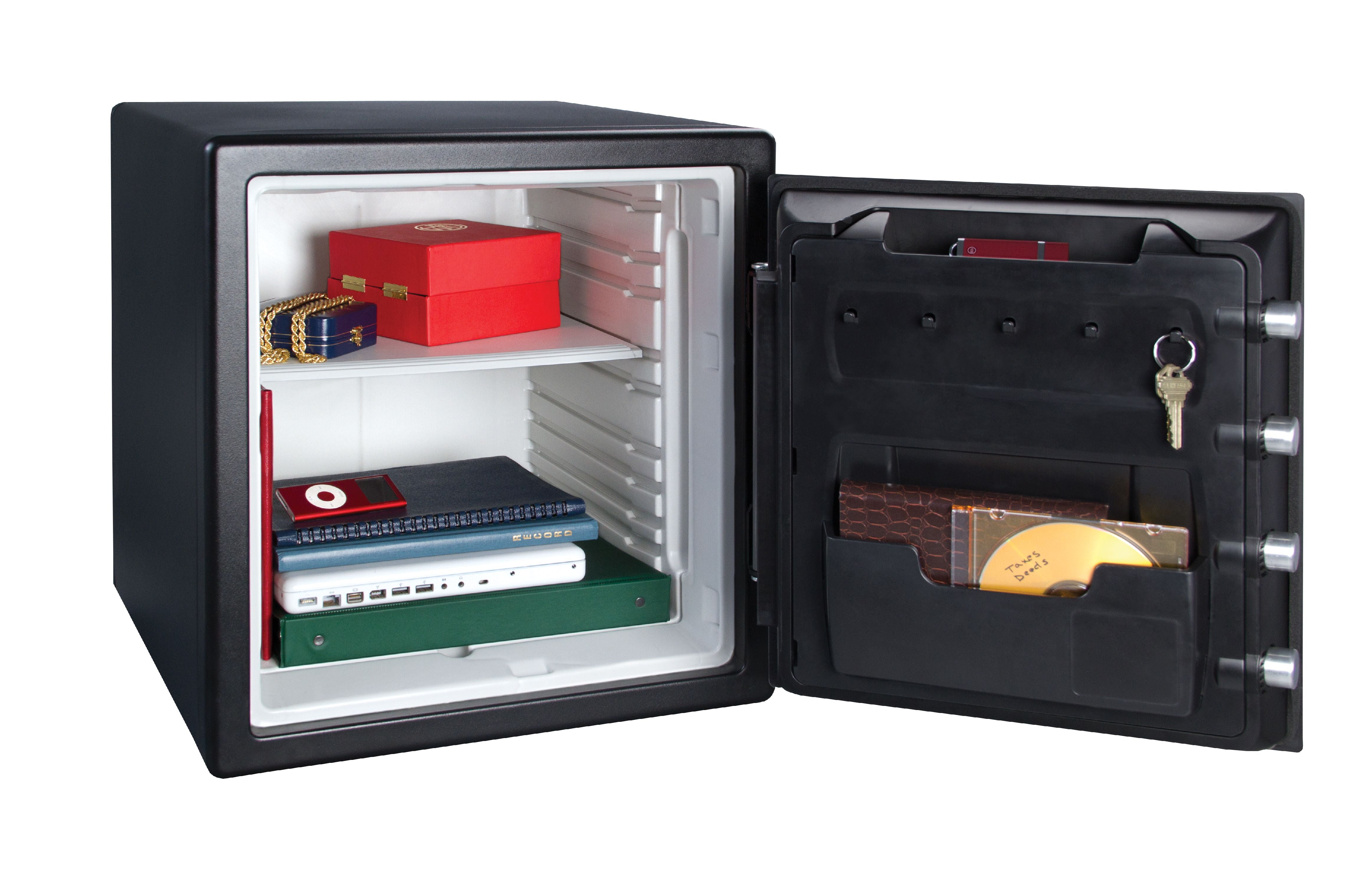 Fire resistant safe is UL classified for fire endurance (1 hour at 1700ºF) to protect documents, records and valuables from fire damage; ETL verified (1 hour at 1700ºF) to protect CDs, memory sticks, and other digital media, and ETL verified to withstand a 15-foot drop during fire and stay closed Security safe is ETL verified in up to 8 inches of water for up to 24 hours; providing peace of mind in the event of flood Extra large fire safe ensures there is space for all your valuables and includes a multi-position drawer and door pocket with key rack for optimal organization; Interior: 13.8 in. H x 12.6 in. W x 11.9 in. D, exterior: 17.8 in. H x 16.3 in. W x 19.3 in. D In the event of a fire, SentrySafe will replace your fire-resistant product to help get you back on your feet $50,000 Fire Protection Guarantee, is valid only and Canada. Details in Owners Manual