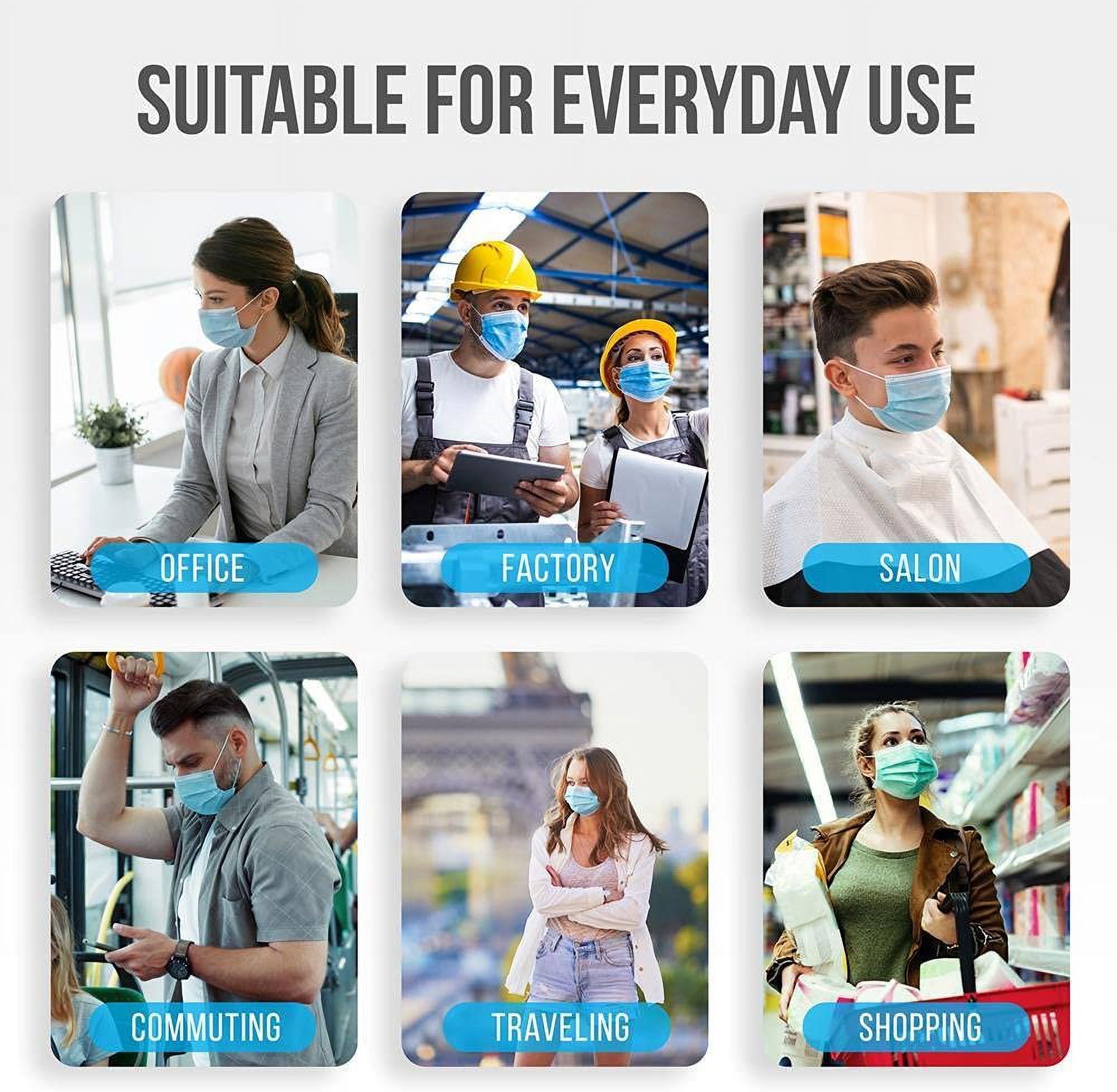 3-LAYER PROTECTION: The SereneLife Disposable Face Mask features a 3-ply design. Made from 3 layers of high-quality non-woven fabric that has a stronger filtering effect and is more warm and breathable. ONE SIZE FITS MOST: Comes in one size but fits most adult men or women, also suitable for teenagers. Suitable for adults and kids of all ages. Can be used for outdoor public areas, schools, offices, and home usage BLOCKS DUST & POLLUTION: Helps, dust, pollution, and other so you can breathe easily & safely in any environment. It can be used for daily protection, but should not be used in ADJUSTABLE NOSE BRIDGE: Each mask comes with an adjustable nose clip and elastic ear loops to ensure a comfortable fit. Fix both sides of the bridge of the nose to fit the curve of the face. Elastic ear bands are suitable for different sizes of faces SECURE FIT: These tri-folded masks extend down to cover the face from the nose to underneath the chin with a snug secure fit. Protects nose and mouth against fluids while providing comfort and easy breathing