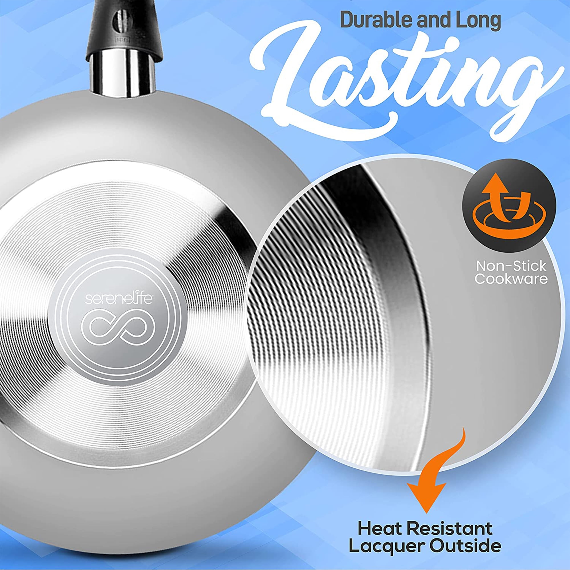 SereneLife 15 Piece Pots and Pans Home Non Stick Kitchenware Cookware Set