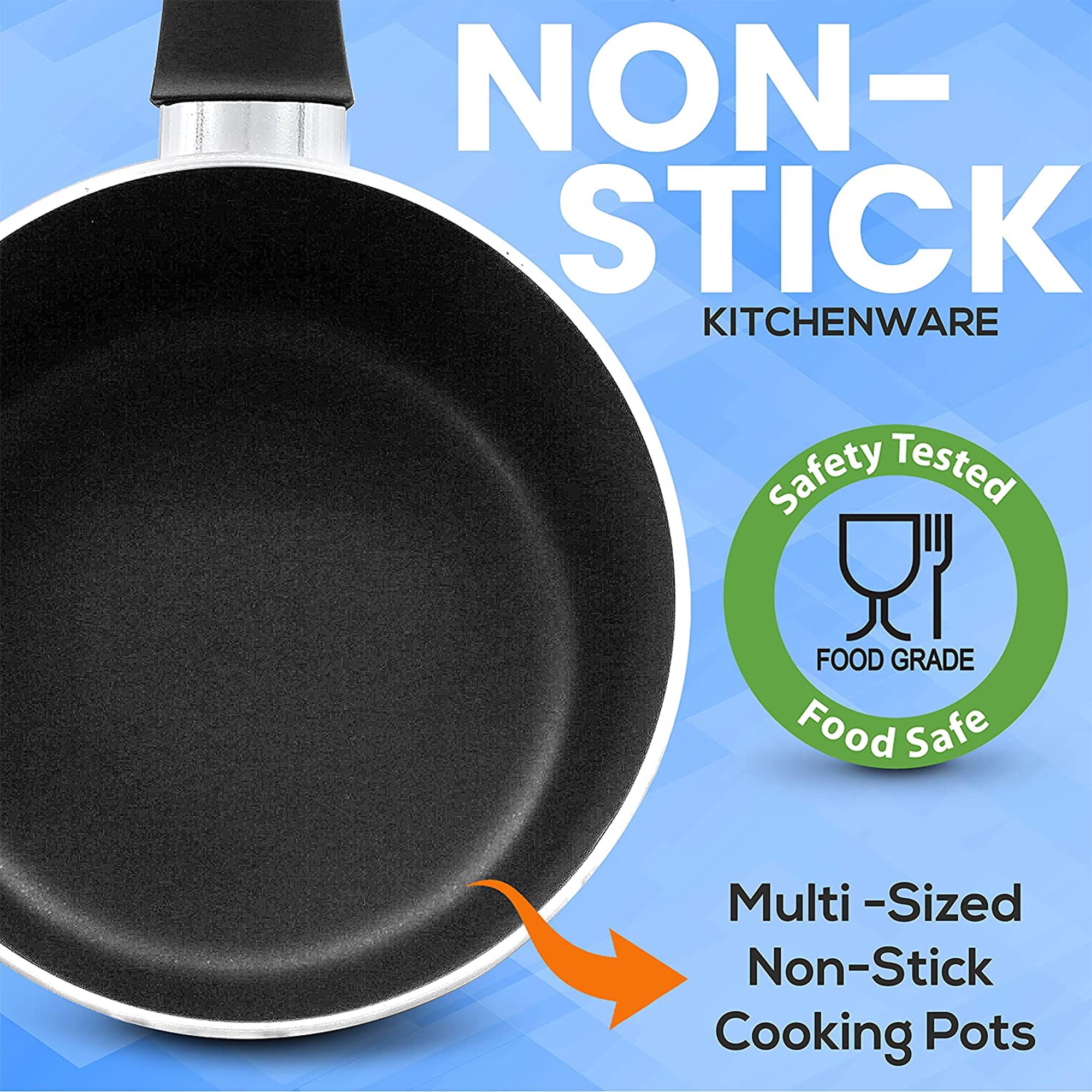 Set includes various sized pots and pans as well as cooking utensils so you have all the cookware you need Features 0.89-quart saucepot, 1.90-quart saucepot, 4.70-quart dutch oven, 2.5-quart saute pan, 8-inch pan, and a 10-inch pan Cooking utensils included are a solid spoon, slotted spatula, pasta server, soup ladle, and egg whisk These pots and skillet fry pans have been designed with comfortable handle grips for you to transfer them between different cooktops Made of pressed aluminum metal, they are suitable for gas, electric, and ceramic counter cooktops The non-stick kitchenware has tempered glass lids with vents for steam to escape This set is safe for the dishwasher and is easy to clean This essential kit expands your cooking ability so you can truly embrace every page of your cookbooks Maximum temperature: 350-Farenheit Material: Pressed aluminum metal Color: Gray 0.89-quart saucepan pot size (L x W x H): 12 x 6.3 x 4.72 inches (with handle and lid) 1.90-quart saucepan pot size (L x W x H): 13.77 x 7.08 x 5.31 inches (with handle and lid) 4.70-quart dutch oven pot size (L x W x H): 17.12 x 9.45 x 4.92 inches (with handle and lid) 2.5-quart saute pan size (L x W x H): 14.56 x 9.45 x 6.88 inches (with handle and lid) 8-inch small fry pan size (L x W x H): 14.37 x 7.87 x 1.57 inches (with handle) 10-inch medium fry pan size (L x W x H): 17.71 x 10.23 x 1.97 inches (with handle) Manufacturer’s warranty: 1-year warranty