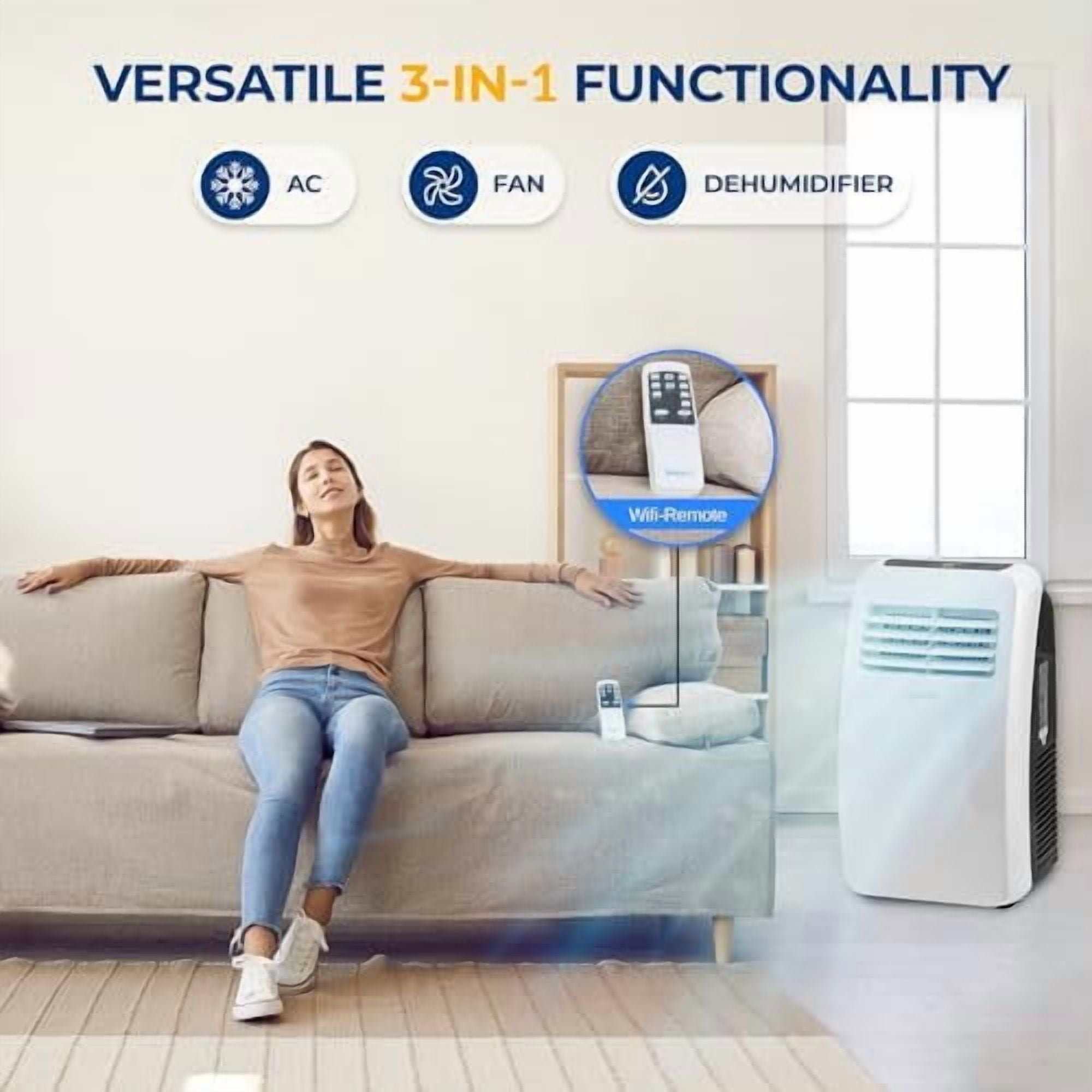 Stay cool and comfortable all year round with the SereneLife SLPAC8 Portable Air Conditioner. This compact and powerful 8,000 BTU cooling unit is designed to provide you with the ultimate home climate control solution. Beat the heat with this efficient portable air conditioner. With 8,000 BTUs of cooling power, it quickly cools small to medium-sized rooms, ensuring you stay comfortable even on scorching summer days. Say goodbye to excess humidity in your home. This portable AC comes with a built-in dehumidifier that removes moisture from the air, making your space feel cooler and more comfortable.
