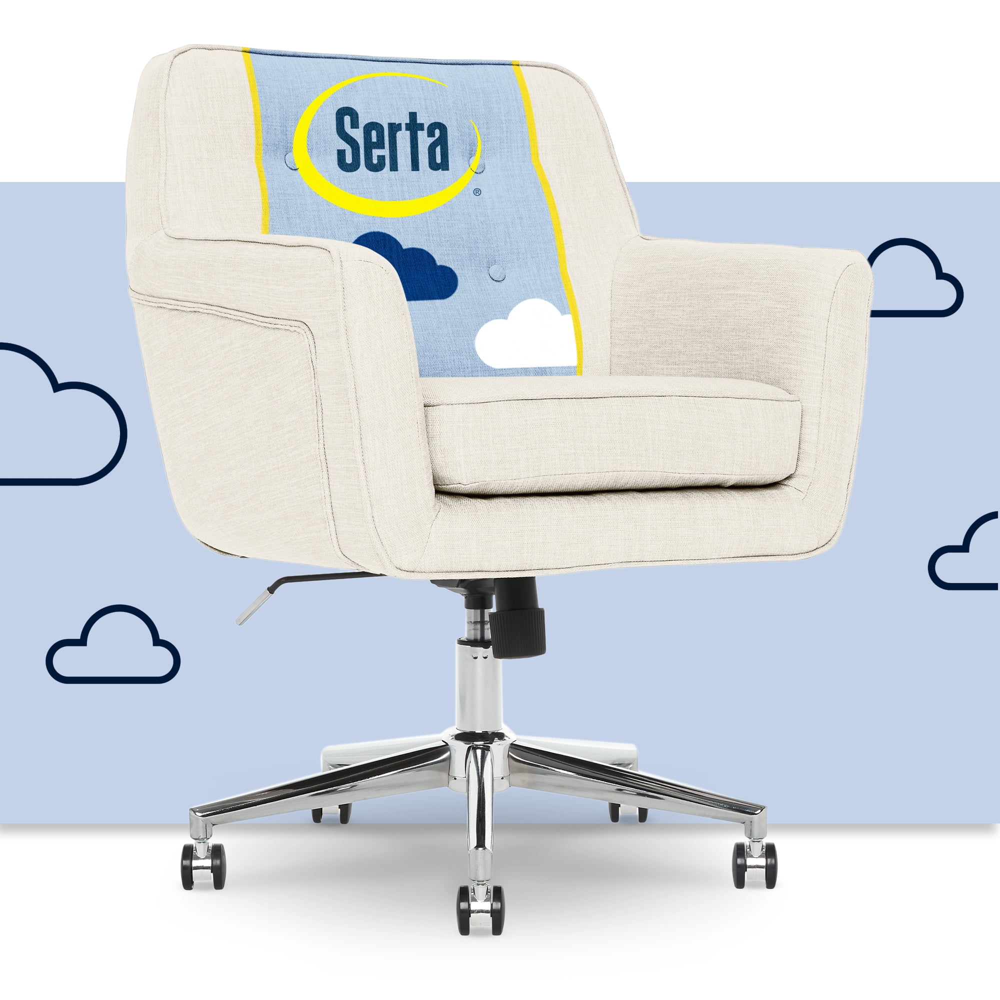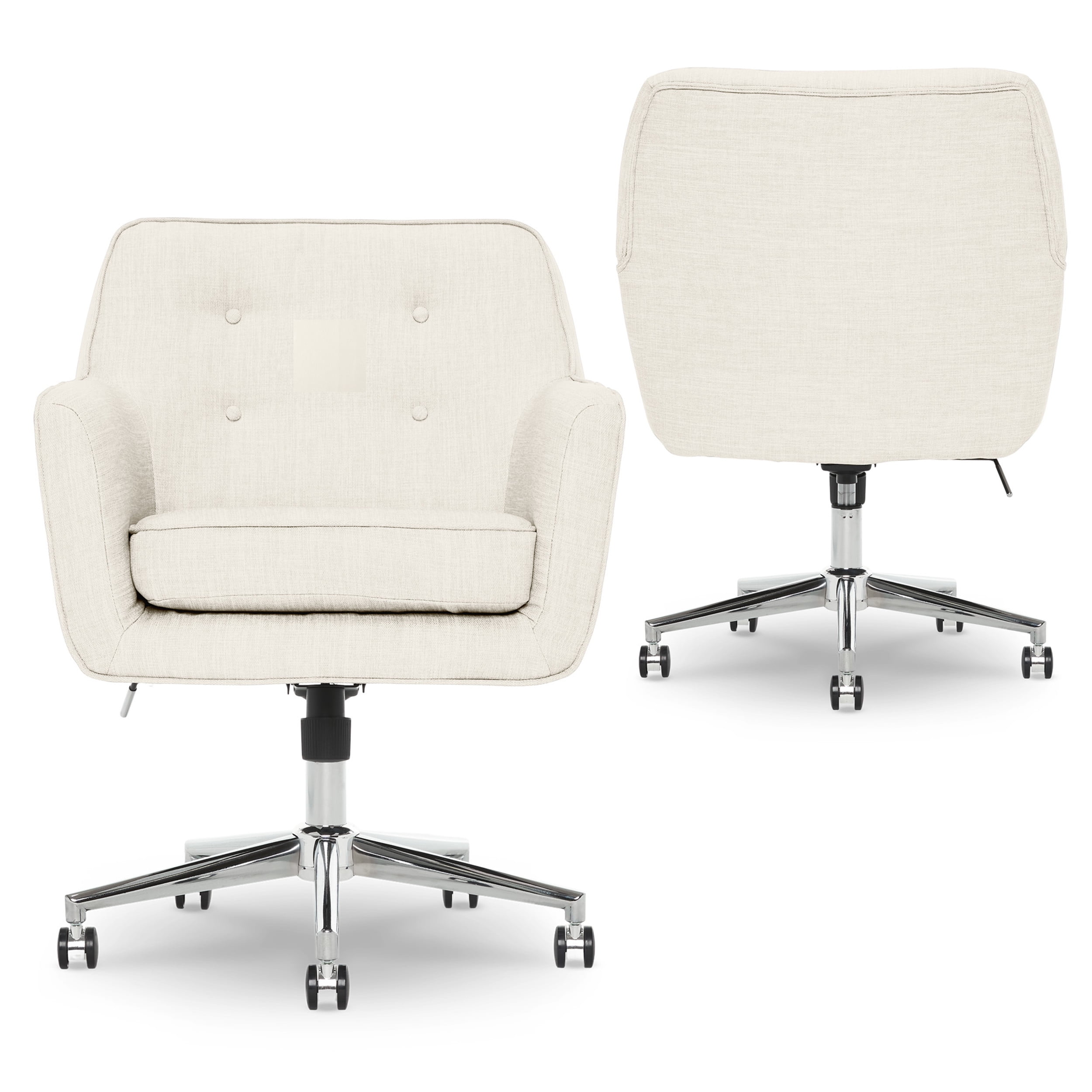 Serta Ashland Office Desk Chair, Button Tufted Mid-Back, Memory Foam Cushion, Chrome Swivel Base, Ivory