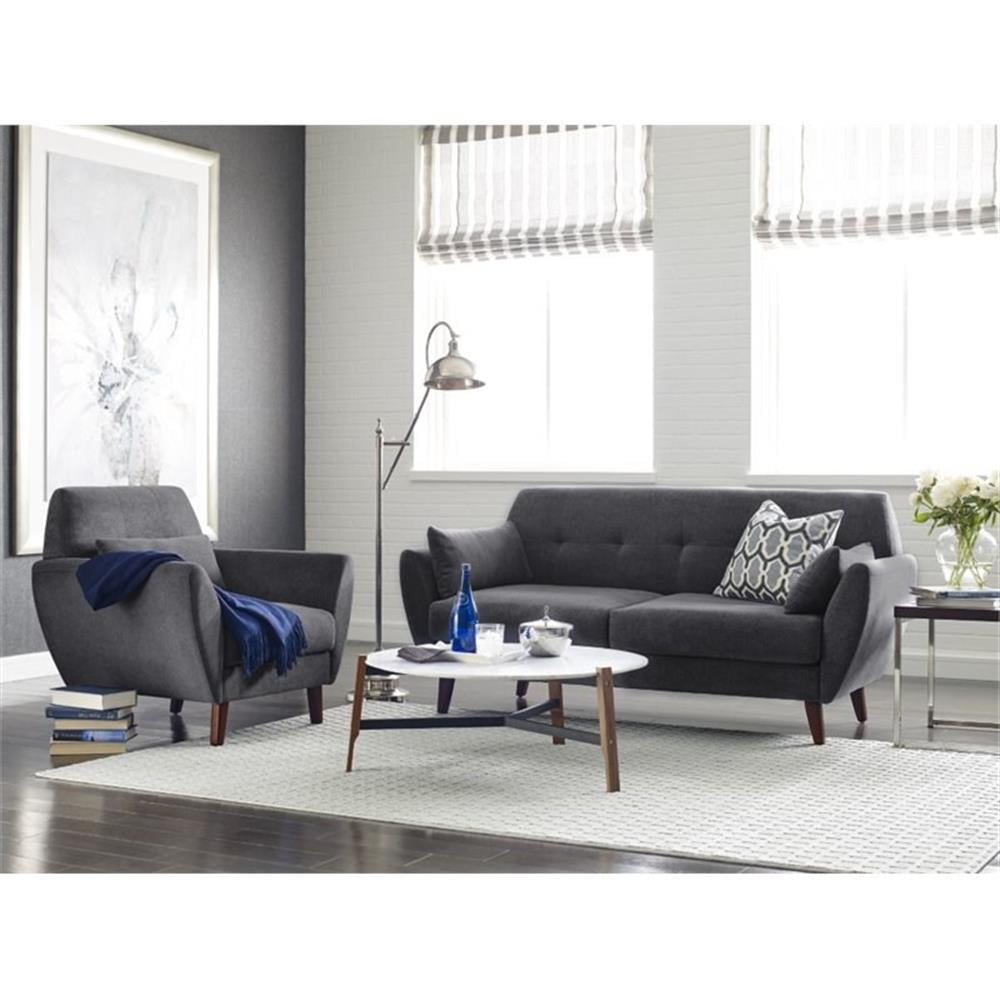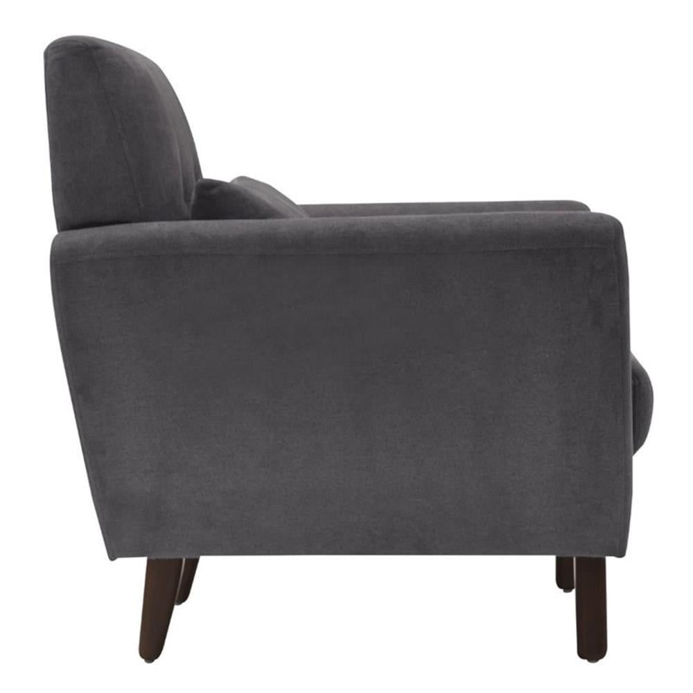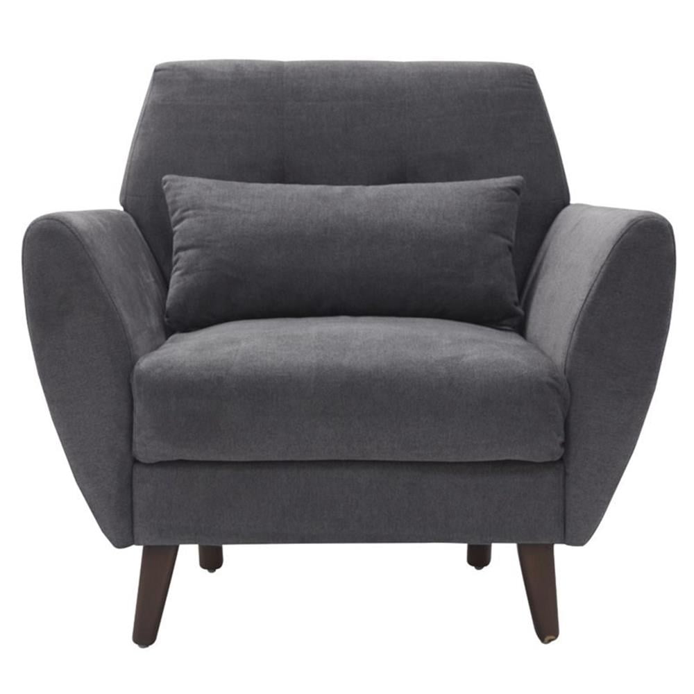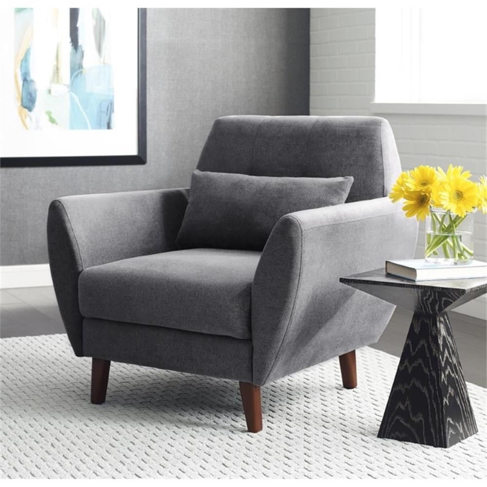 Finish: Slate Gray Material: Microfiber Suede, Hardwood The Artesia Chair brings the popular mid-century look to your small space An extra comfortable and affordable place to sit Easy-to-clean microfiber fabric in your choice of three fashionable colors The hardwood frame construction offers years of durability One matching pillow included