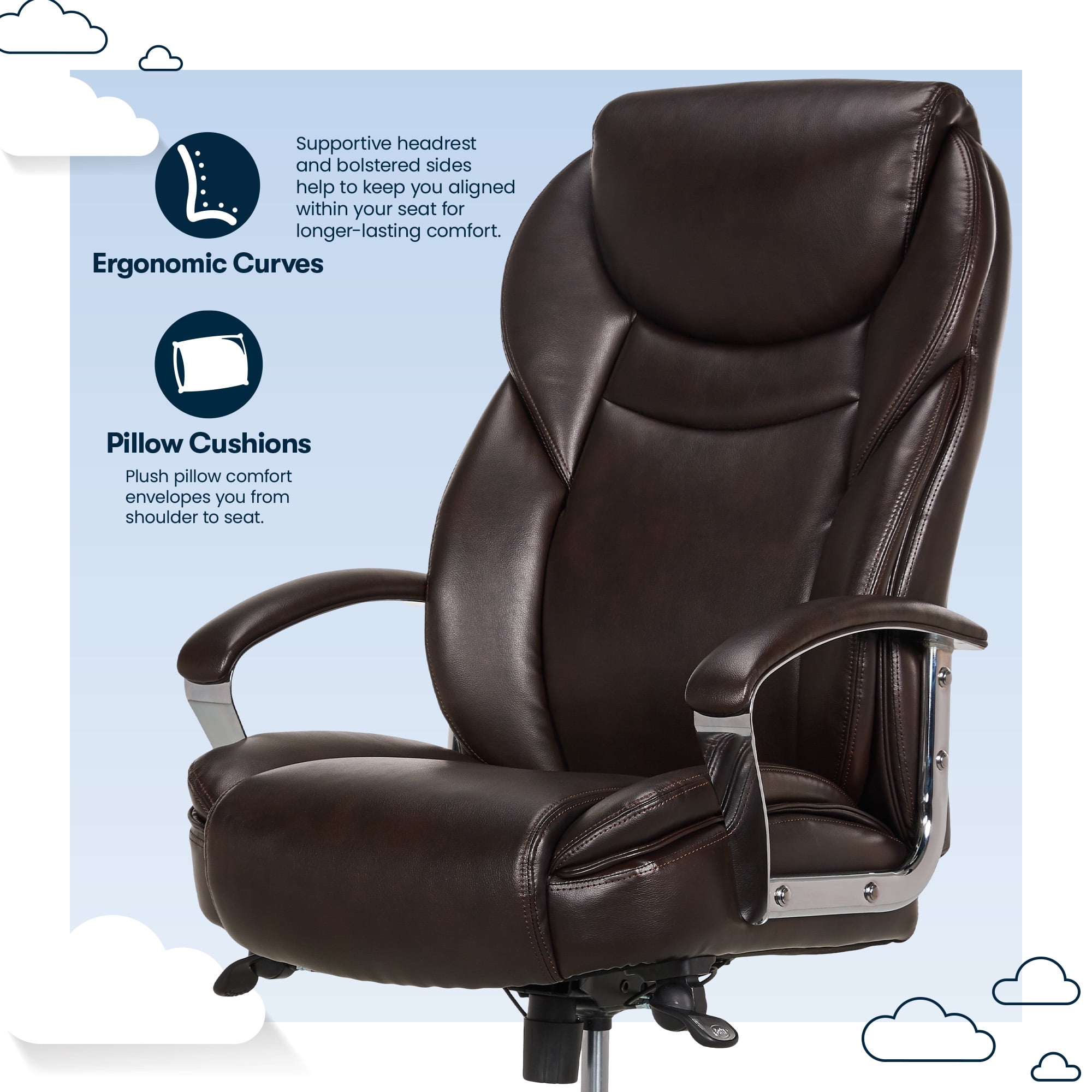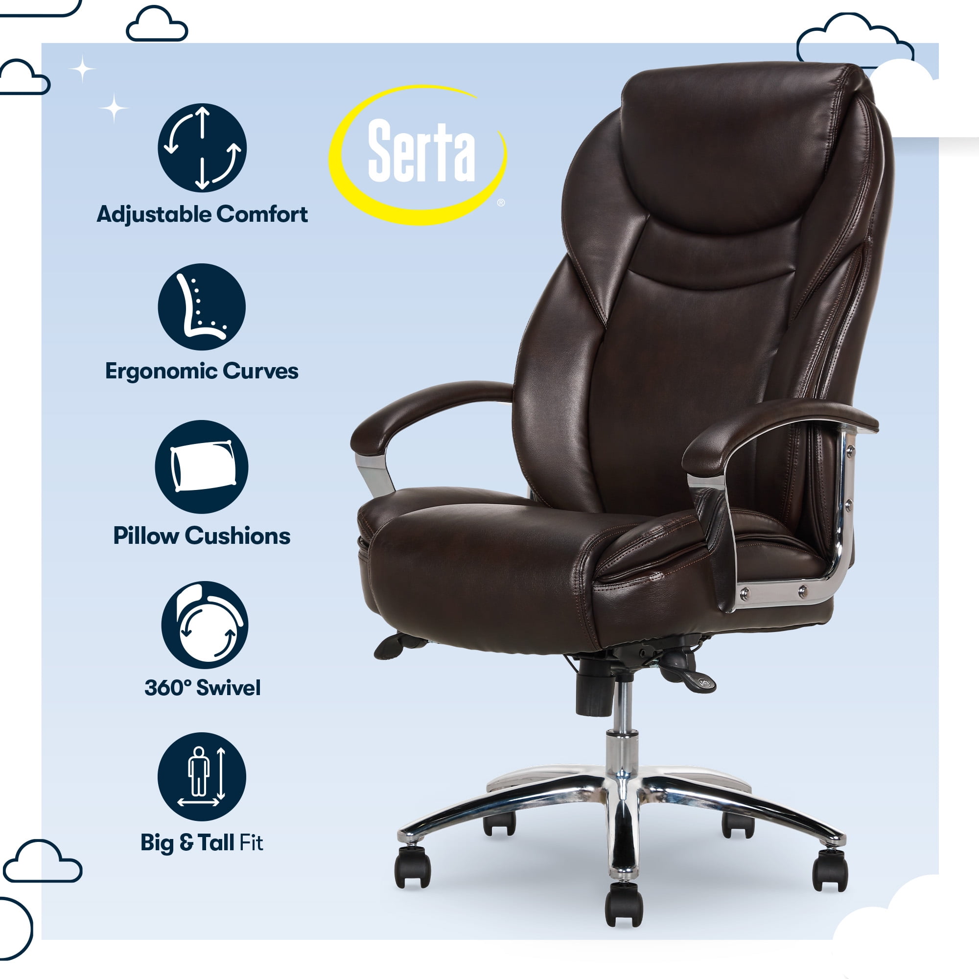 Serta Big & Tall High Back Office Chair, Heavy Duty Weight Rating, Brown Bonded Leather Upholstery