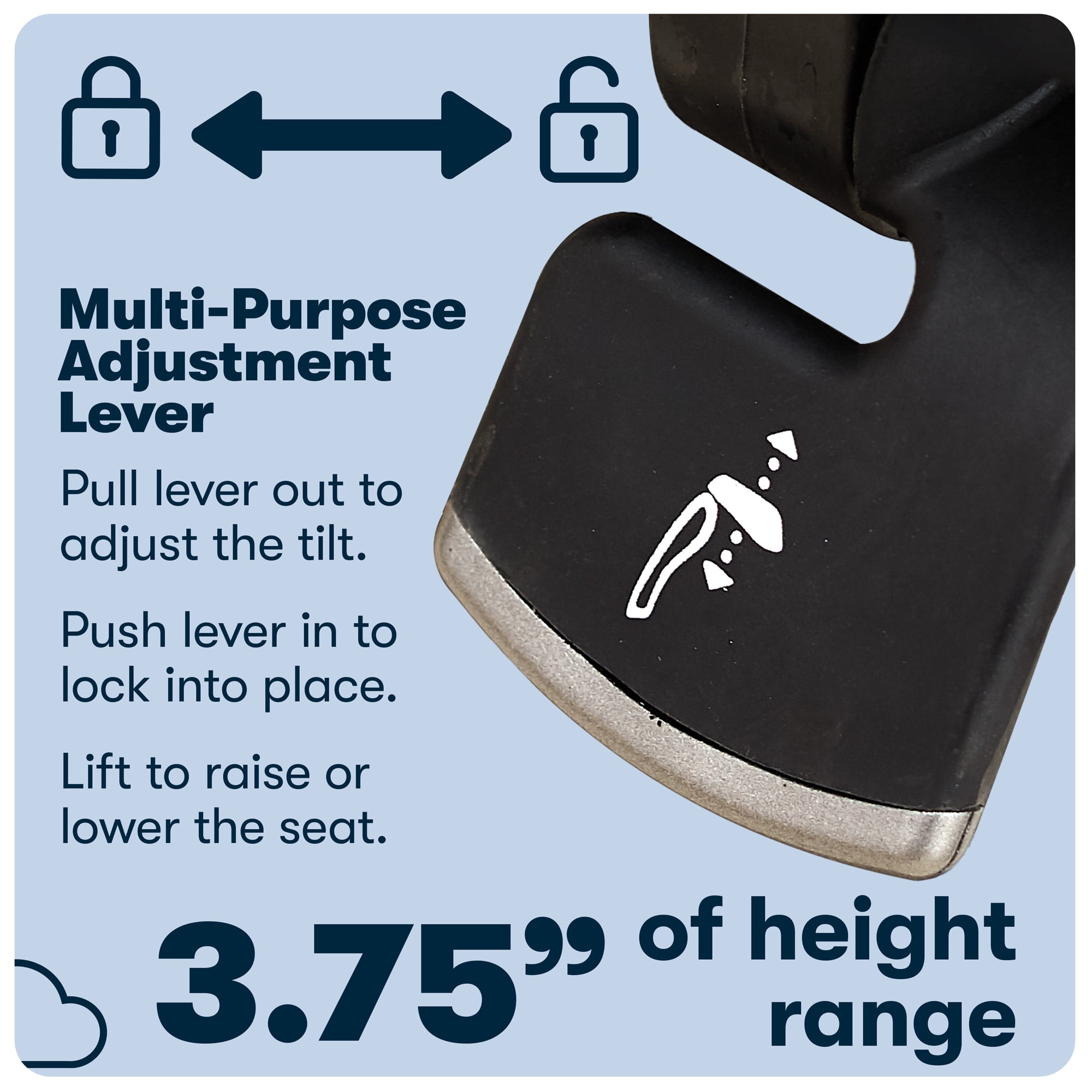 Heavy-duty base in an iridescent silver finish Eco-friendly smooth black bonded leather upholstery Ergo layered body pillows for added comfort Active lumbar support pivots with your movements Weight capacity: 250 lbs. Some assembly required Dimensions: 25.25W x 28.25D x 45.5H in. Seat Height: 20.75 in.