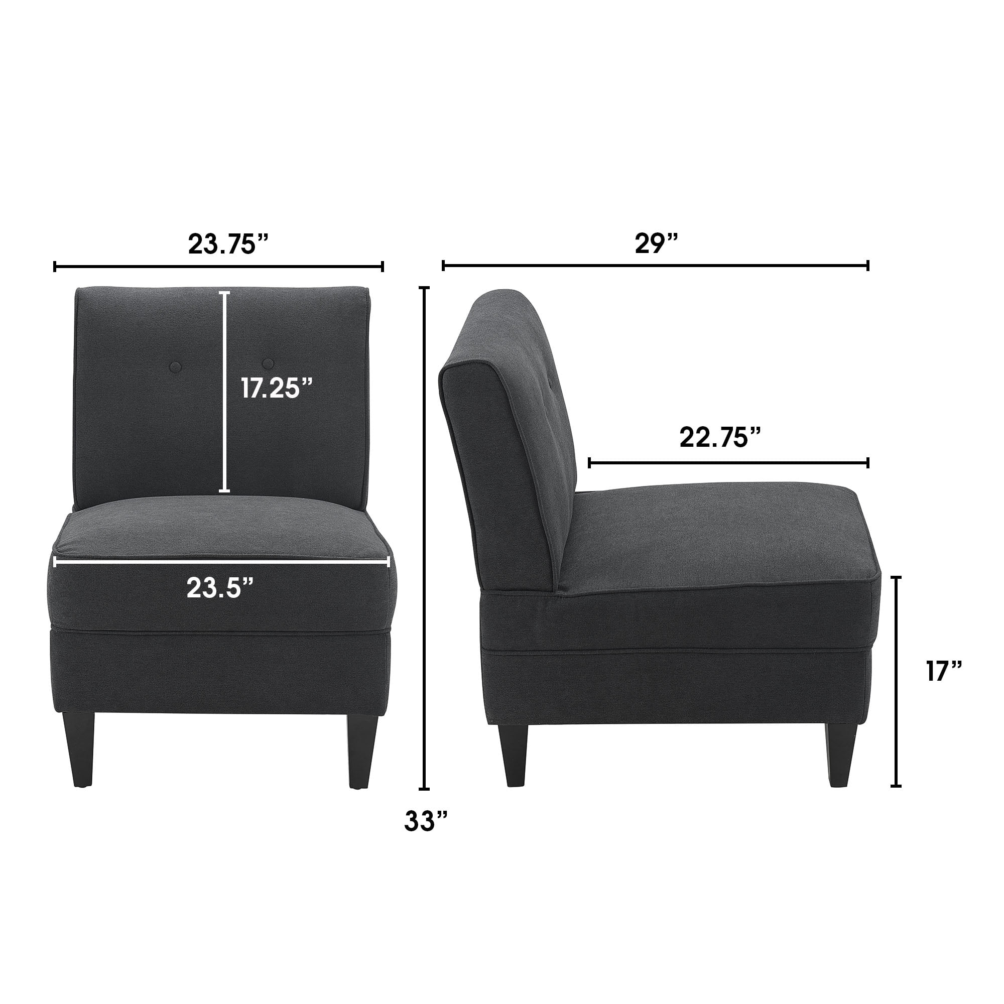Serta Copenhagen Slipper Chair, Tufted Backrest, Sinuous Spring Seat Cushion, Polyester Fabric, Charcoal