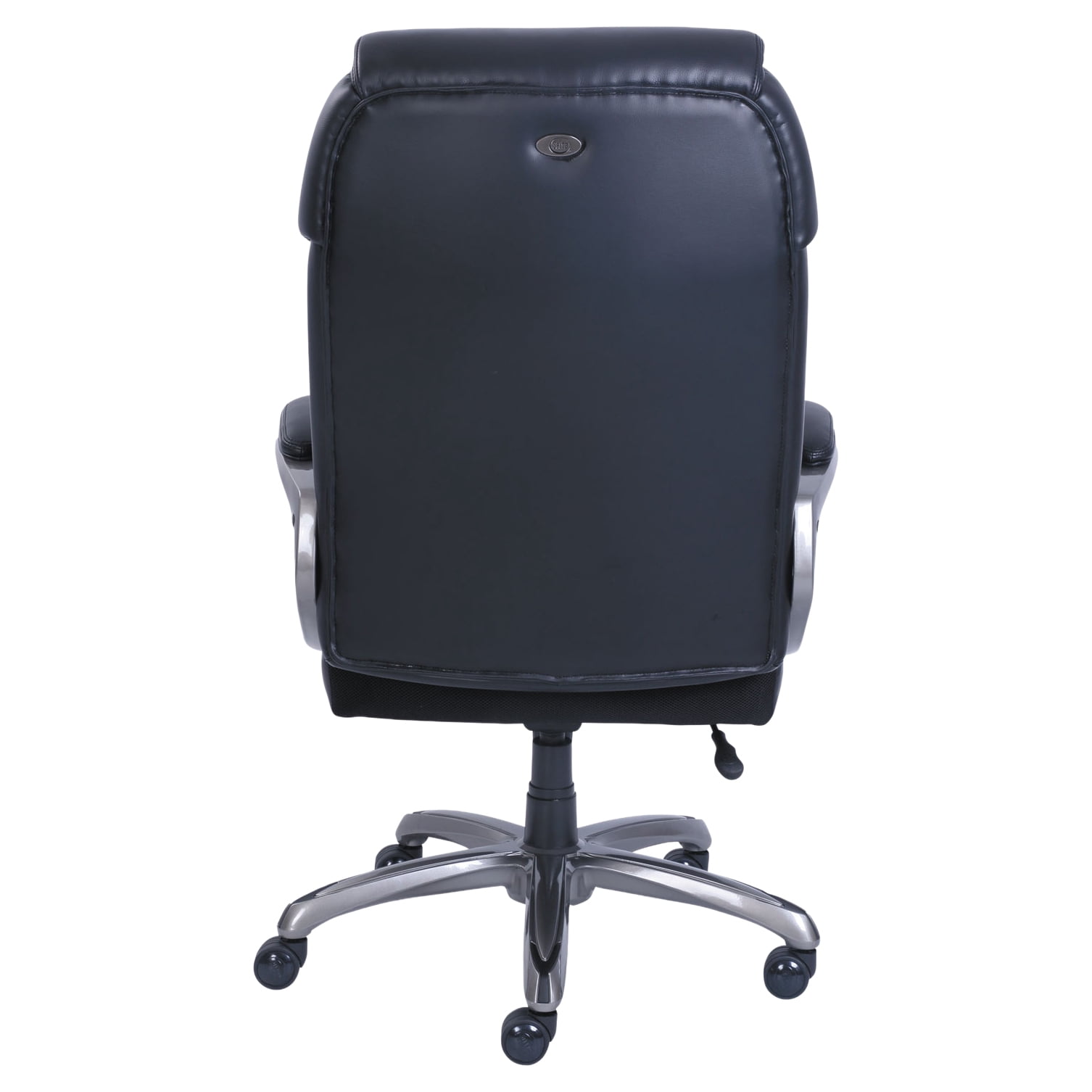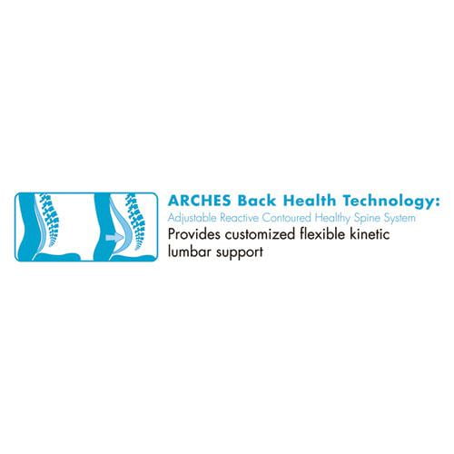 Adjustable Reactive Contoured Ergonomic Support, ARCHES, back health technology provides customized flexible kinetic lumbar support. SertaPedic® comfort support system with layers of molded foam, memory foam, and pocket coils. Upholstered in black commercial grade bonded leather. Pneumatic lift with tilt tension adjustment and lockout feature. Five-star nylon base with casters for easy mobility. Supports up to 275 lbs.