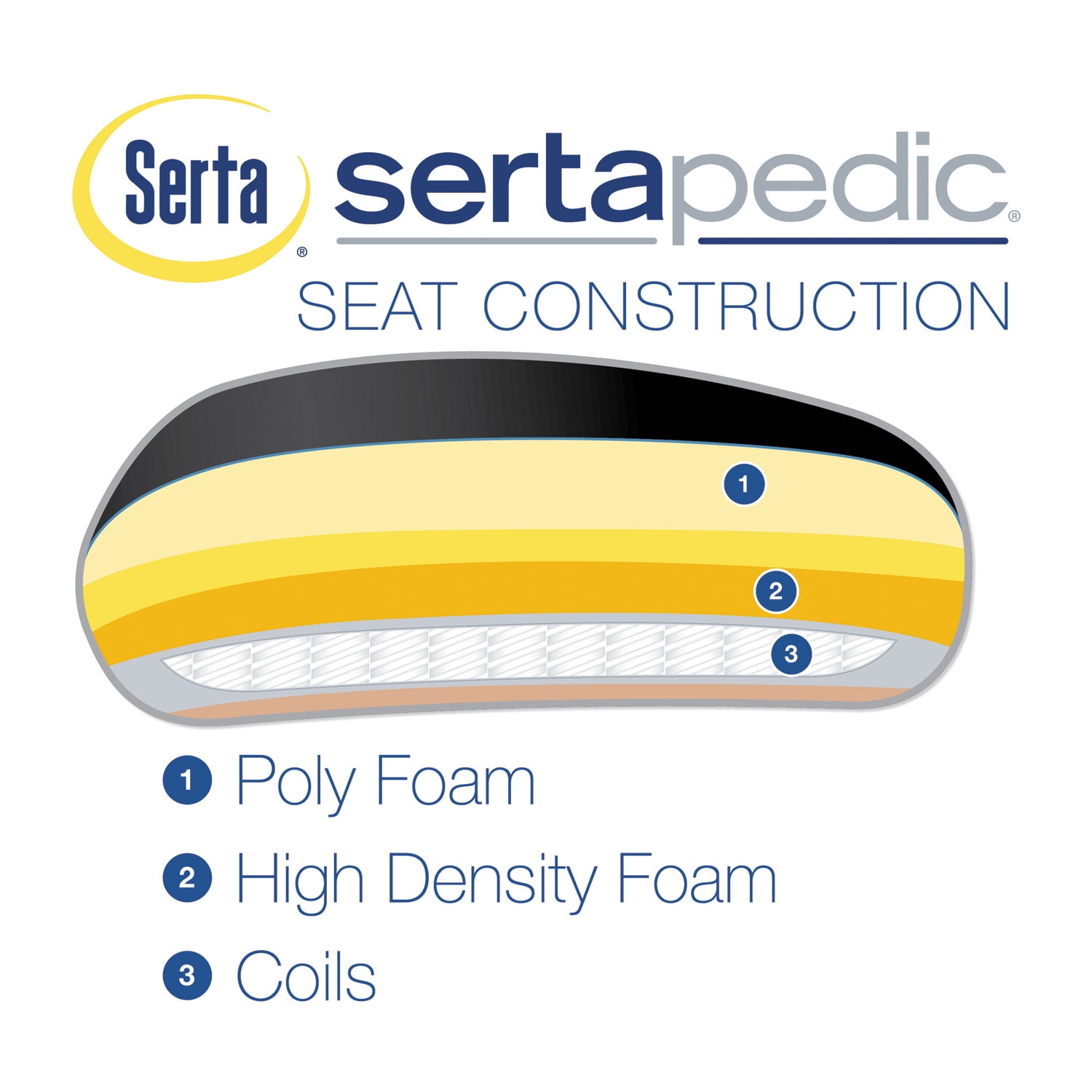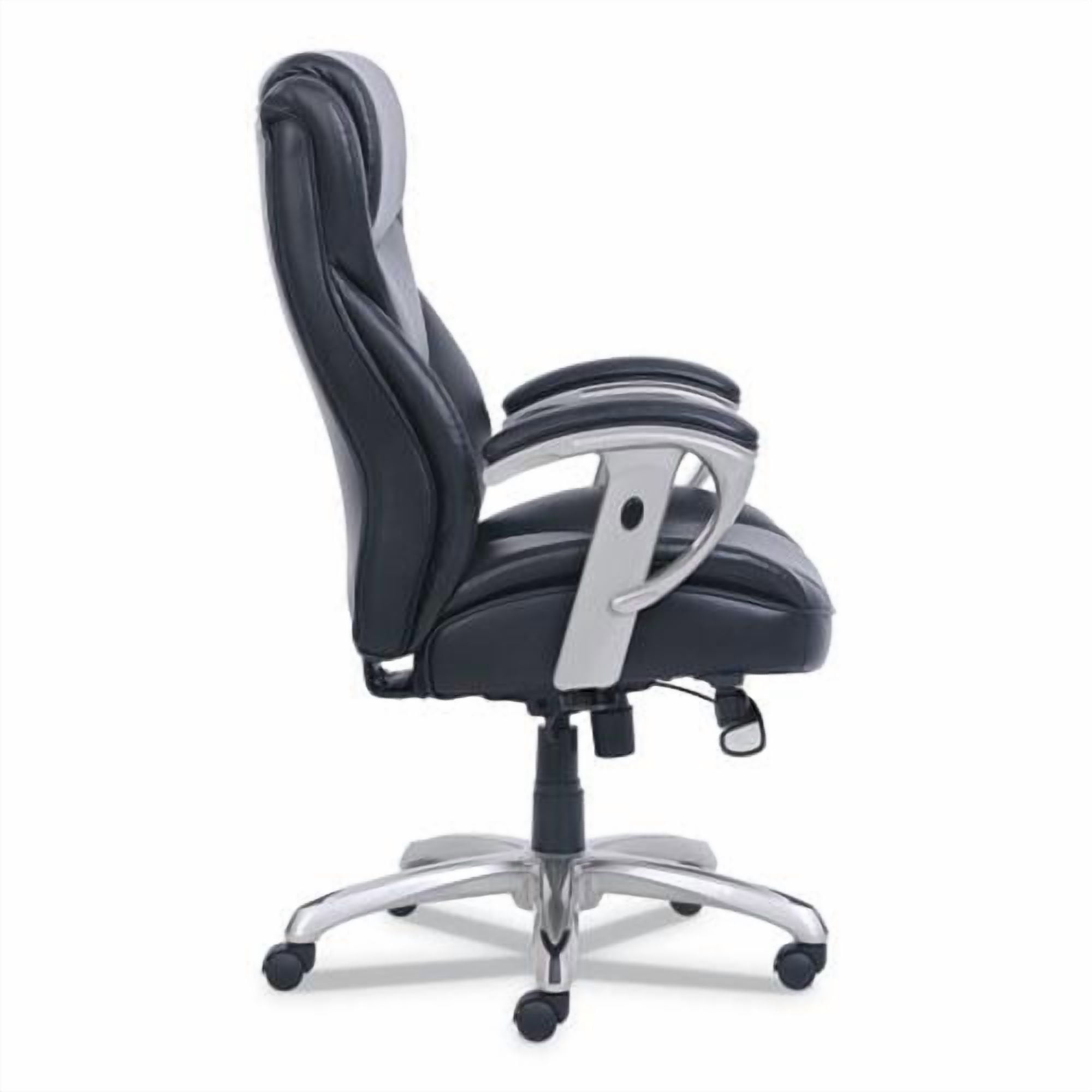 Emerson Big and Tall Task Chair, Supports Up to 400 lb, 19.5″ to 22.5″ Seat Height, Black Seat/Back, Silver Base SertaPedic® ultra comfort foundation with support coils, multi-density foam and premium memory foam for exceptional support and comfort. Premium bonded leather provides enhanced durability and ease of maintenance. Height and width adjustable arms for custom comfort. Easy access seat adjustment controls allow convenient adjustment for seat height and tilt lock out adjustments. Heavy-duty nylon arms and base. Support coils, multi-density foam and premium memory foam for exceptional support and comfort. Premium bonded leather provides enhanced durability and ease of maintenance. Easy access seat adjustment controls allow convenient adjustment for seat height and tilt lock out adjustments. Height and width adjustable arms for custom comfort. Heavy-duty nylon arms and base. Oversized heavy-duty casters allow easier rolling and mobility. – Arm Adjustability: Height, Width – Arm Height From Seat: 5.75″ – Arms Included: Yes – Back Height Maximum: 33.75″ – Back Height Minimum: 30.25″ – Back Width Maximum: 22.75″ – Base/Frame Color: Silver – Base/Frame Material: Nylon – Disclaimer Statement: Casters supplied with this chair are not suitable for all floor types. – Distance Between Arms: 20.75″ to 22.25″ – Global Product Type: Big & Tall Office Chairs – Overall Height Maximum: 47.25″ – Overall Height Minimum: 44.25″ – Overall Width Minimum: 20.75″ – Seat Depth Maximum: 21.5″ – Seat Height Maximum: 22.5″ – Seat Height Minimum: 19.5″ – Seat Width Maximum: 22″ – Weight Capacity: Supports Up to 400 lb – Armrest Color: Black – Armrest Material: Bonded Leather – Seat Color: Black – Compliance Standards: Meets or Exceeds BIFMA Standards – Asynchronous Control: No – Back Height Adjustment: No – Dual-Action Tilt: No – Dual-Clutch Posture Control: No – Integral Lumbar Support: No – Knee Tilt: No – Multi-Task Control: No – Pneumatic Seat Height Adjustment: Yes – Posture Lock: No – Seat Glide Mechanism: No – Synchronized Knee Tilt: No – Tilt Tension/Tilt Lock: Yes – Variable Synchro-Tilt: No – Back Color: Black – Arm Type: T-Bar – Color Family: Black – Item Depth: 29.5″ – Item Width: 27.75″ – Recommended Application Area: Executive & Management, General Office & Task, Specialty – Seat Surface Material: Bonded Leather – Seat Surface Material Family: Bonded Leather – Caster/Glide Details: Five Hooded Dual-Wheel Casters – Back Surface Material: Bonded Leather – Back Surface Material Family: Bonded Leather – Product Biodegradability in Days: 0 – Product Biodegradability Indicator: N – Product Compostability Indicator: N