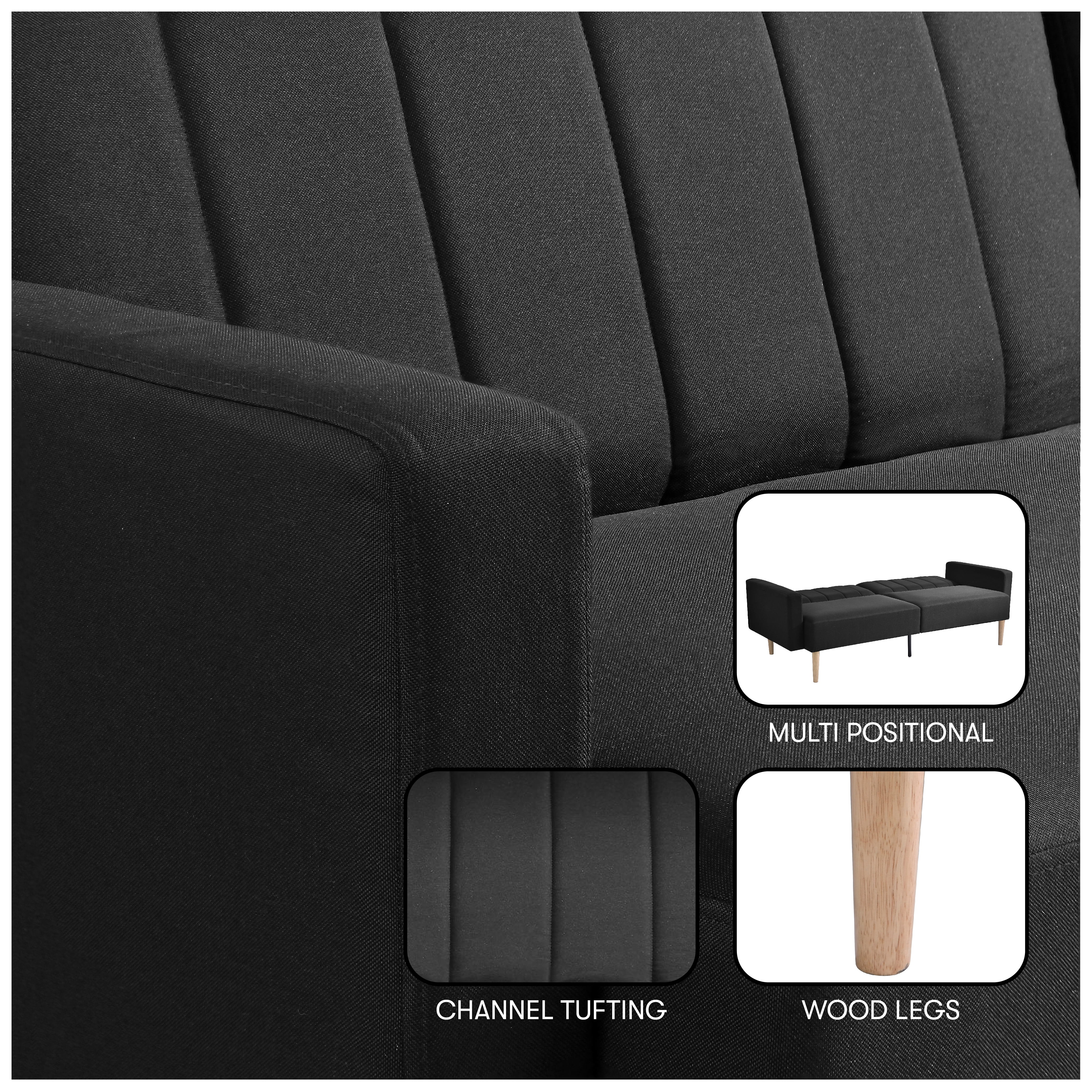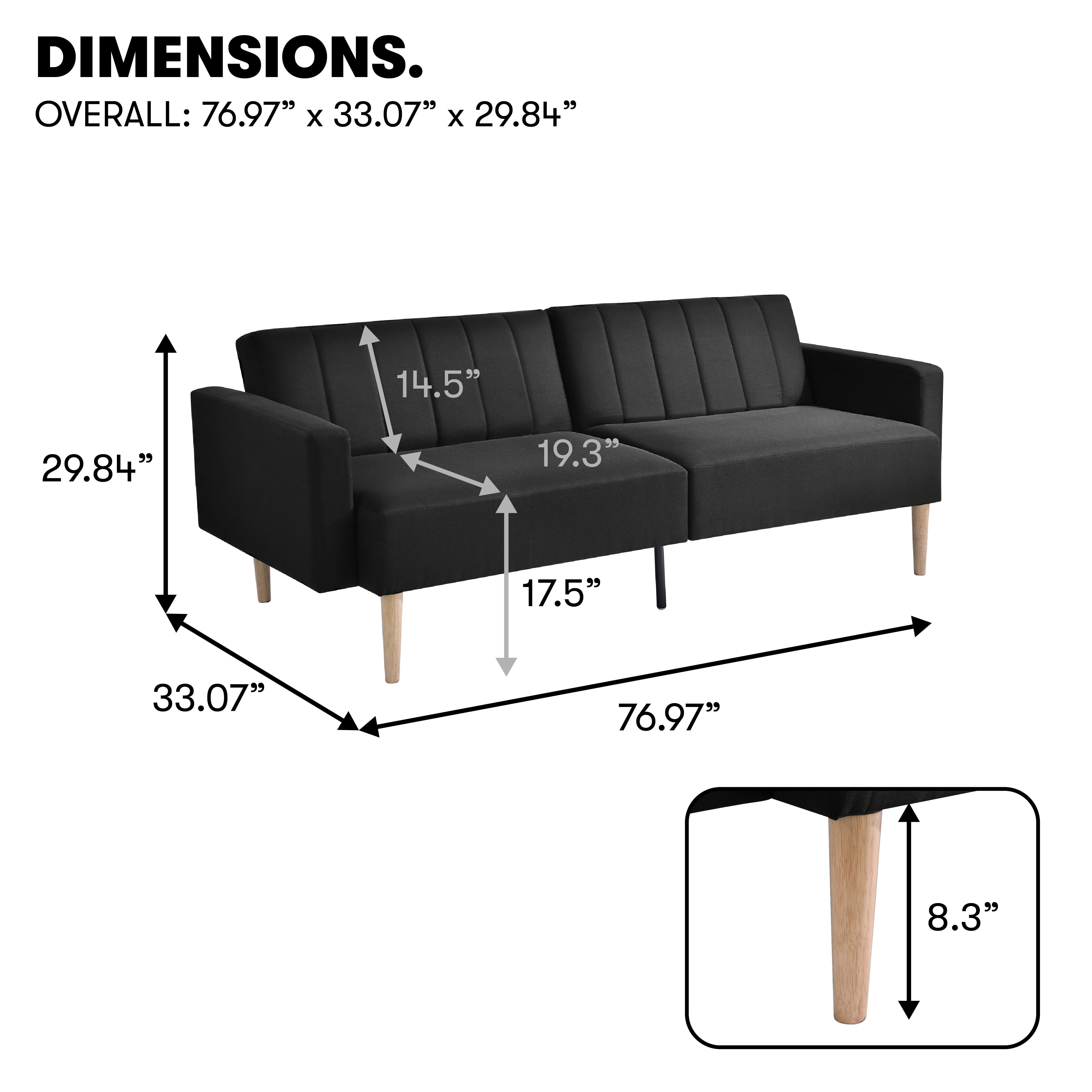 Convertible Functionality: Effortlessly transition from a stylish sofa to a comfortable bed, providing versatile functionality to suit your living space’s needs Vertical Channel Tufting: Enhance your decor with a touch of modern elegance. The vertical channel tufting on the backrest not only adds a contemporary flair but also contributes to the sofa’s overall comfort High Density Foam and Dream Coils: The high-density foam, coupled with the innovative Dream Coils, ensures a supportive and cozy seating experience, making your relaxation moments truly enjoyable. Sturdy Construction: Designed for lasting durability, the sofa features natural wooden legs and a strategically placed metal support leg in the middle. This construction not only adds to its aesthetic appeal but also provides stability for years to come. Revolutionary Simple Assembly: Experience the convenience of quick and hassle-free setup. The revolutionary assembly process makes putting together your sofa a breeze, letting you enjoy its benefits in no time.
