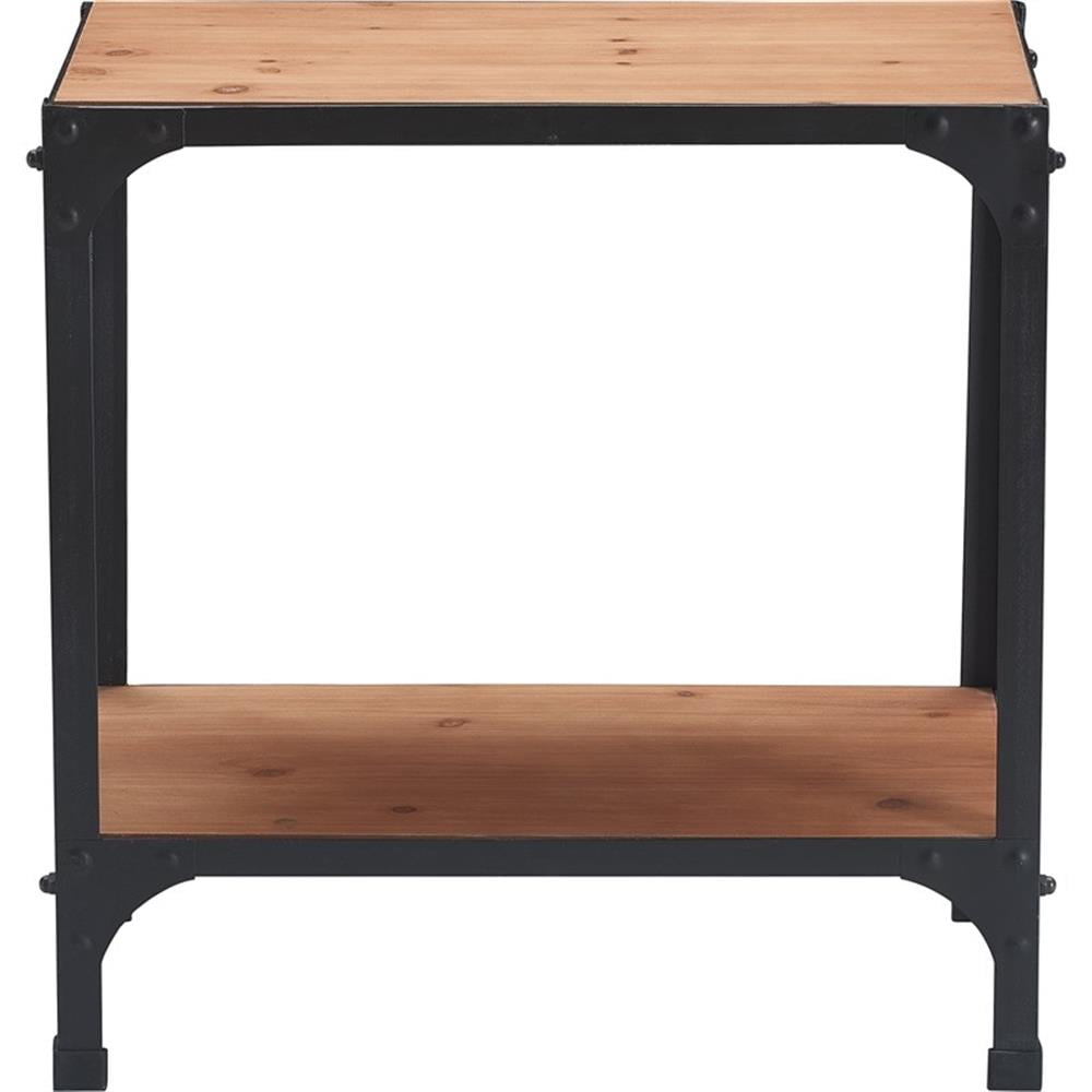 The Serta Overland Side Table brings valuable storage space to rooms of any size. This table has a large area for storage on the bottom shelf but is designed with a small footprint, allowing for easy placement in smaller rooms. In addition to the space on the bottom shelf that can be used to store taller items, the rectangular table top provides space for room accent pieces including framed photographs, a favorite book or a table lamp. This narrow side table has a modern farmhouse style that is somewhat neutral, allowing for placement in any room design style and the rustic wood grain shelves and black metal frame will complement most room colors. Due to natural materials, color variation and unique wood details are to be expected and celebrated. Features: If you live in a small apartment and need extra storage, this side table is a stylish and space-saving solution American classic style that can be used in many room designs Ample storage is available on the bottom shelf and the table top has room for a table lamp Specifications: Product Weight: 19.4