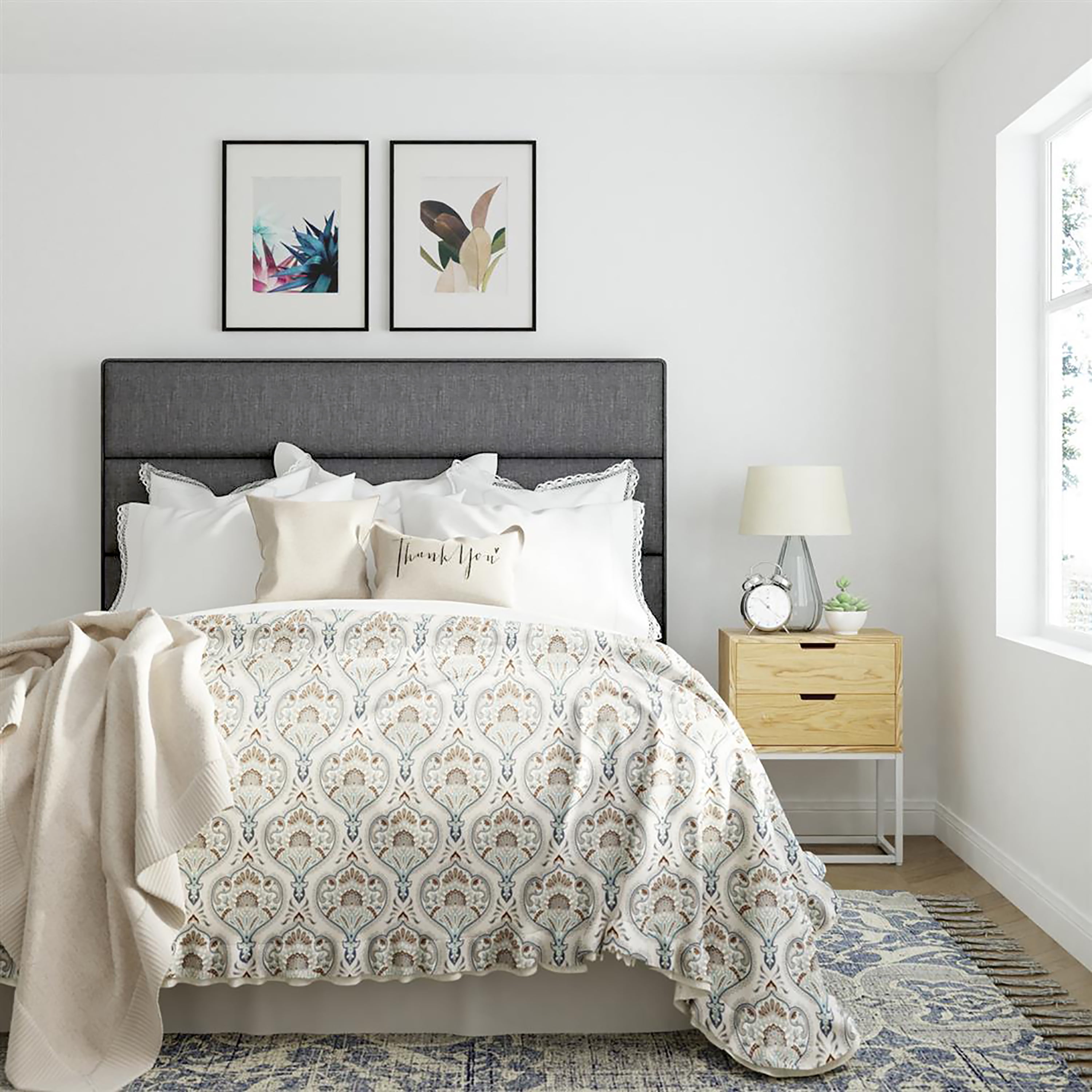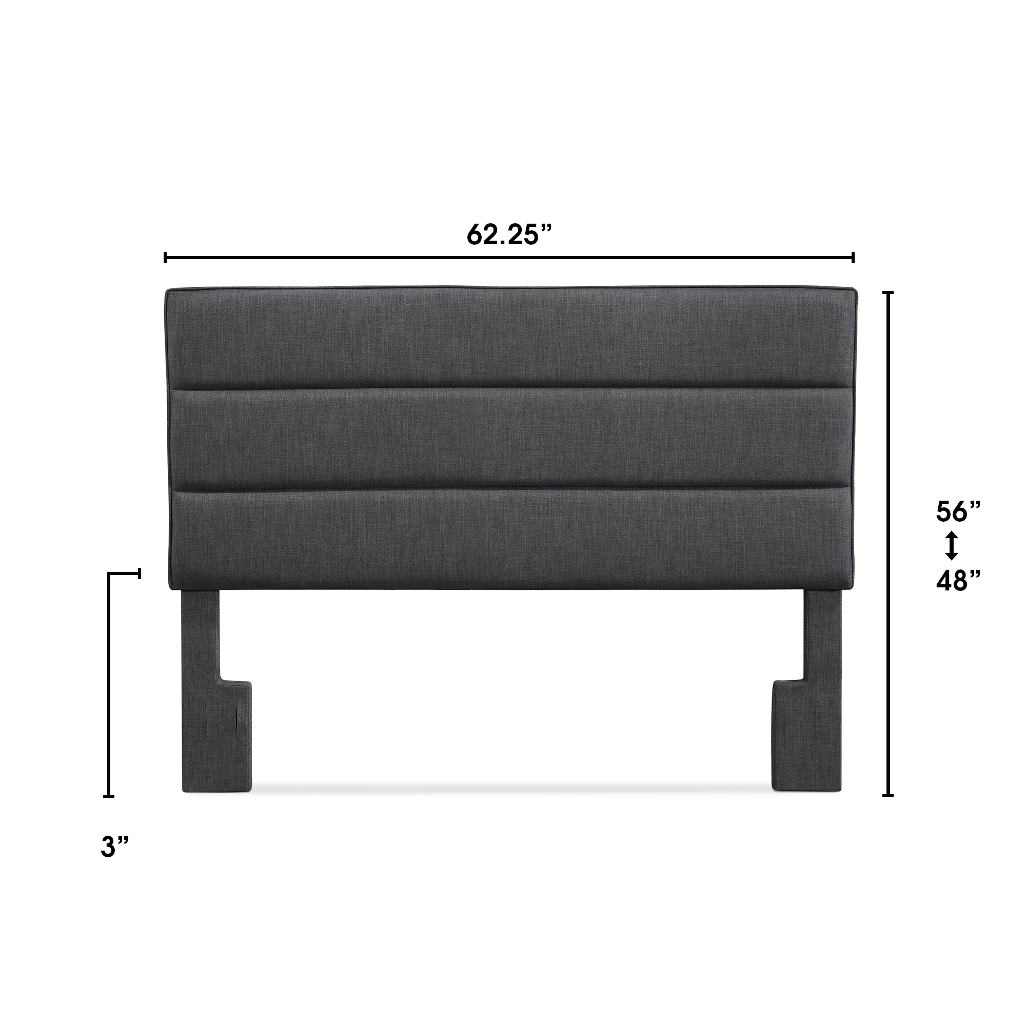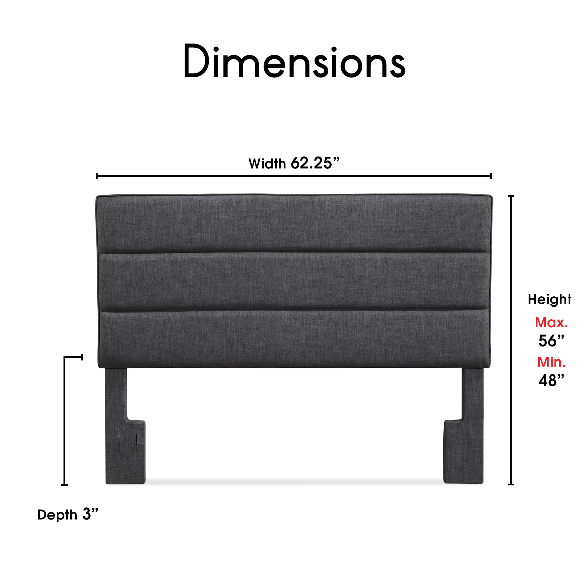 This modern headboard gives any bedroom a clean, tailored look Horizontal cushioned channels are stylish alternatives to traditional tufting Adjustable height can comfortably accommodate mattress size and box springs Linen-textured fabric with padded panels help maximize comfort Streamlined profile won’t overpower small bedrooms Easy Assembly Required 78.25-inch width x 3-inch depth x 56 to 48-inch height