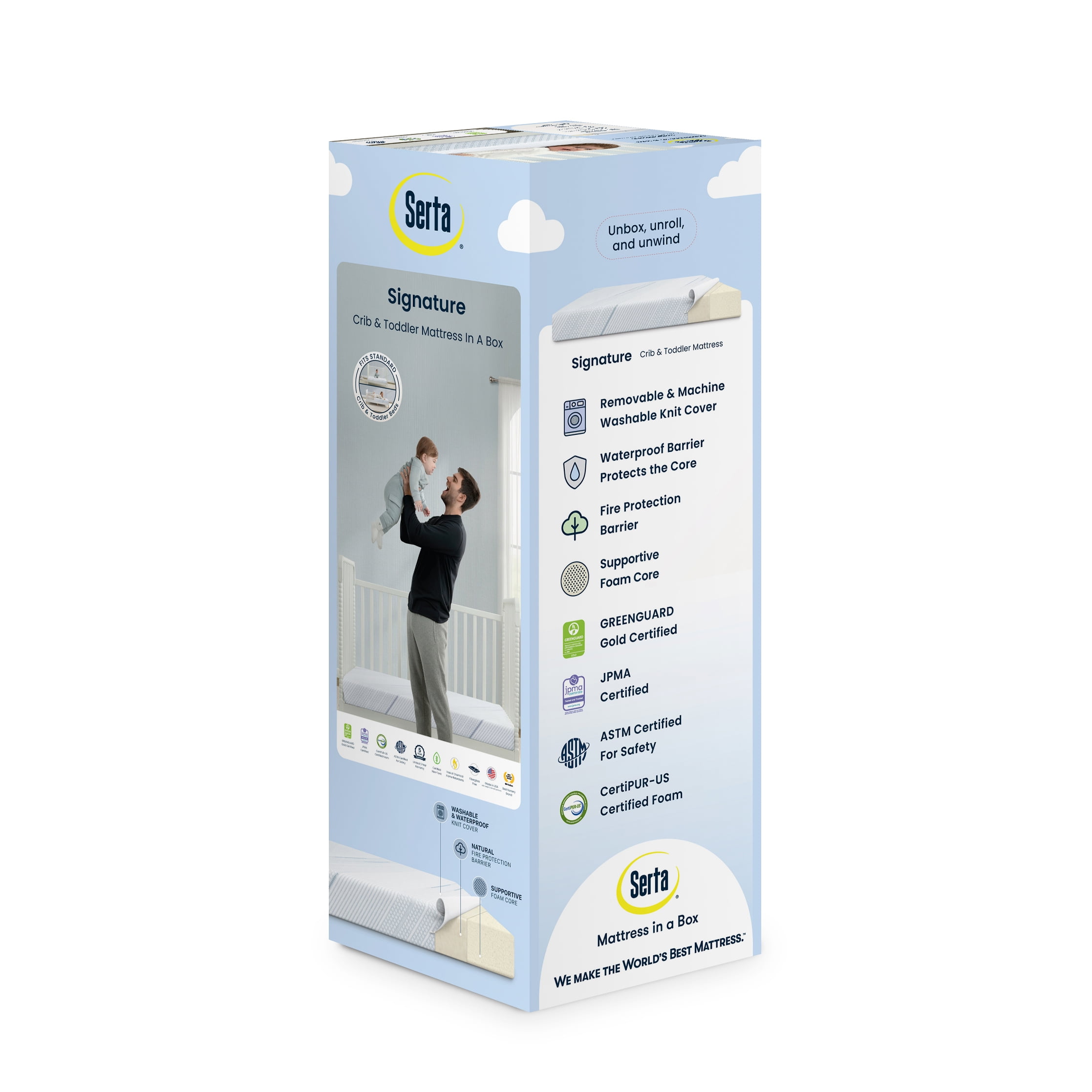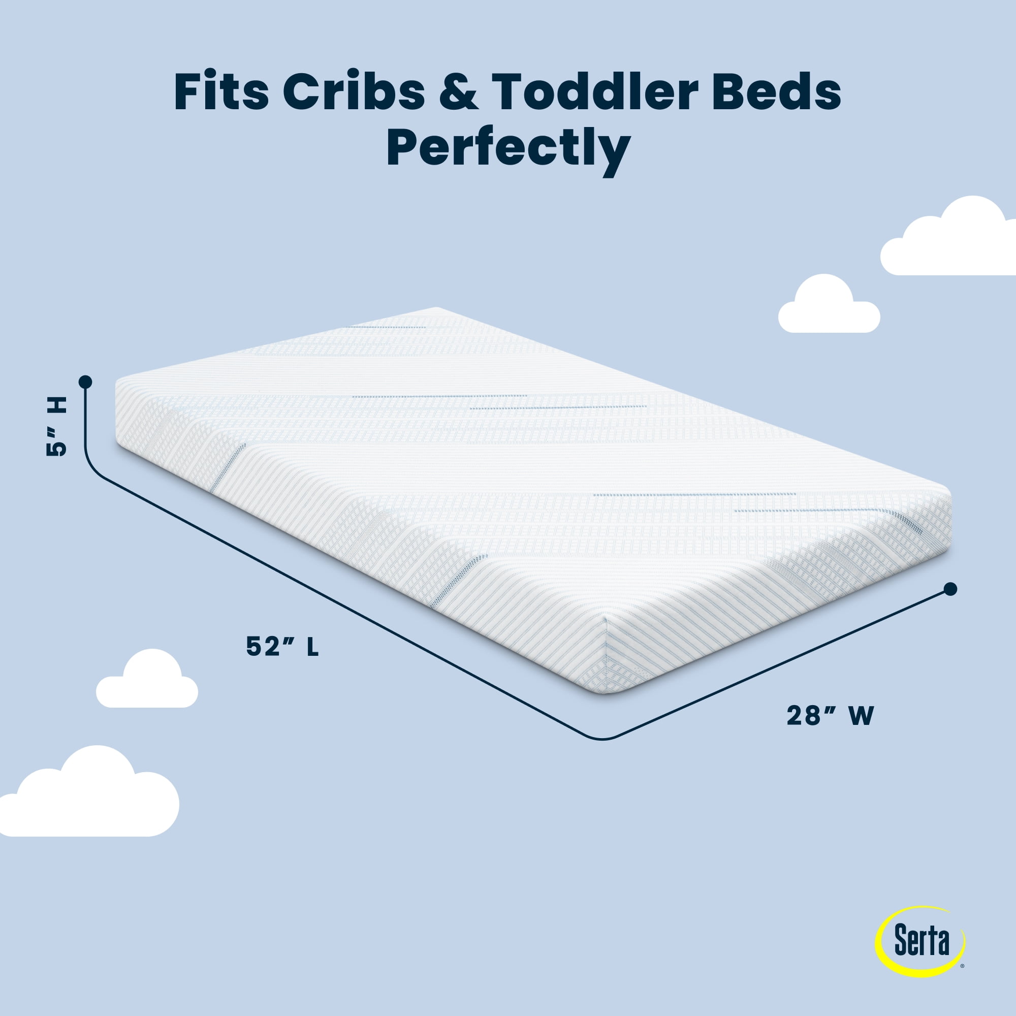SUPPORTIVE FOAM CORE: Foam core is made with plant-based soy and delivers the perfect level of comfort and firmness for infant and toddlers BACK BY WARRANTY: Mattress is backed by a 5-year limited warranty CERTIFIED SAFE: GREENGUARD Gold certified for indoor air quality and low chemical emissions to help create a healthier sleep space | We use CertiPUR-US approved foams without PBDE flame retardants, mercury, lead & other heavy metals | JPMA certified This mattress is free from added toxic fire retardants, lead and phthalates | Tested to meet or exceed all applicable JPMA, CPSIA and ASTM safety testing standards | 100% cotton fire protection meets or exceeds flammability standards MATTRESS-IN-A-BOX: Mattress ships compressed in a lightweight box for your convenience | Open and unroll mattress within 2 weeks of purchase, may take up 48 hours to fully expand | Zipper cover is not intended to be removed—zip shut after expansion FITS STANDARD FULL-SIZE CRIBS & TODDLER BEDS: This mattress is designed to fit any standard full-size crib or toddler bed | Size: 52”L x 27.5”W x 5”H