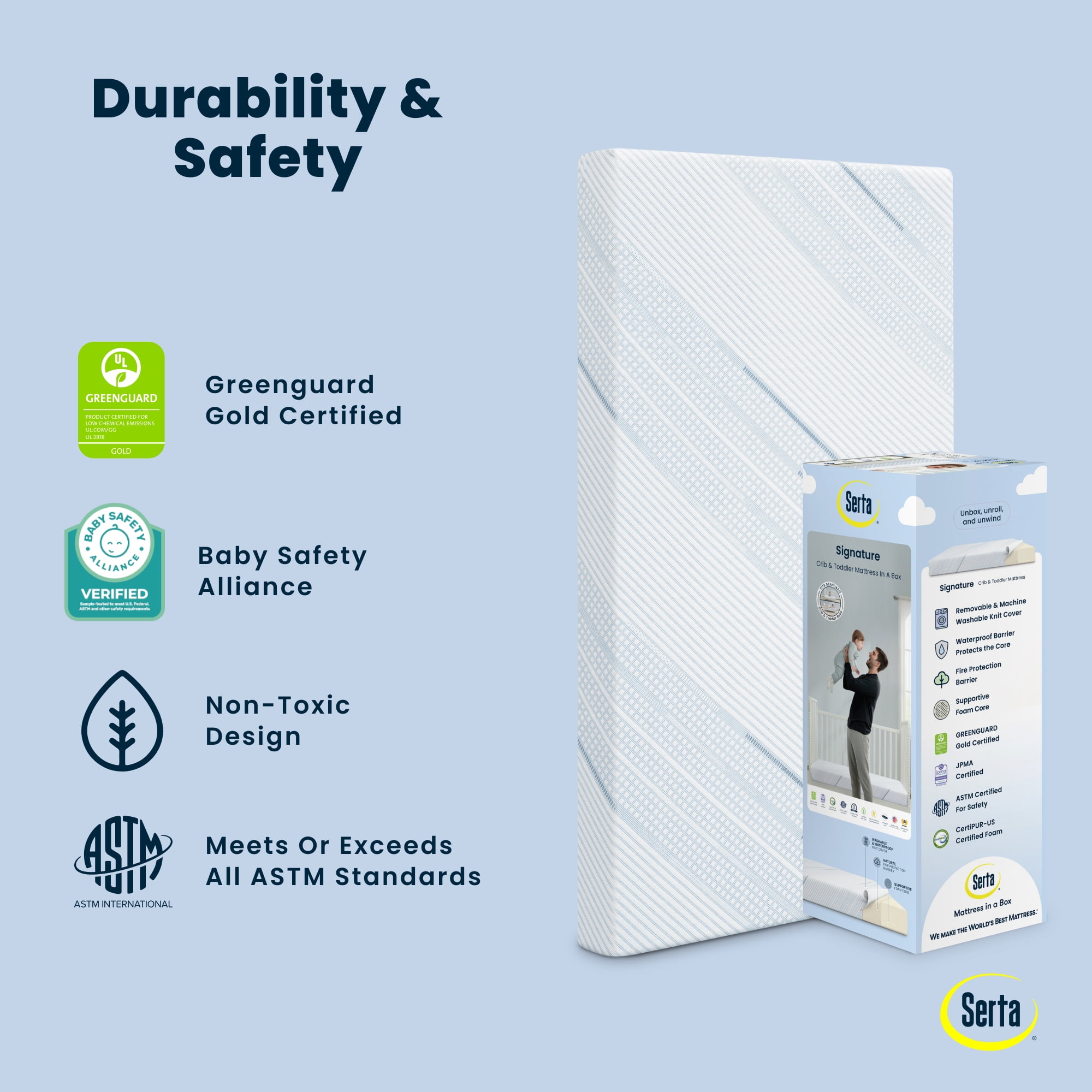 Serta Signature Dual Sided 5″ Crib /Toddler Mattress in a Box, GREENGUARD Gold, Firm Plant-Based Foam
