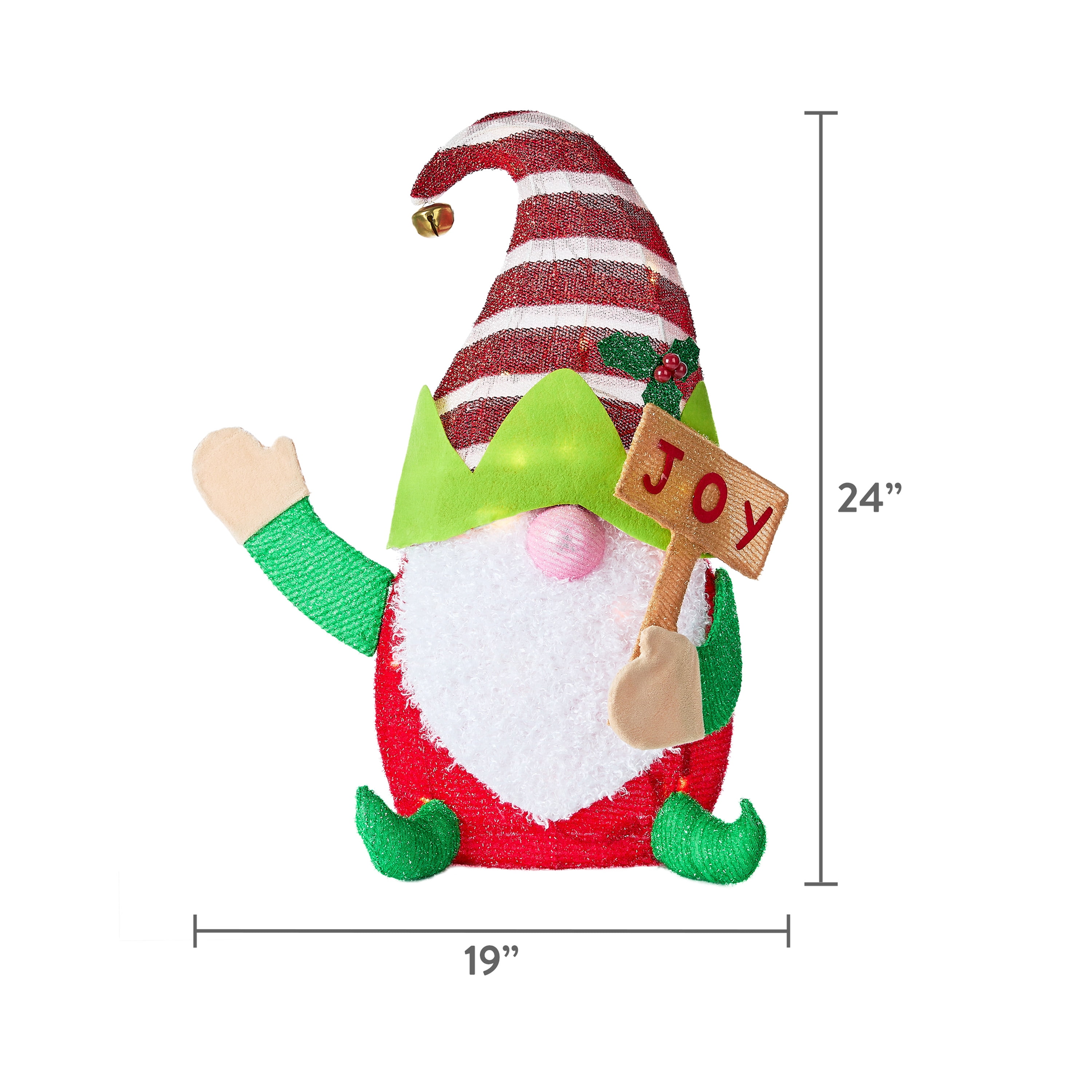 Set of 2 tinsel Christmas gnomes Each gnome measures 24″ tall Set includes 40 warm white LED bulbs that come pre-attached to the frame Indoor and outdoor use Easy to assemble Collapsible for easy storage Metal stakes included 30″ lead wire Perfect for porches, yards, hallways, and more Customer service: (800) 833-3390 For product parts contact customer service at 1-800-833-3390 Monday – Friday 10:30am – 4:30pm EST