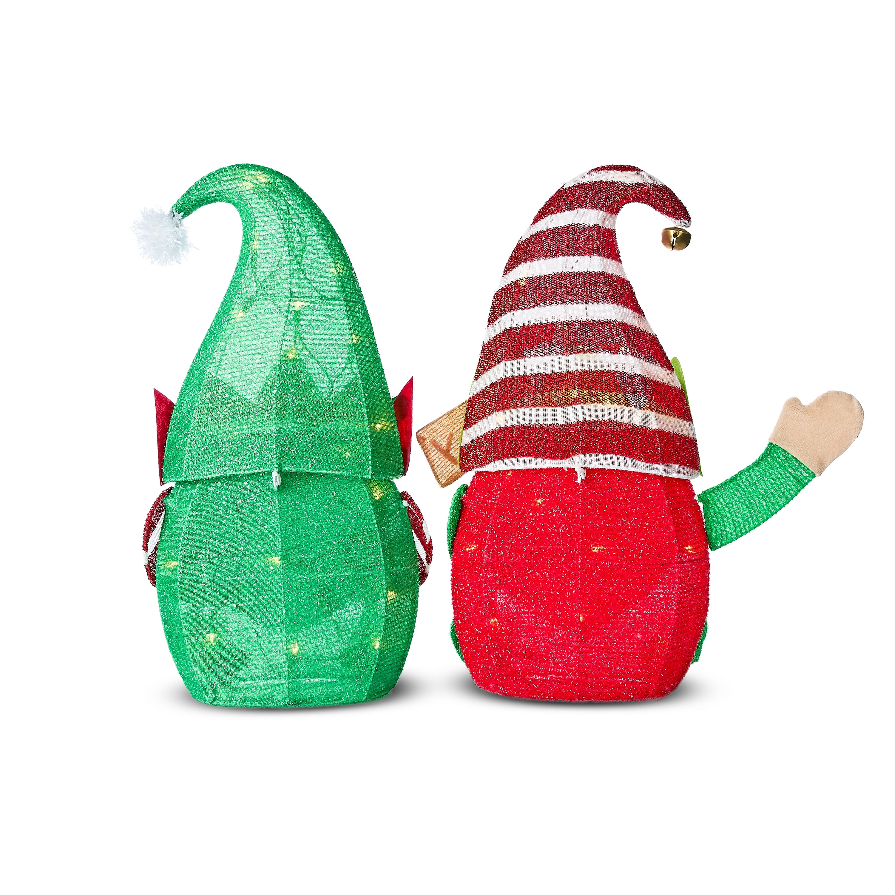 Add some whimsical holiday cheer to your house, porch, or yard with the charming Holiday Time Set of 2 24″ Light-up Tinsel Christmas Gnomes with 40 LED Lights. Recommended for both indoor and outdoor use, these cute Christmas gnomes stand 24 inches tall and come decked out with festive clothes and hats. These Christmas gnomes are easy to assemble and include 40 warm white LED lights pre-attached to the frame. Metal stakes are included for easy setup in your yard and LED bulbs ensure that these Christmas gnomes glow brightly for many seasons to come. After the holiday season, the structures are collapsible for easy storage. Pair with other Holiday Time decorations to bring fun, sparkle, and shine to your holiday season. Bring home the Holiday Time Set of 2 24″ Light-up Tinsel Christmas Gnomes with 40 LED Lights.