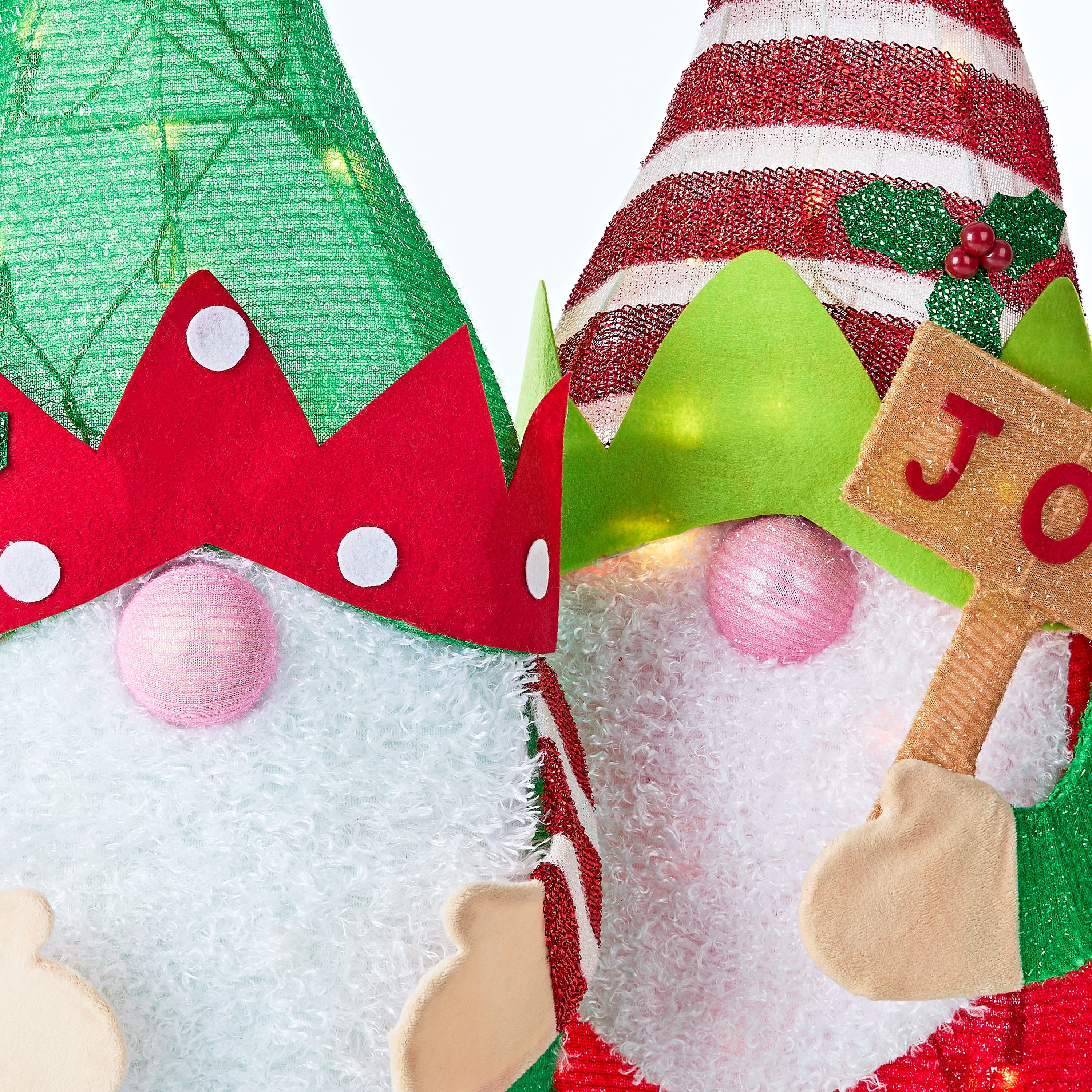Set of 2 24″ Light Up Tinsel Christmas Gnomes with 40 LED Lights; Holiday Time
