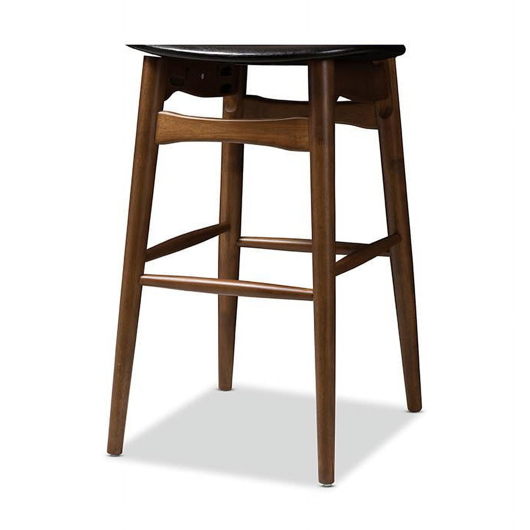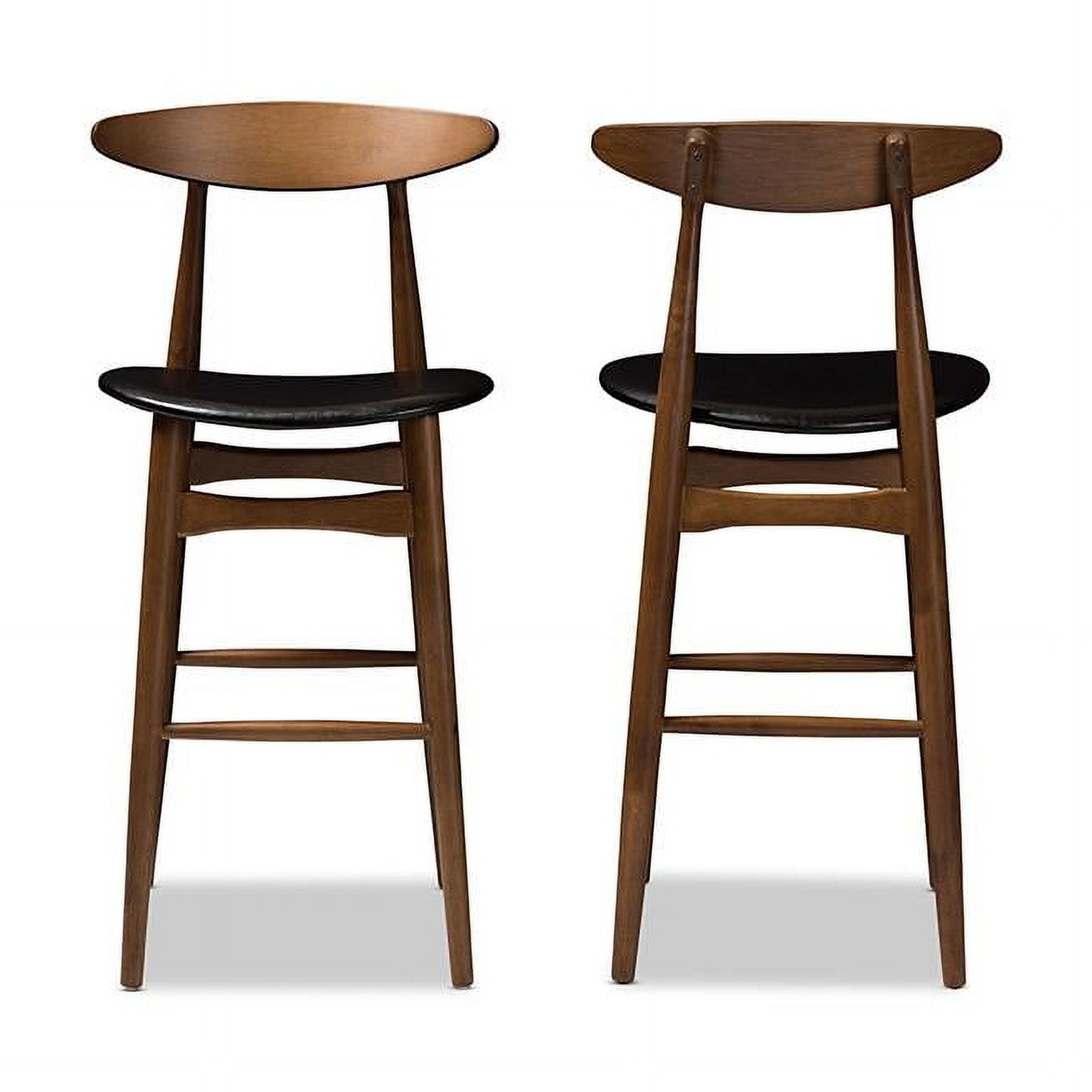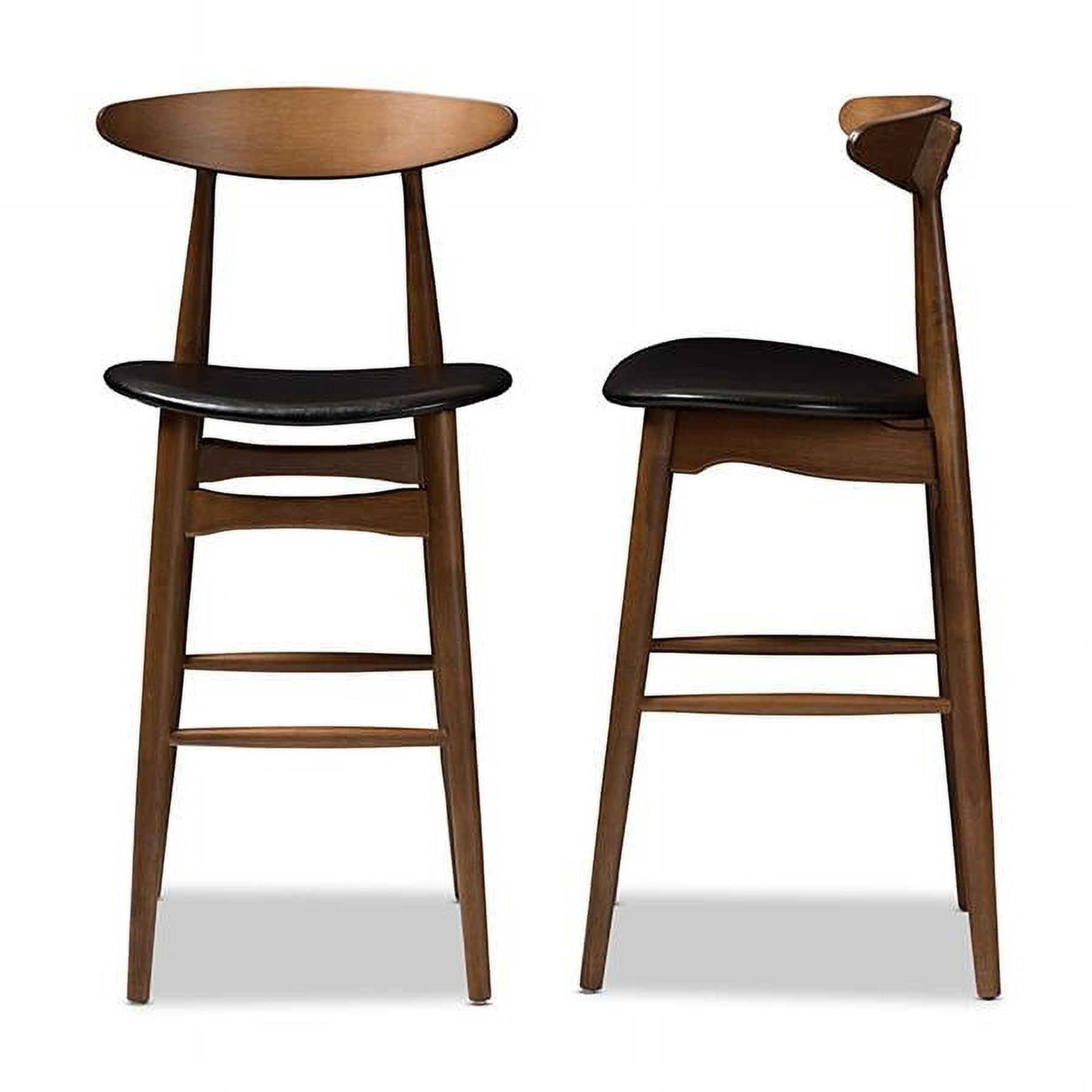 Set of 2 Baxton Studio Flora Mid-Century Modern Black Faux Leather Upholstered Walnut Finished Bar Stool
