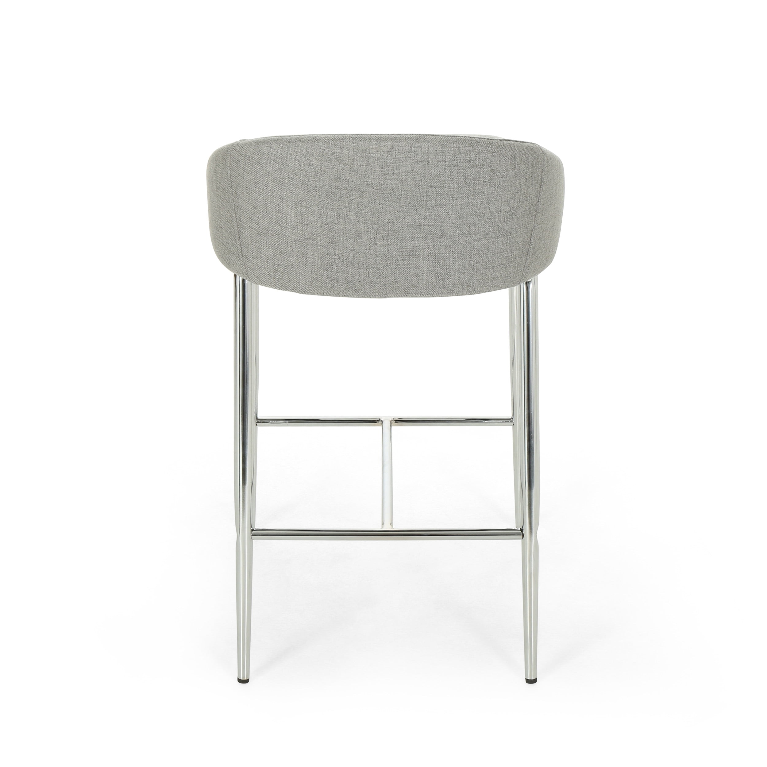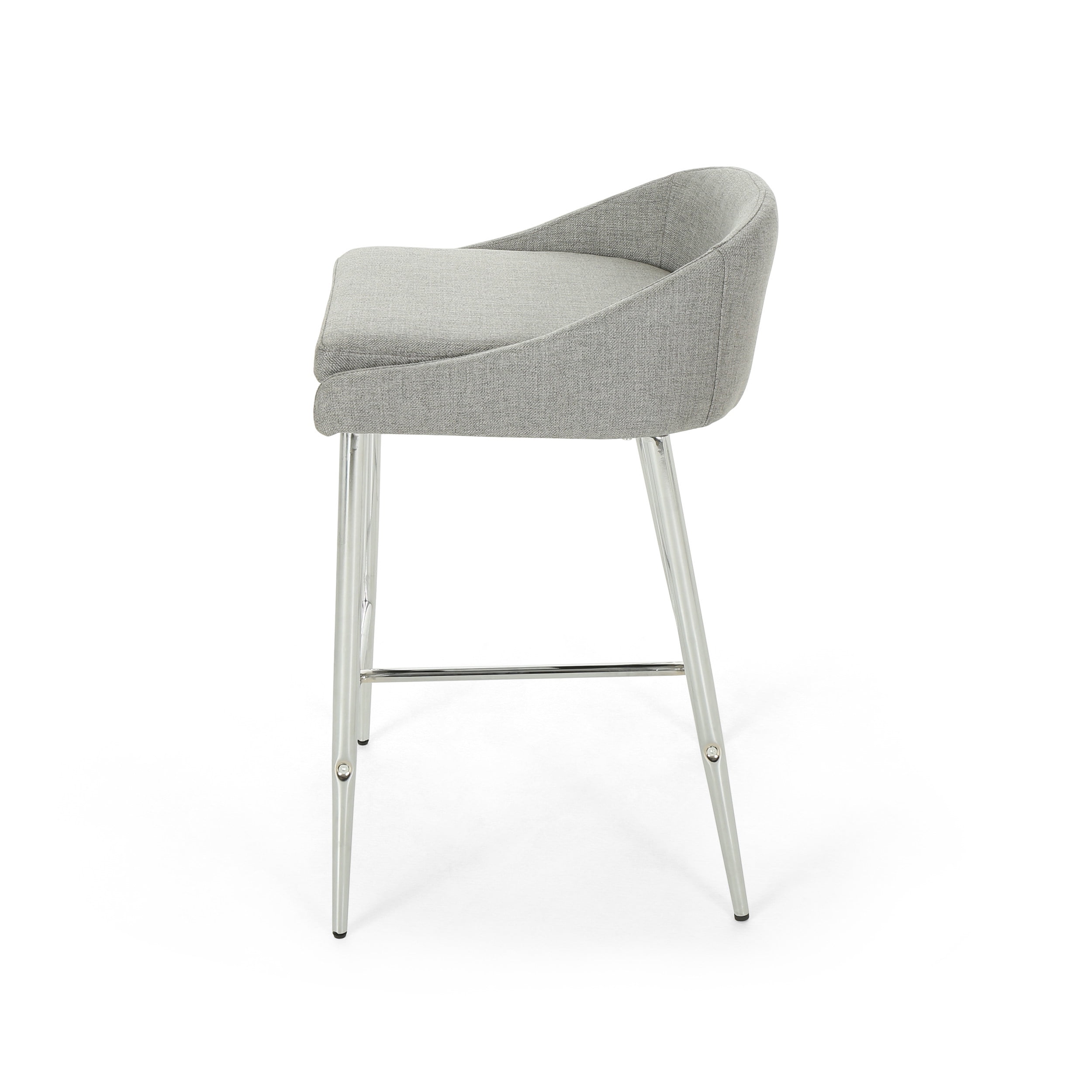Includes: Two (2) Counter Stools Leg Material: Iron Upholstery Material: Fabric Frame Material: Manufactured Wood Fabric Composition: 100% Polyester Multiple Fabric Color Options Leg Finish: Chrome Some Assembly Required Product Dimensions: 20.00 inches deep x 19.25 inches wide x 30.50 inches high Seat Dimensions: 16.75 inches deep x 15.25 inches wide x 26.00 inches high