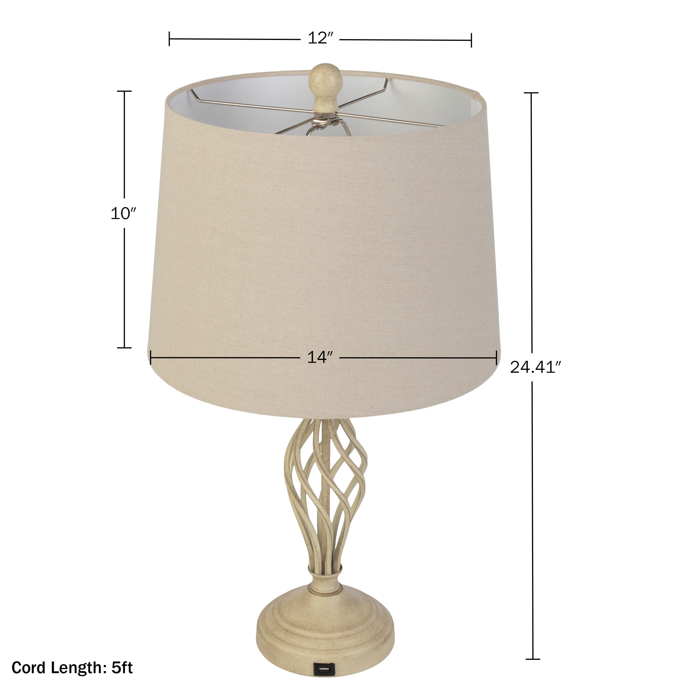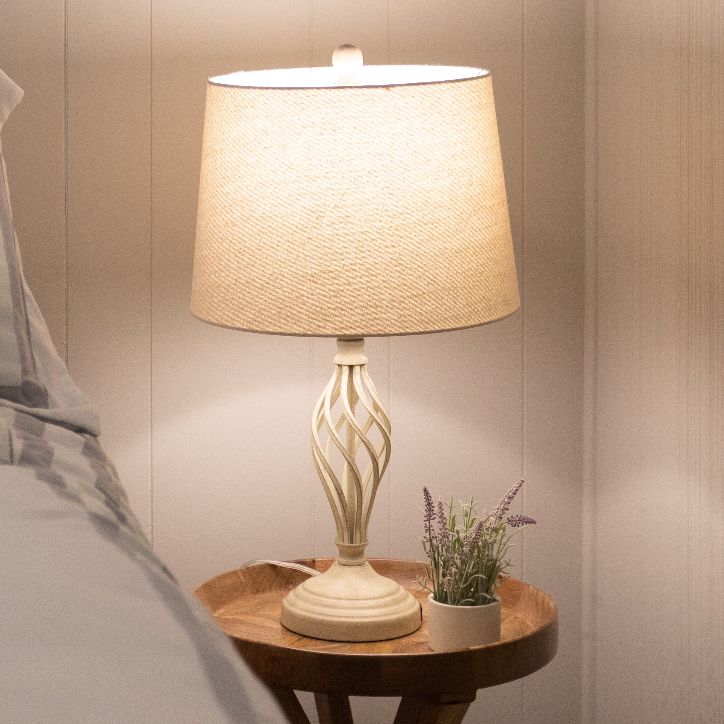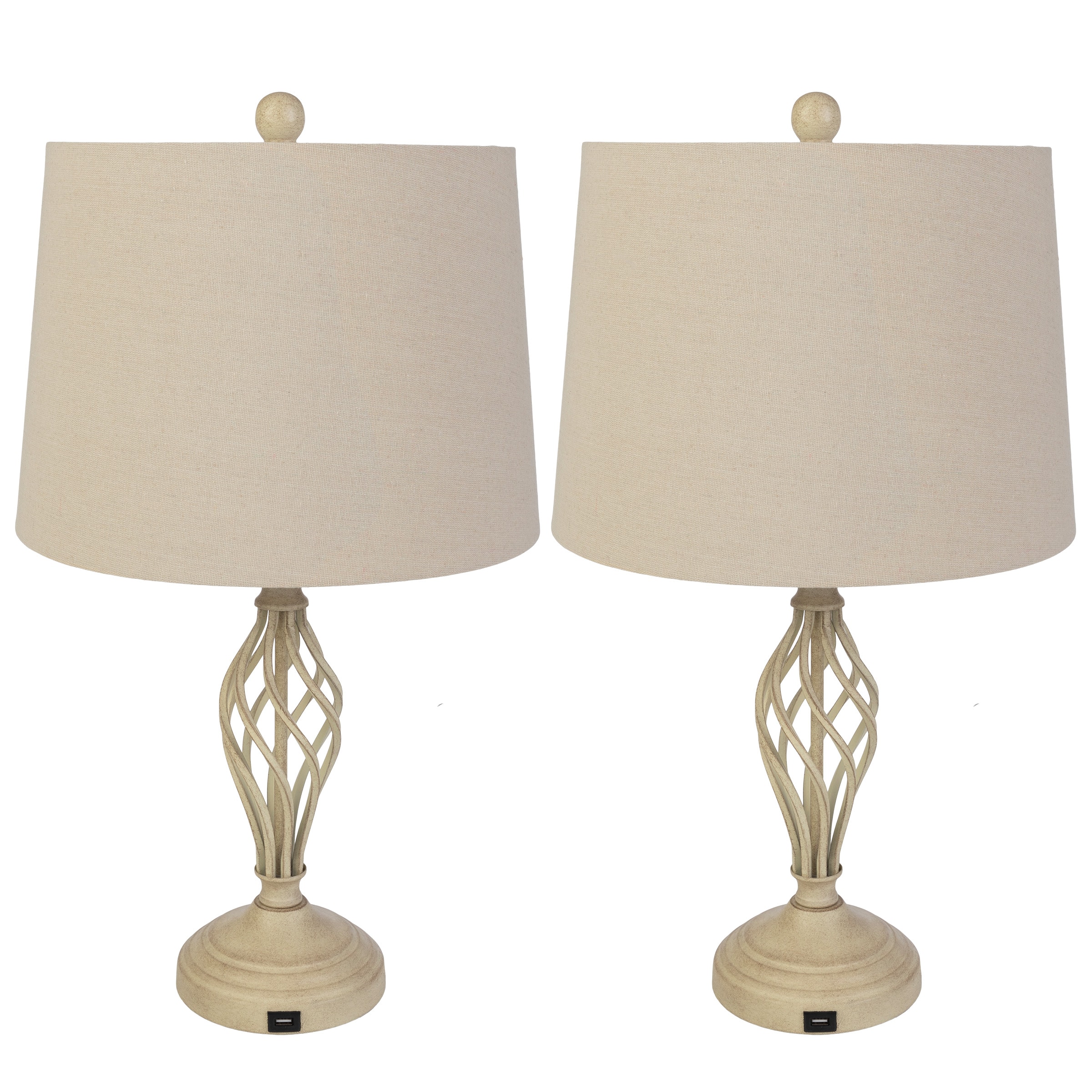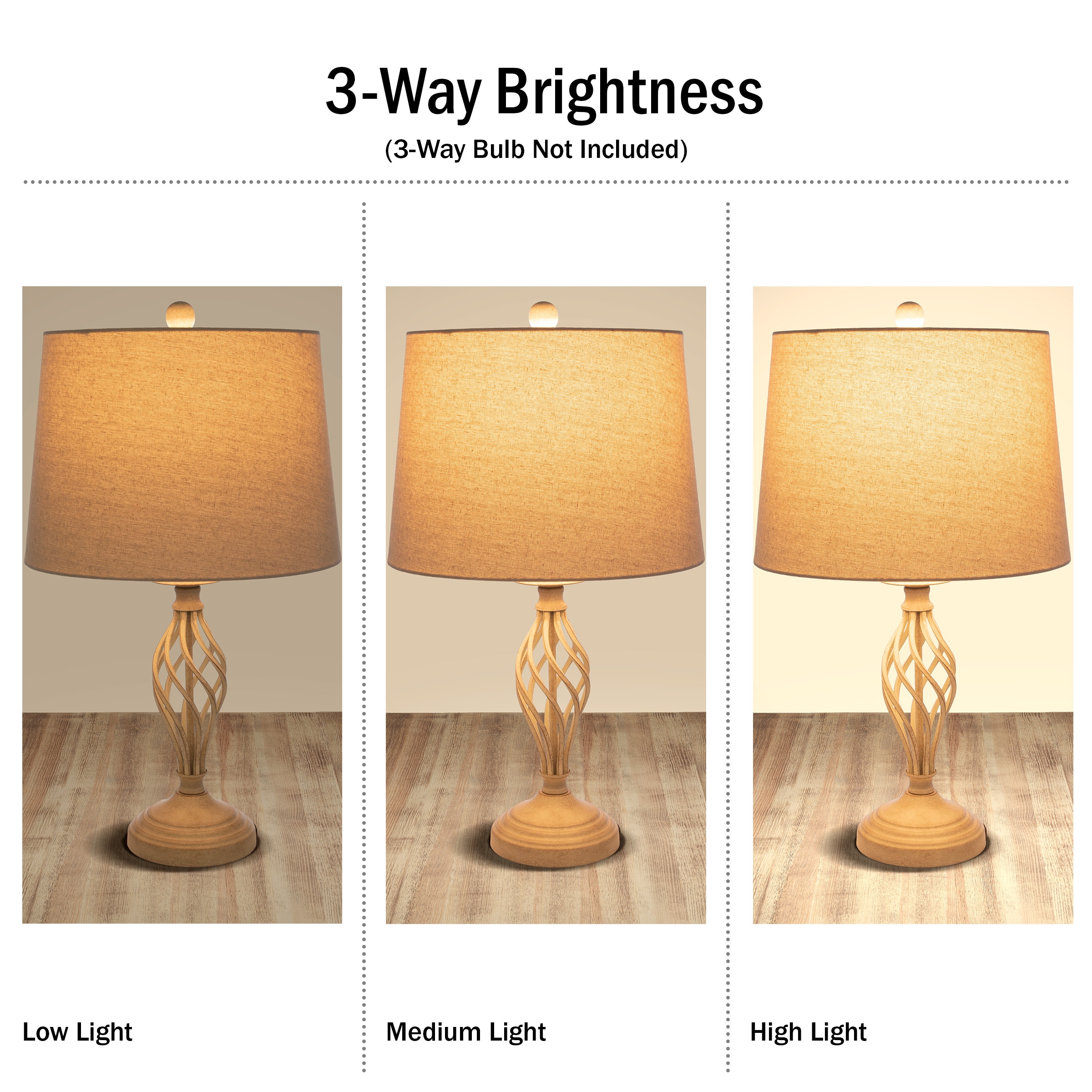 Add some extra lighting to your living room, bedroom, entryway, or office with the Table Lamps for Living Room Set of 2 by Lavish Home. Each desk lamp comes equipped with an energy-efficient 9-Watt LED light bulb and features 3 different brightness modes (Note: a separate 3-way bulb must be purchased to use the different settings). Made of durable metal with USB charging ports, these lamps for living room feature a spiral cage design, ideal for placing separately on end tables, in different rooms, or as a matching pair on bedroom nightstands.