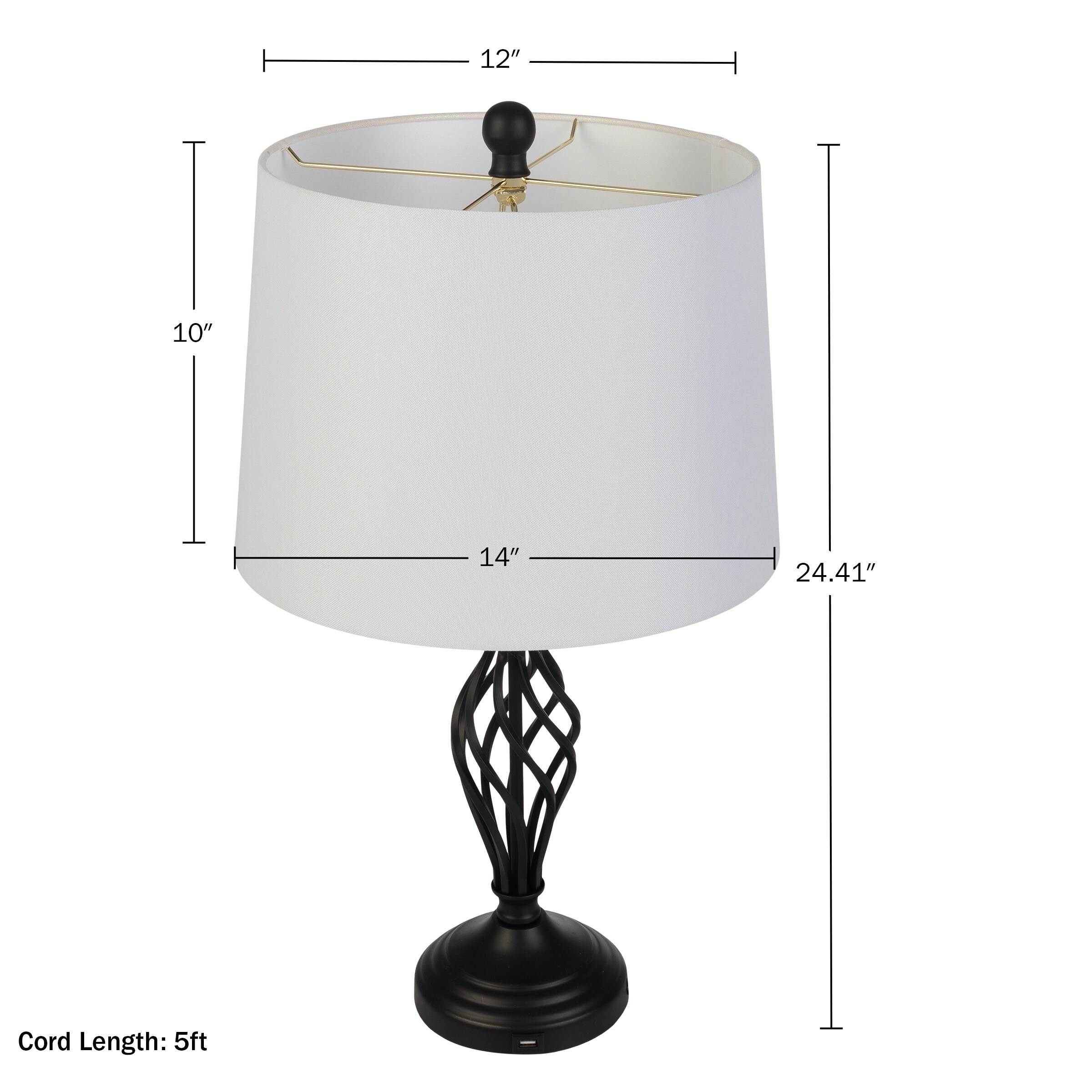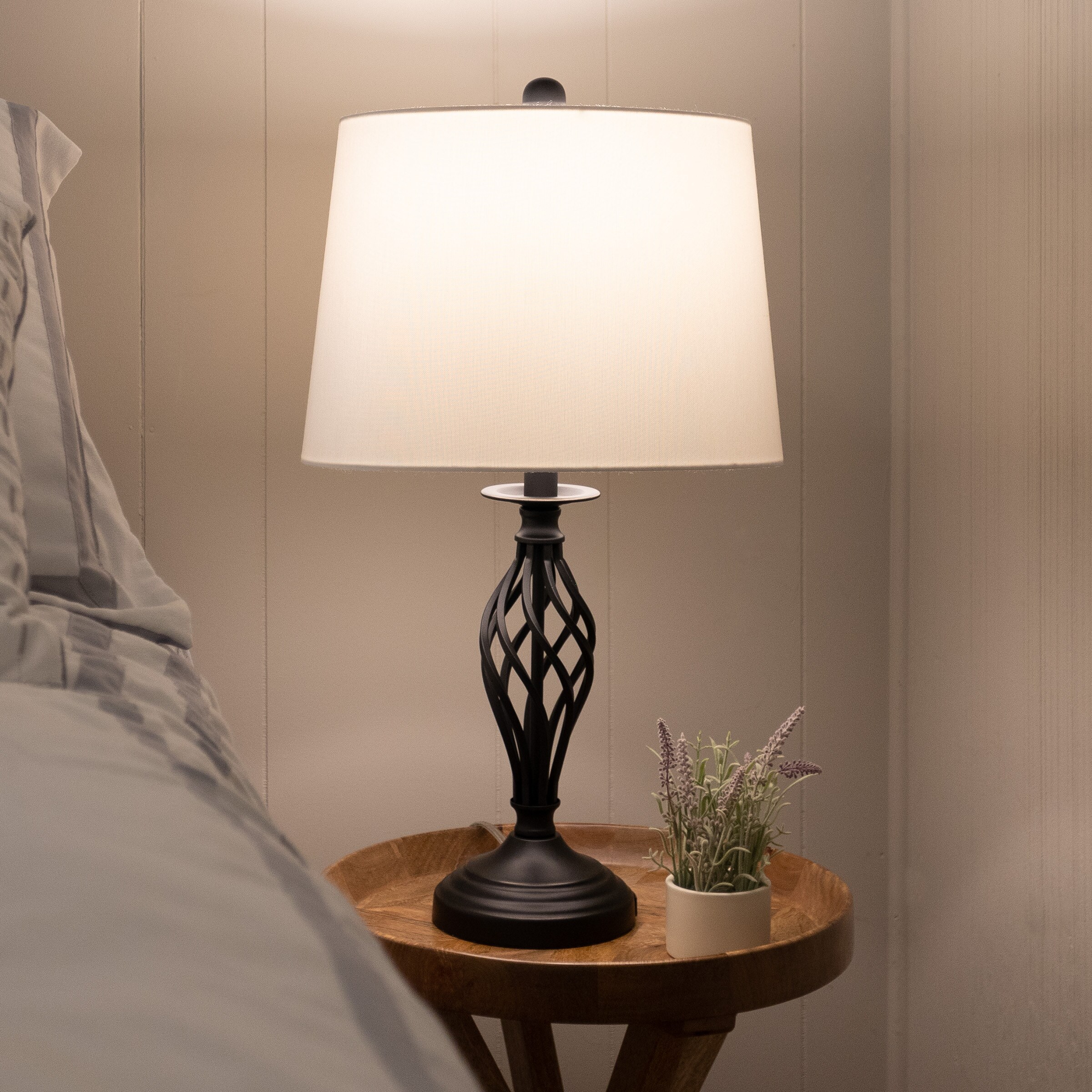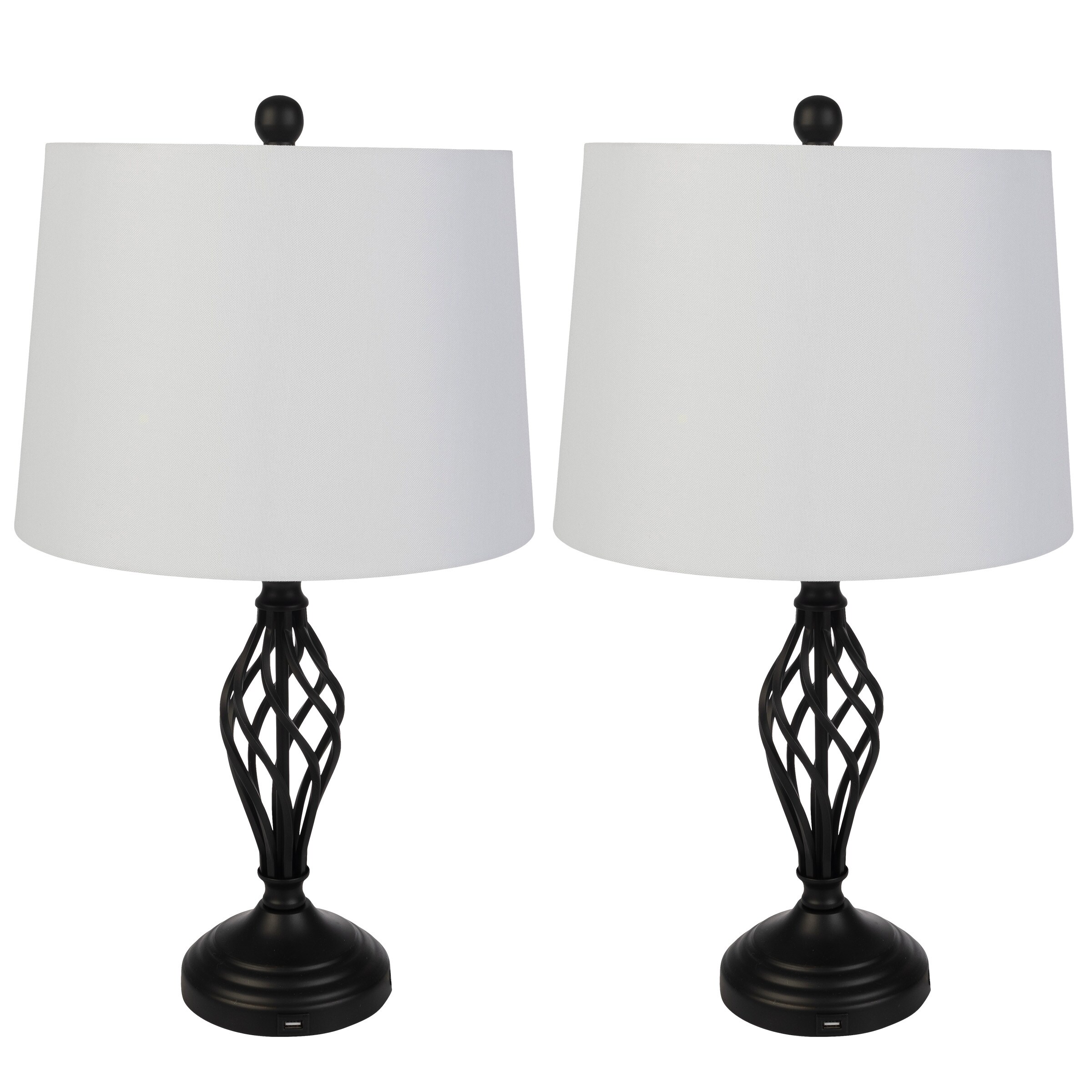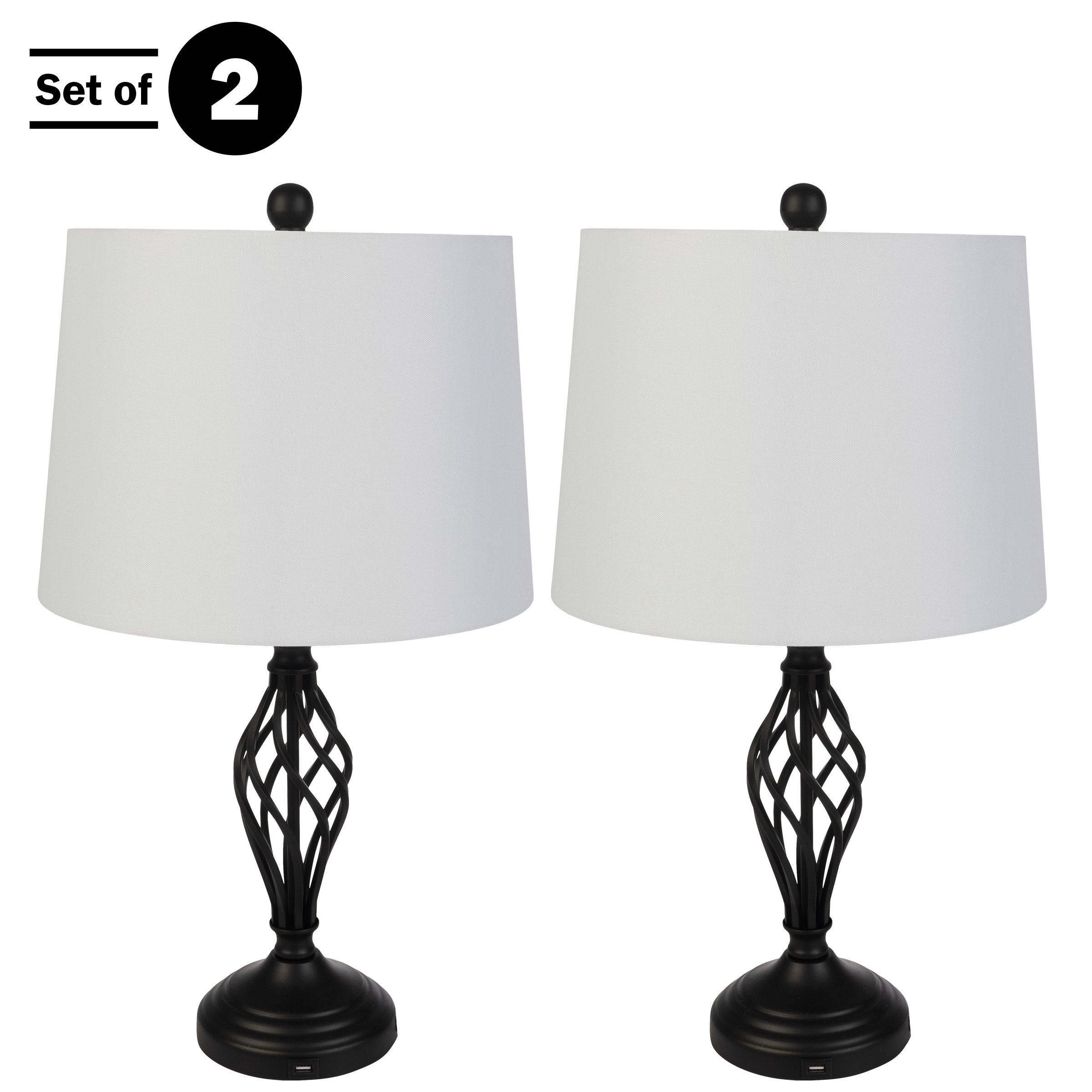 Add some extra lighting to your living room, bedroom, entryway, or office with the Table Lamps for Living Room Set of 2 by Lavish Home. Each desk lamp comes equipped with an energy-efficient 9-Watt LED light bulb and features 3 different brightness modes (Note: a separate 3-way bulb must be purchased to use the different settings). Made of durable metal with USB charging ports, these lamps for living room feature a spiral cage design, ideal for placing separately on end tables, in different rooms, or as a matching pair on bedroom nightstands.