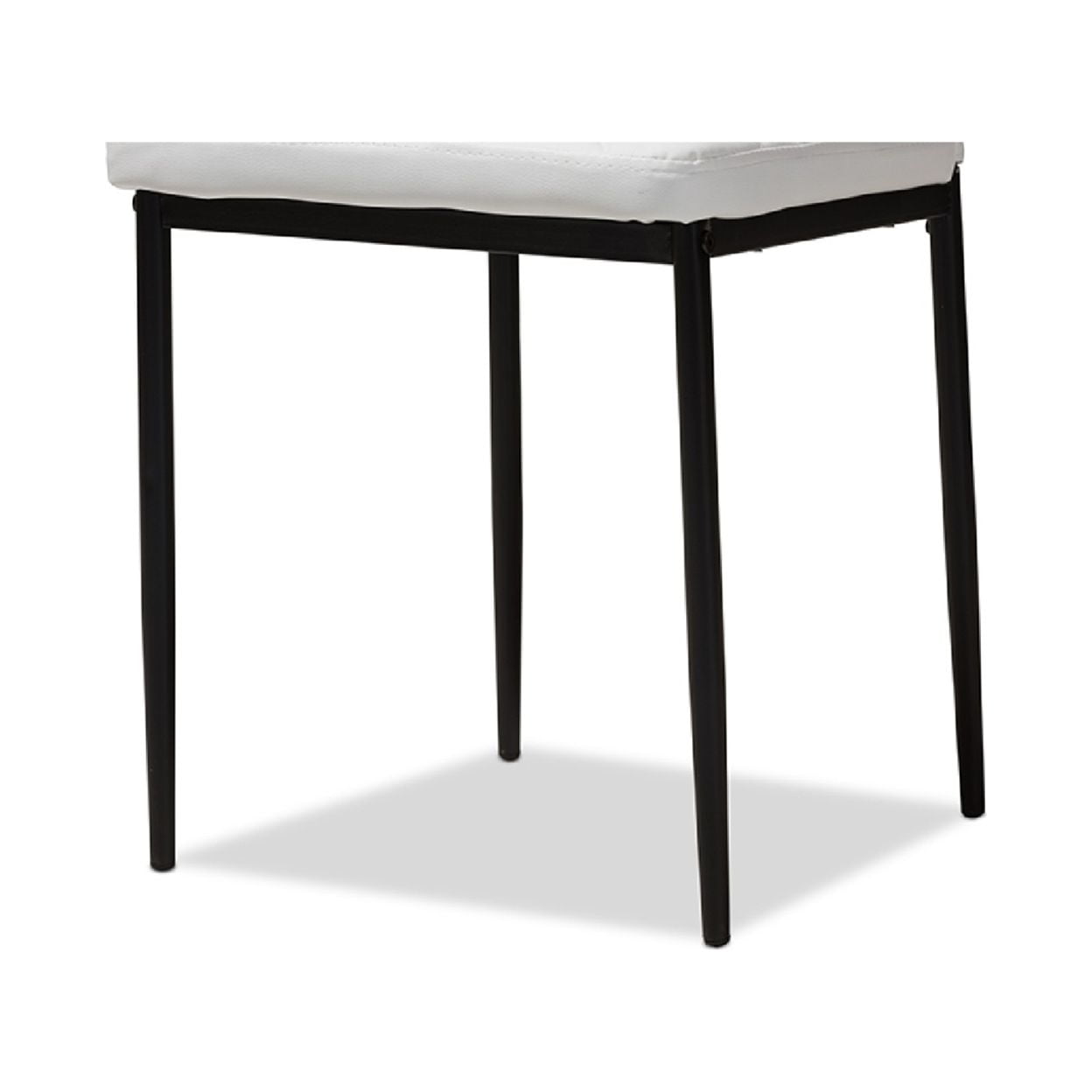 Modern and contemporary dining chair White faux leather upholstery Black finished metal legs Grid-tufted design Foam padded seat Assembly required Made in China