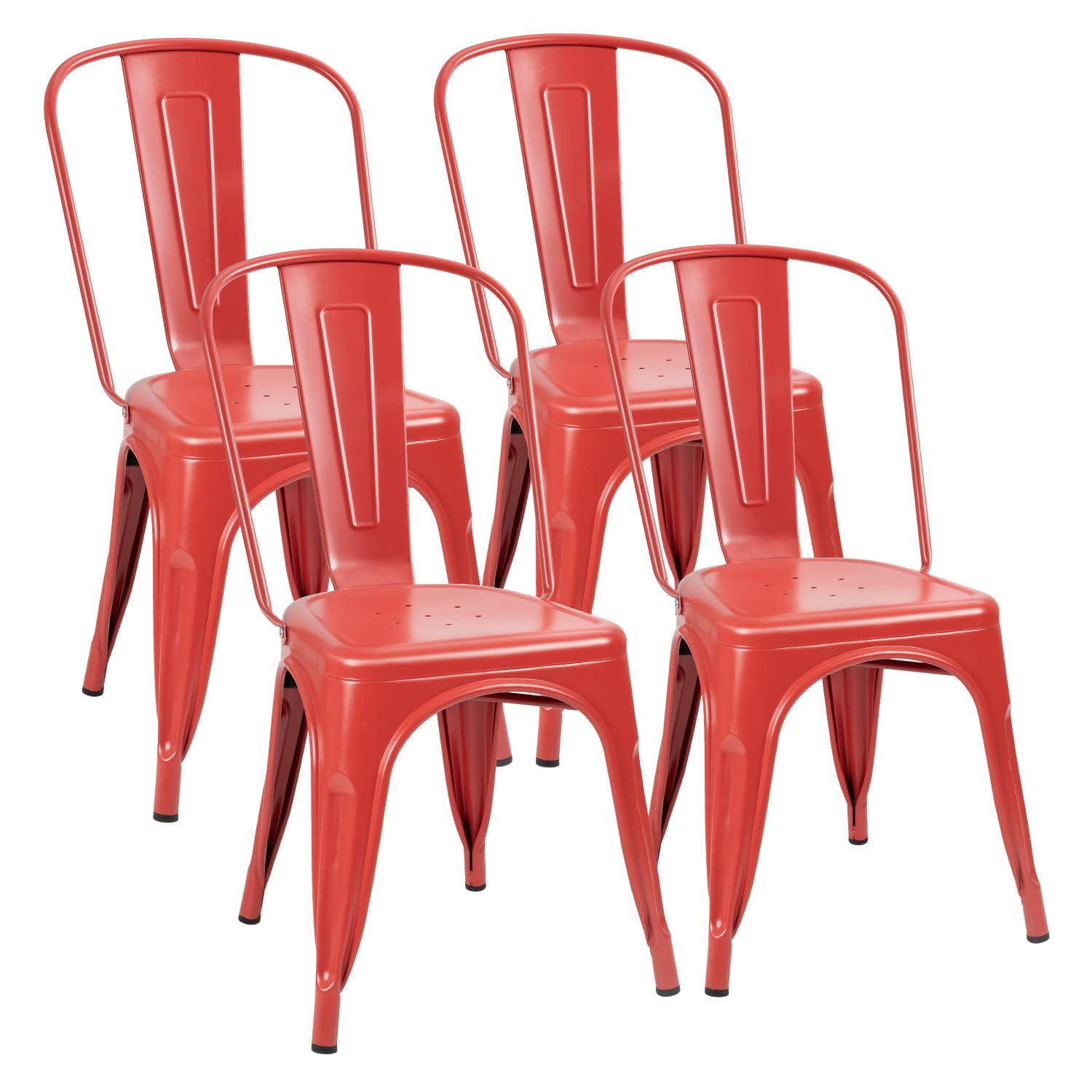 Set of 4 Lacoo Distressed Style Stackable Kitchen Dining Bistro Cafe Metal Chairs,Multi Color